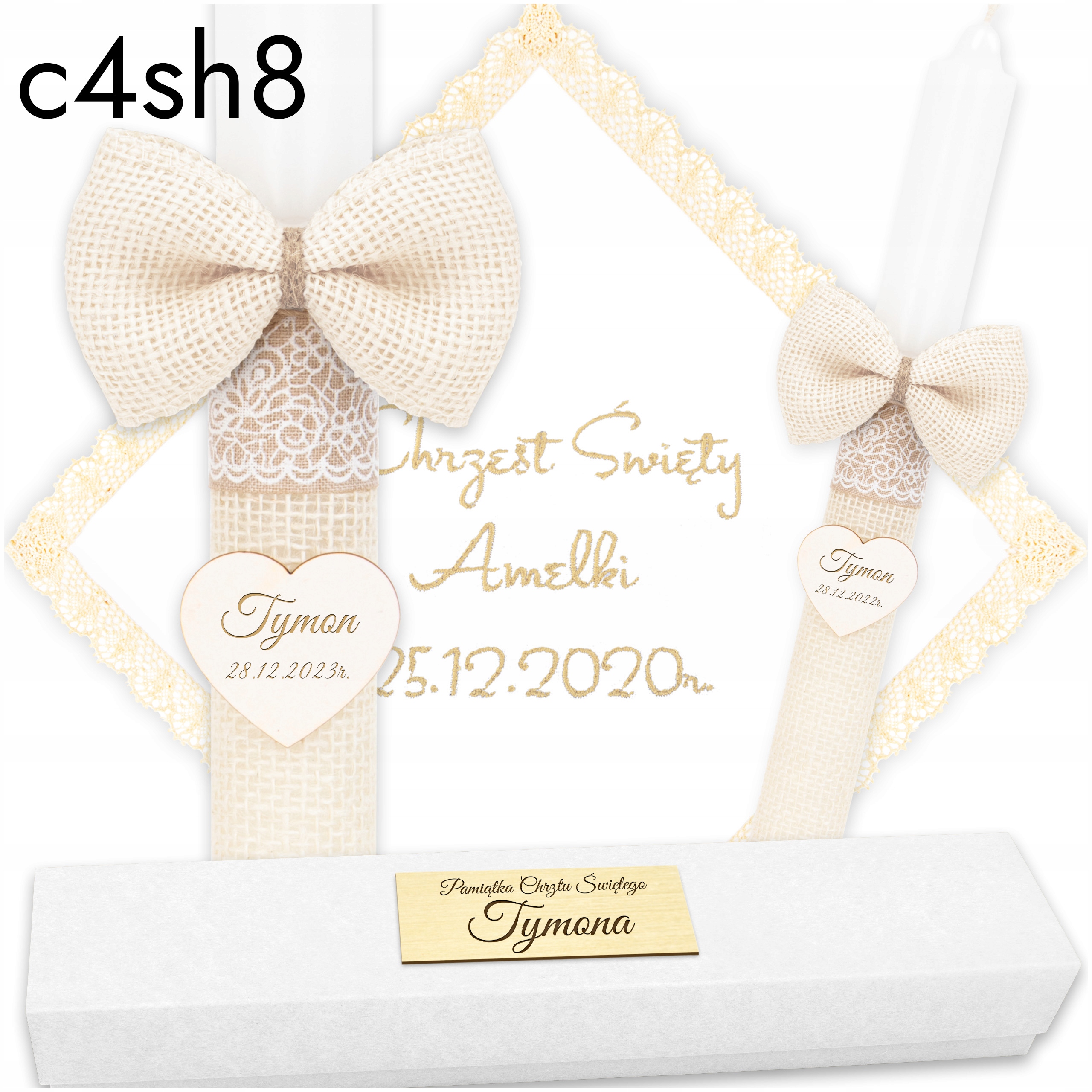 СВІЧКА НА ХРЕСТИННЯ, ВИШИВКА НА СВІЧКУ НА ХРЕСТИННЯ + СКОРОБКА В стилі БОХО