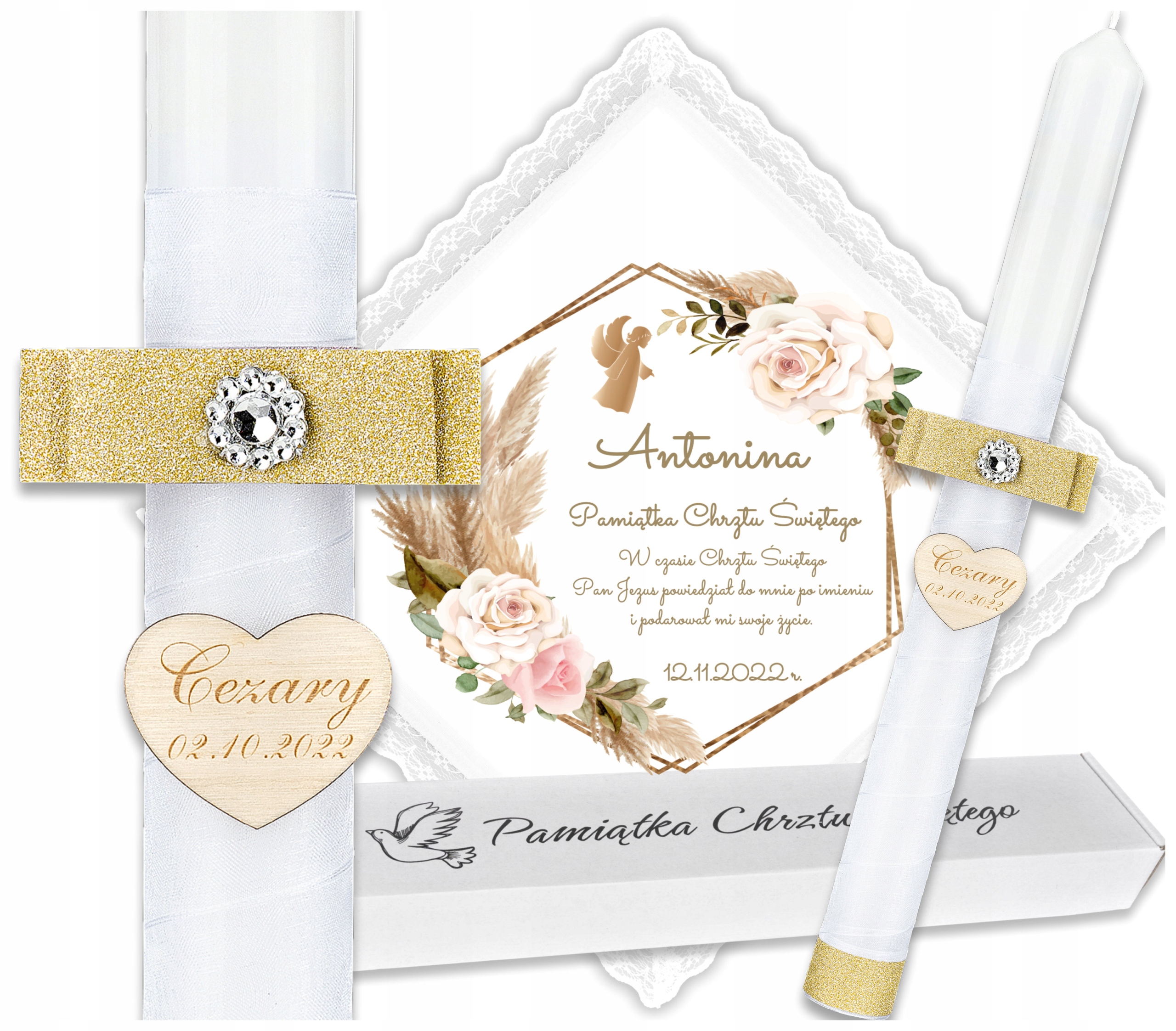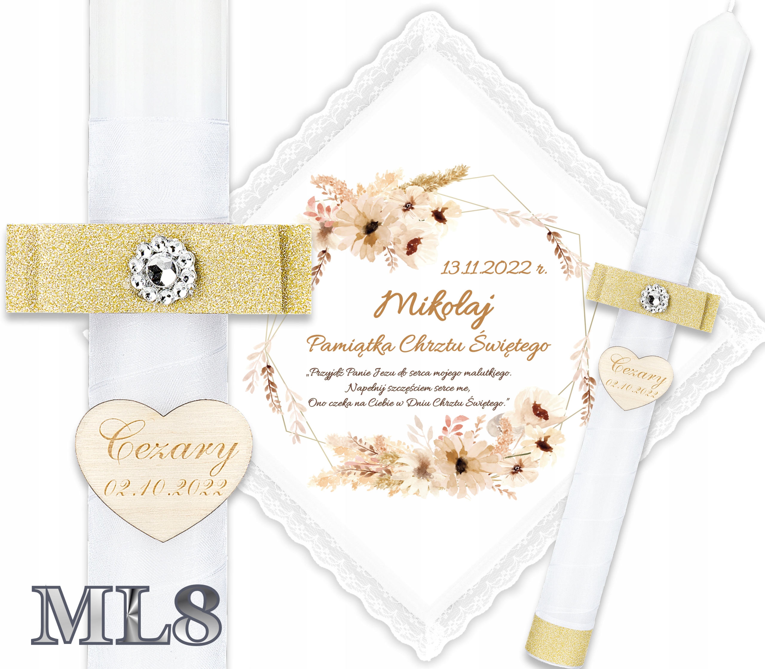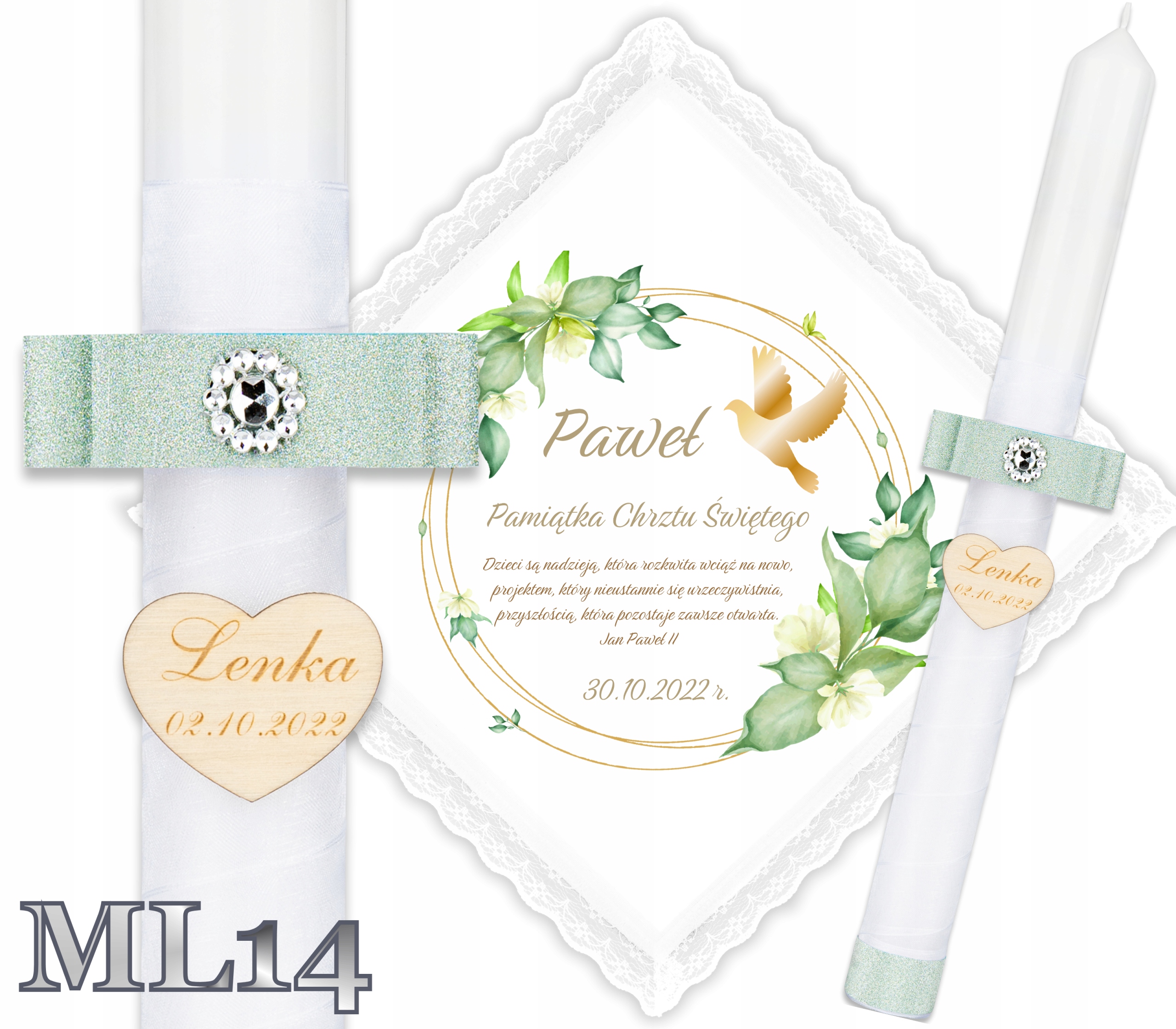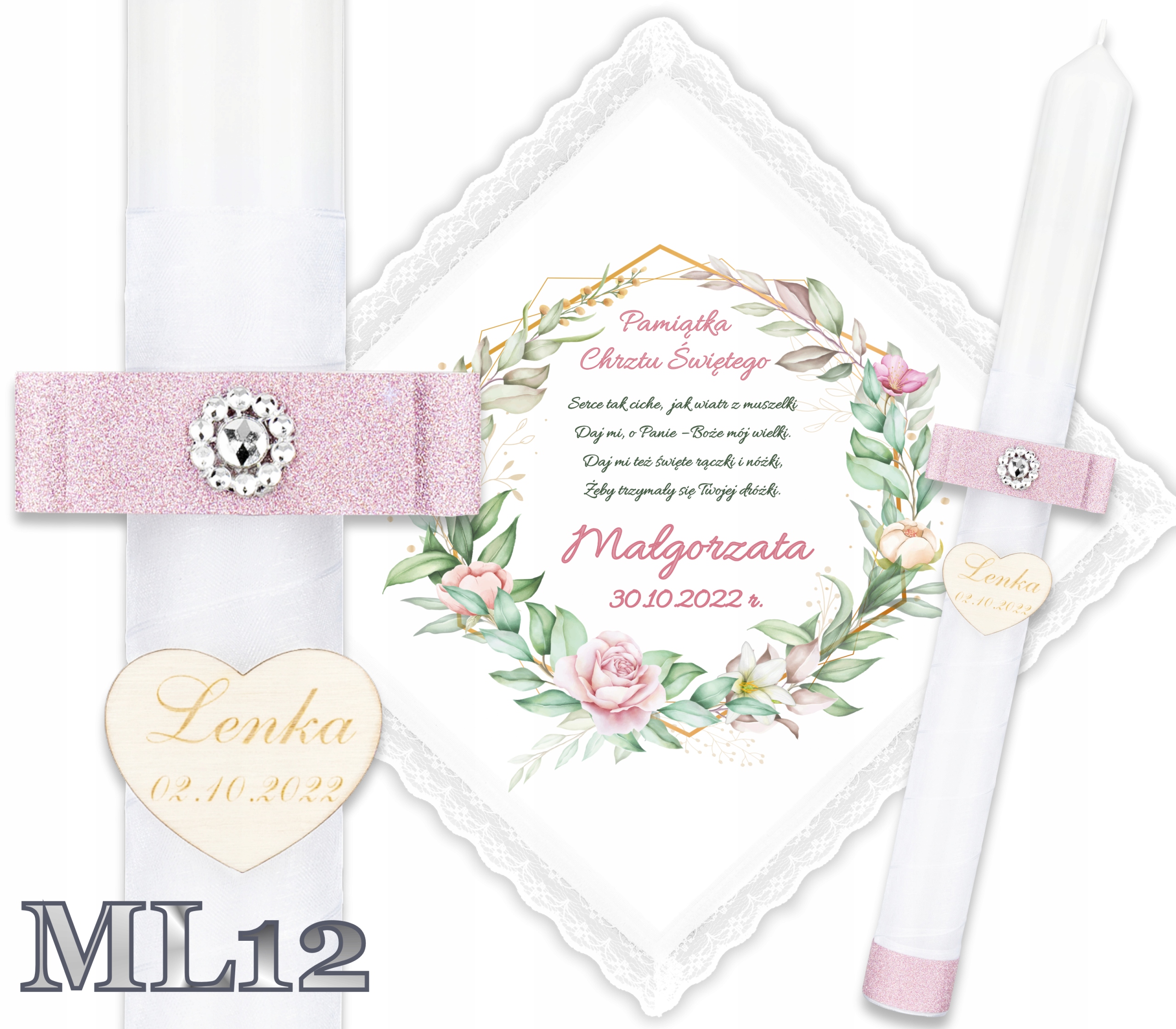 ✴️Хрестильна свічка b> прикрашений гравіюванням сердечка з іменем дитини та датою хрещення