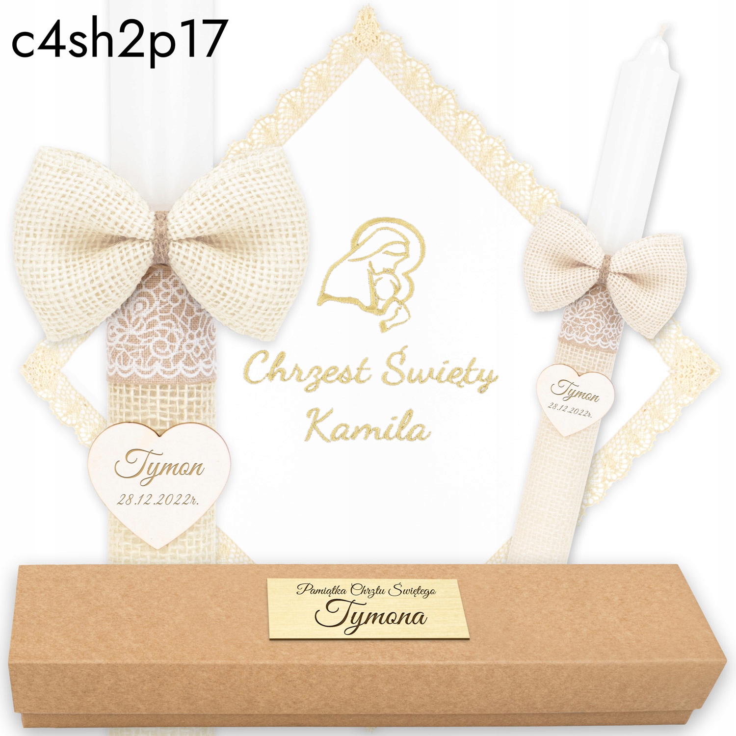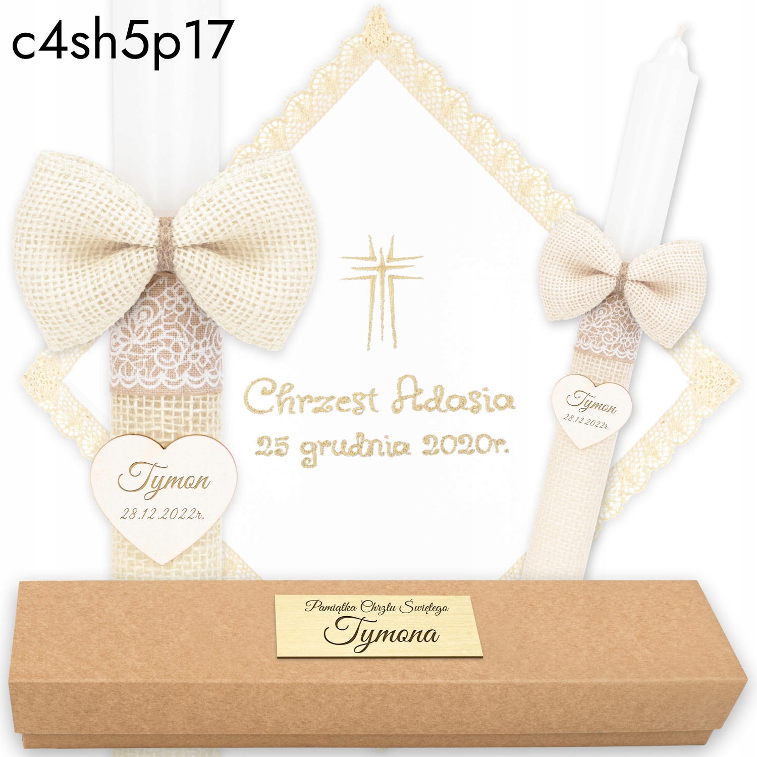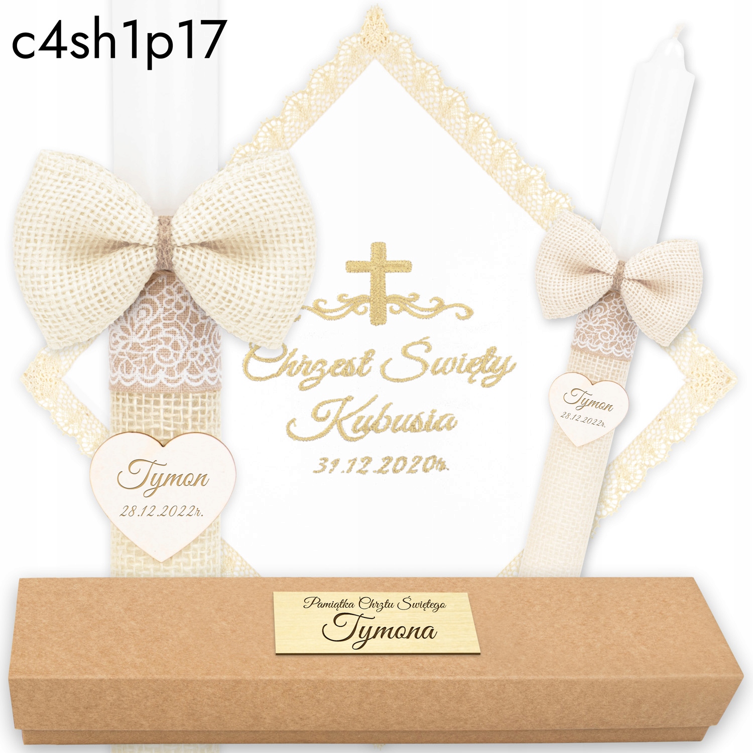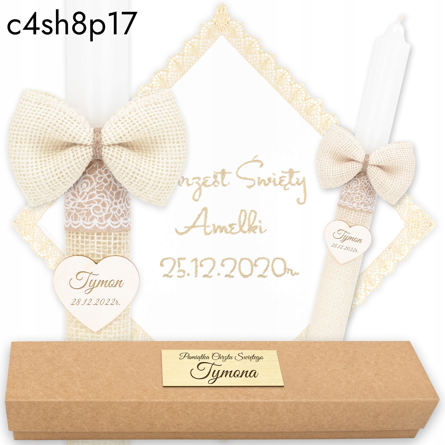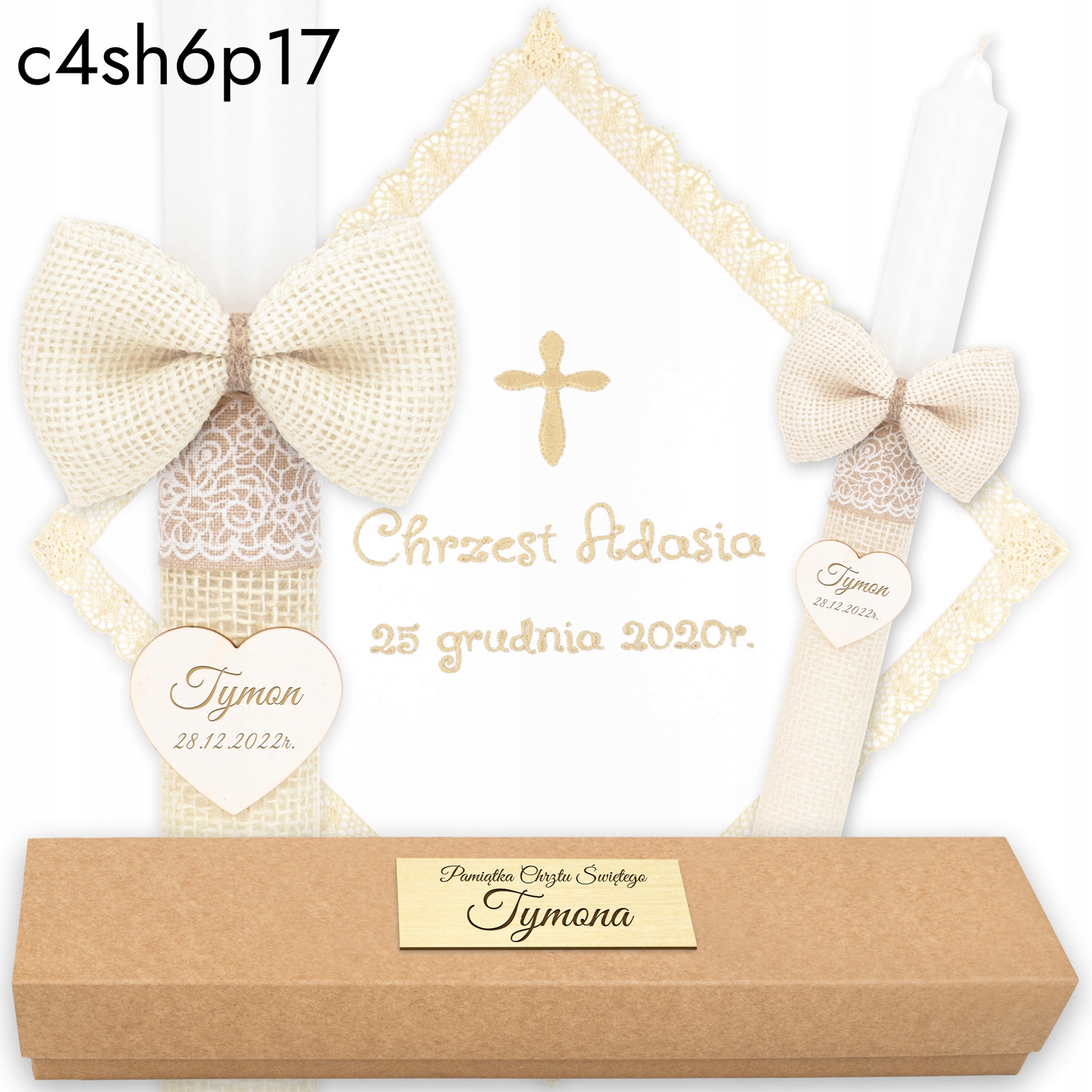 Ми пропонуємо надзвичайний сувенір хрещення. Пропозиція включає як свічку, білий, вишитий халат хрещення, так і коробку для свічок, все, що створюється з увагою до кожної деталі. Він прикрашений групами, які підкреслюють її унікальний стиль. Більше того, чарівний джутовий лук та підвіска, що формується серцем, прикріплені до свічки, на якій ми можемо вигравати для вас назву та дату хрещення, щоб зробити цей сувенір ще більш особистим. Придбання наших сувенірів хрещення: