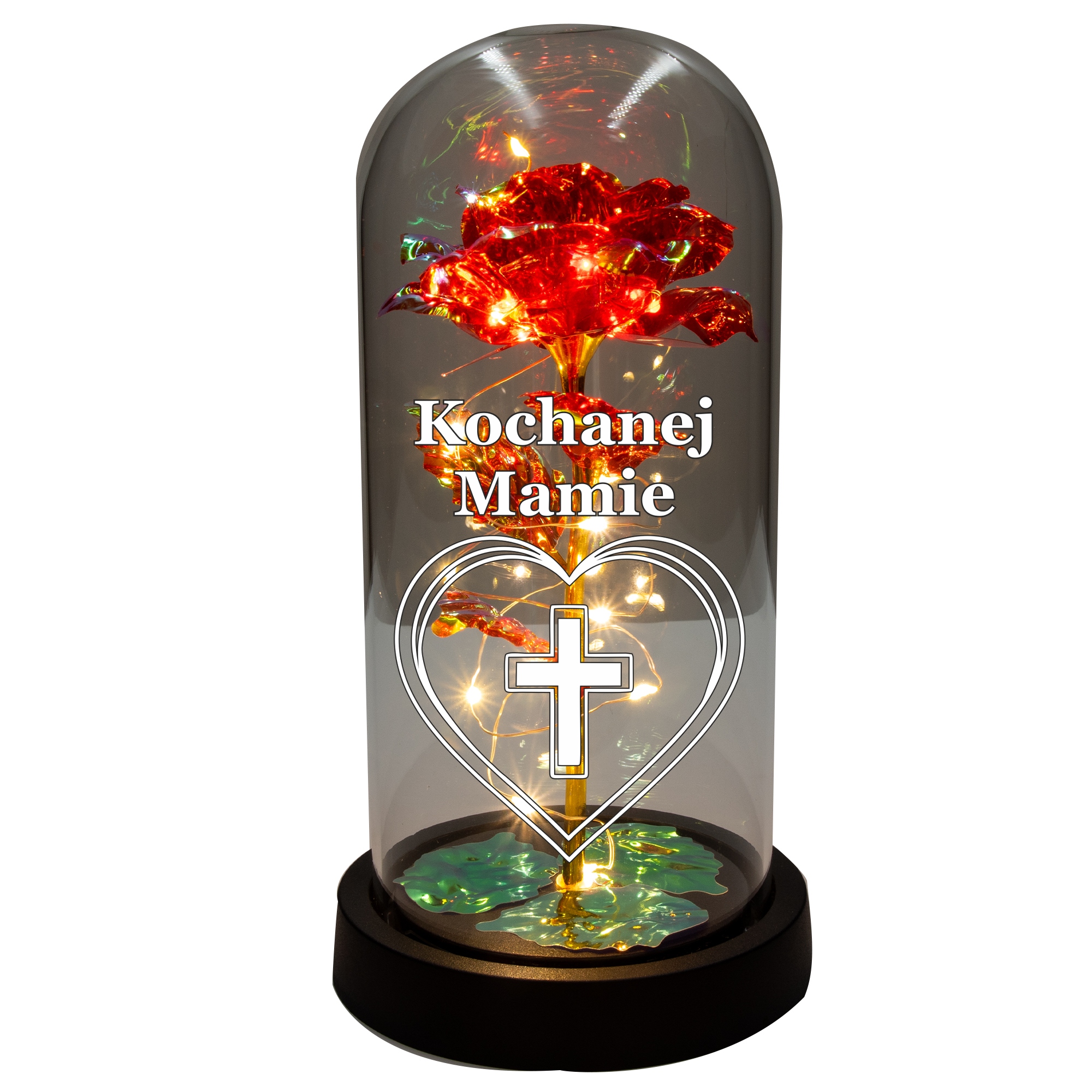 Вічна світиться свічка троянди - це елегантна і зворушлива прикраса, створена для відзначення найдорожчої людини. Унікальна голографічна троянда, оточена тонким світлодіодним світлом, стає символом вічної любові, вдячності та пам’яті для коханої матері.