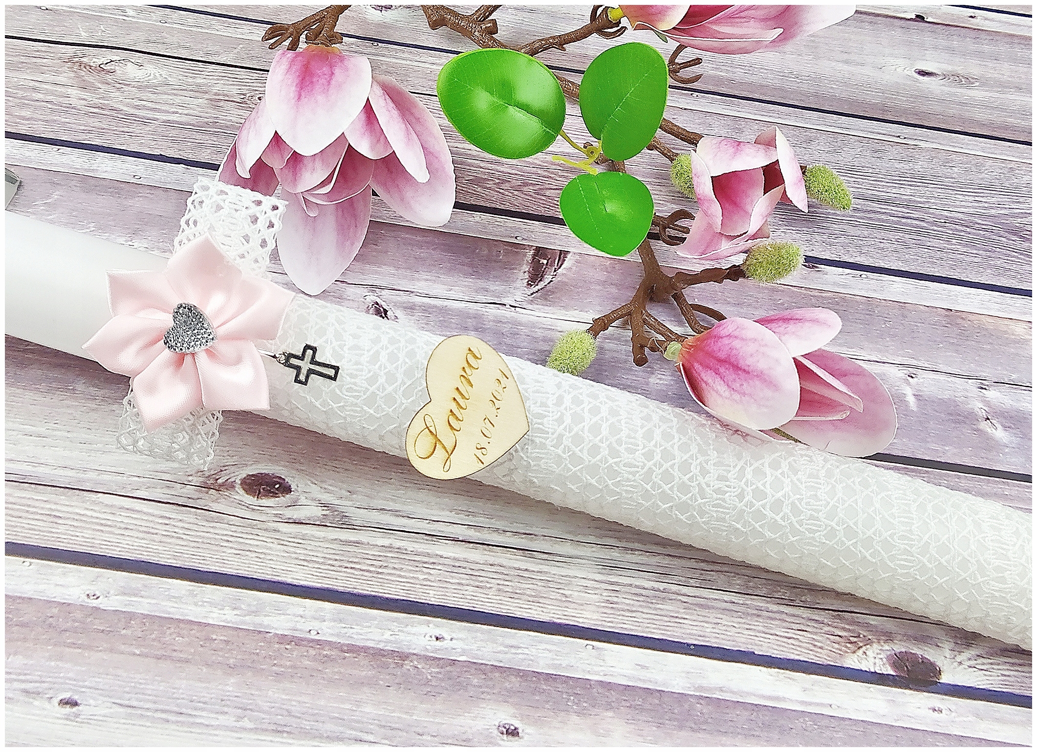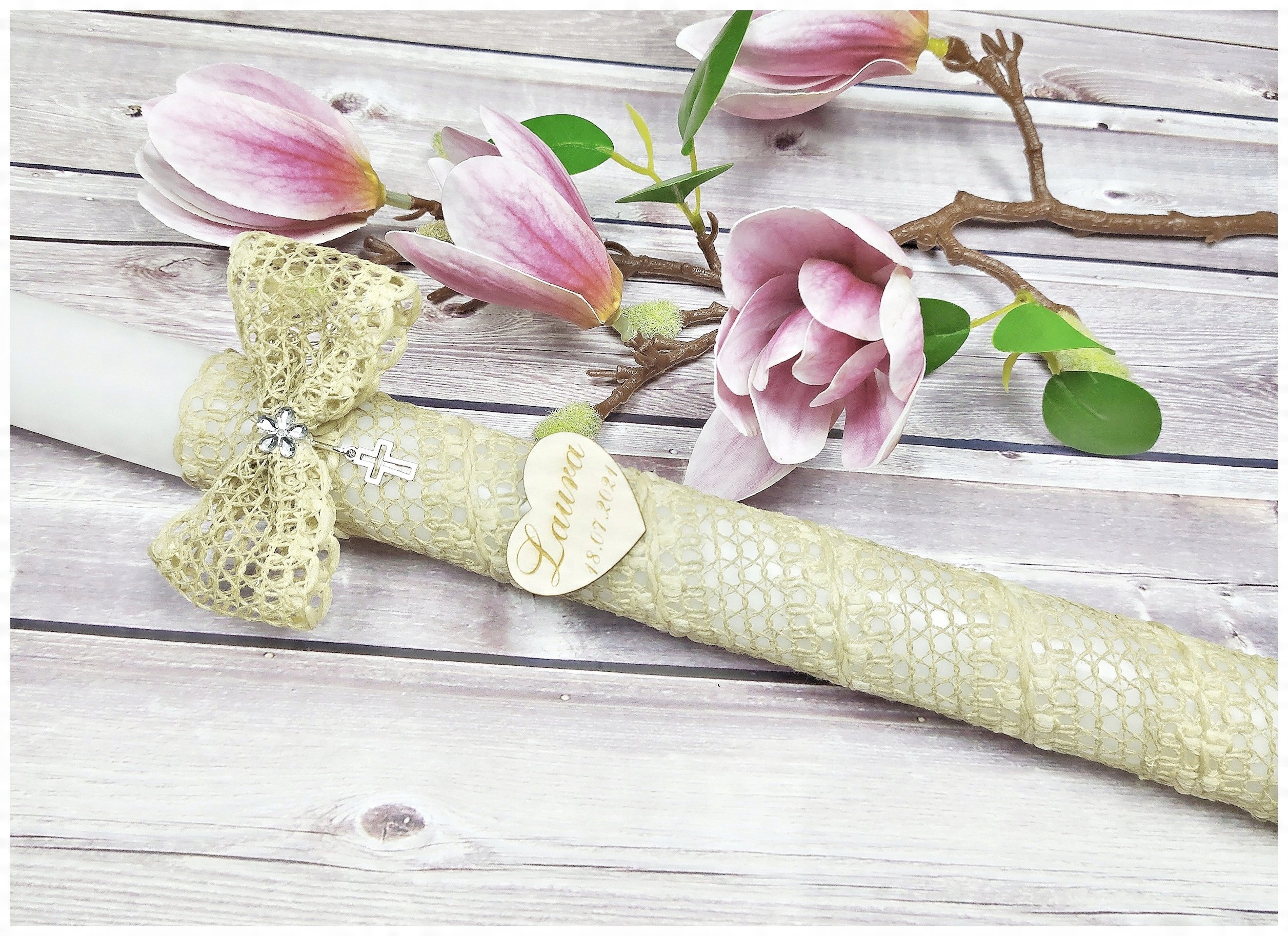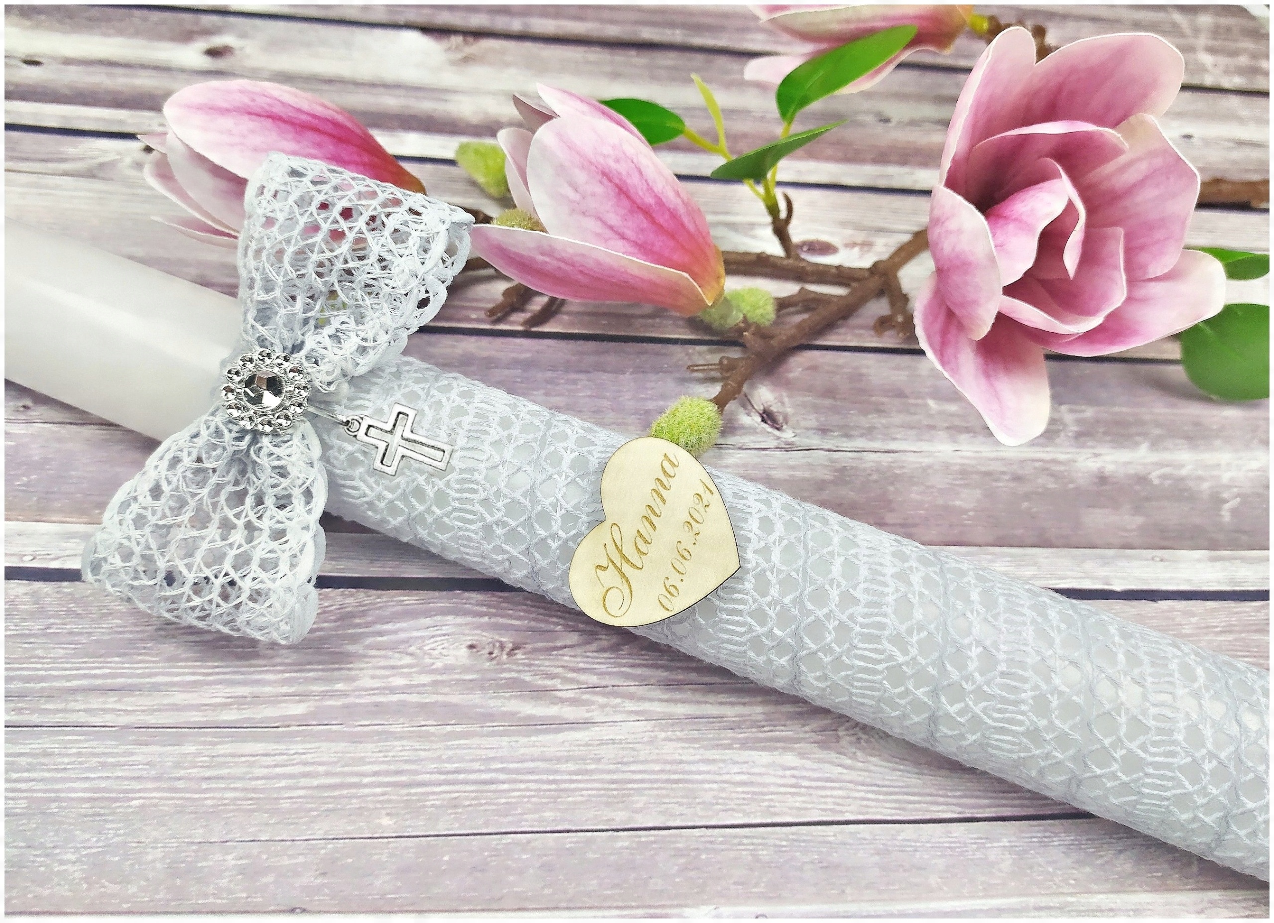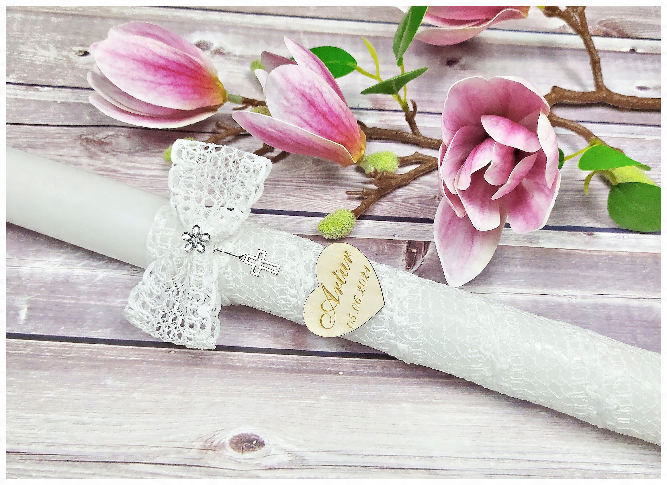 Свічка для хрещення та причастя з вигравіруваним серцем