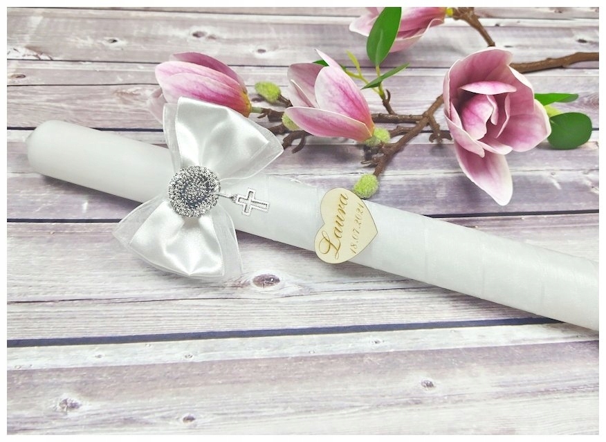 - свічка, прикрашена бантом з підвіскою та вигравіруваним серцем.