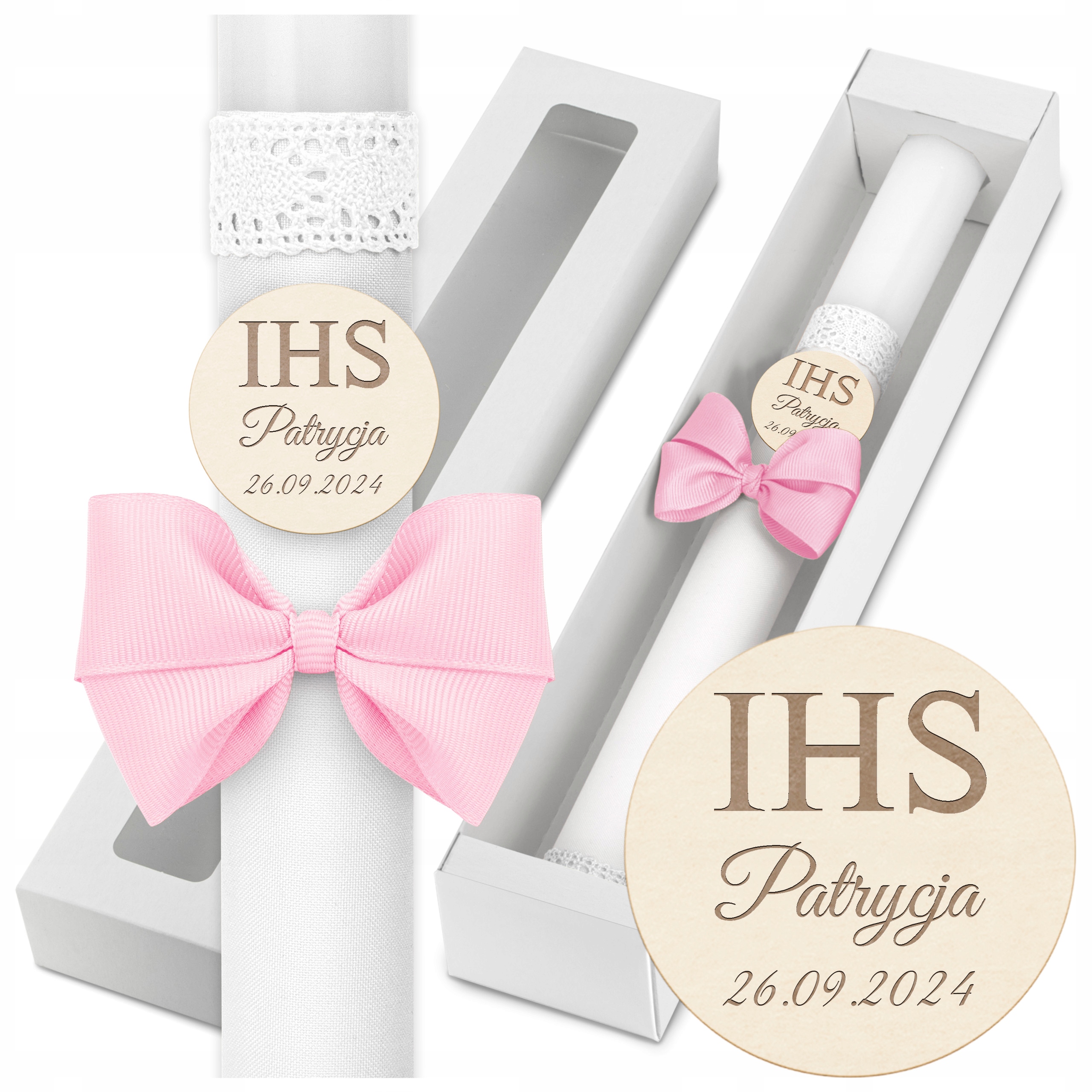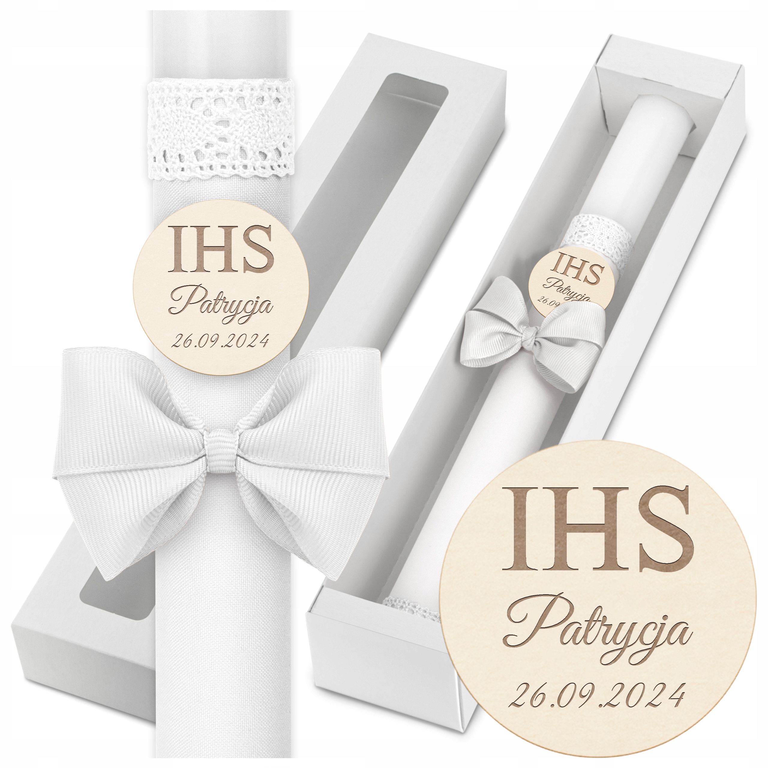 Найбільш індивідуальним елементом є серце, розташоване в центрі свічки, на якому вигравірувано ім’я та дата Першого Святого Причастя. Ця унікальна ручна обробка надає свічці унікальний характер і робить її не лише практичним предметом, але й сувеніром на довгі роки.