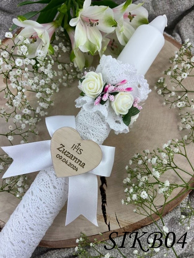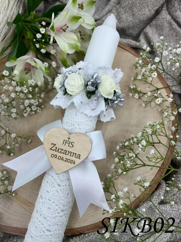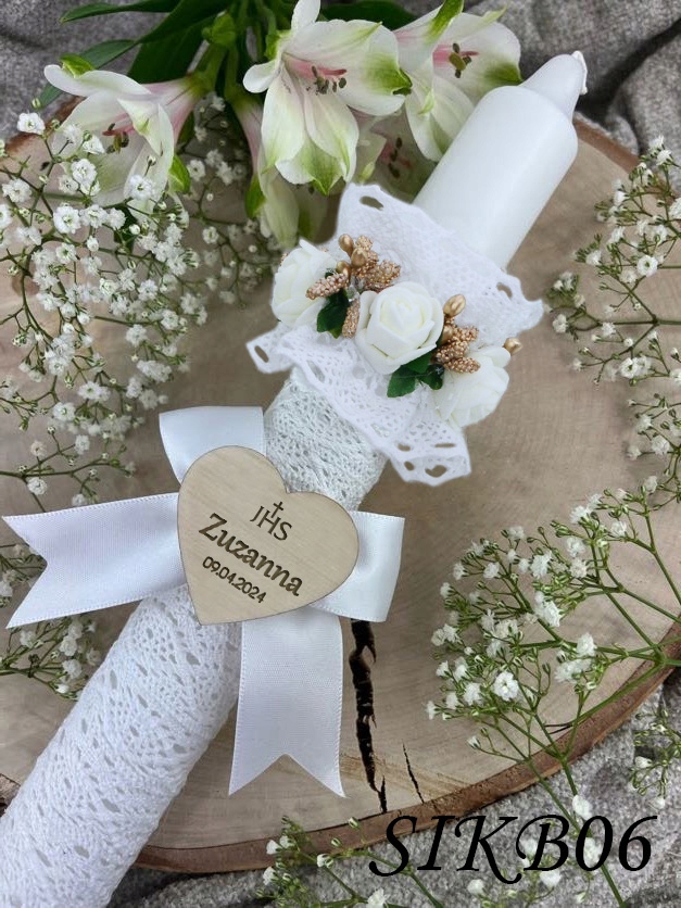 СВІЧКА ДЛЯ ПРИЧАСТЯ СІК і БІЛА ДЕРЕВ'ЯНА СКОРОЧКА ДЛЯ СВІЧКИ, ГРАВІЮВАННЯ
