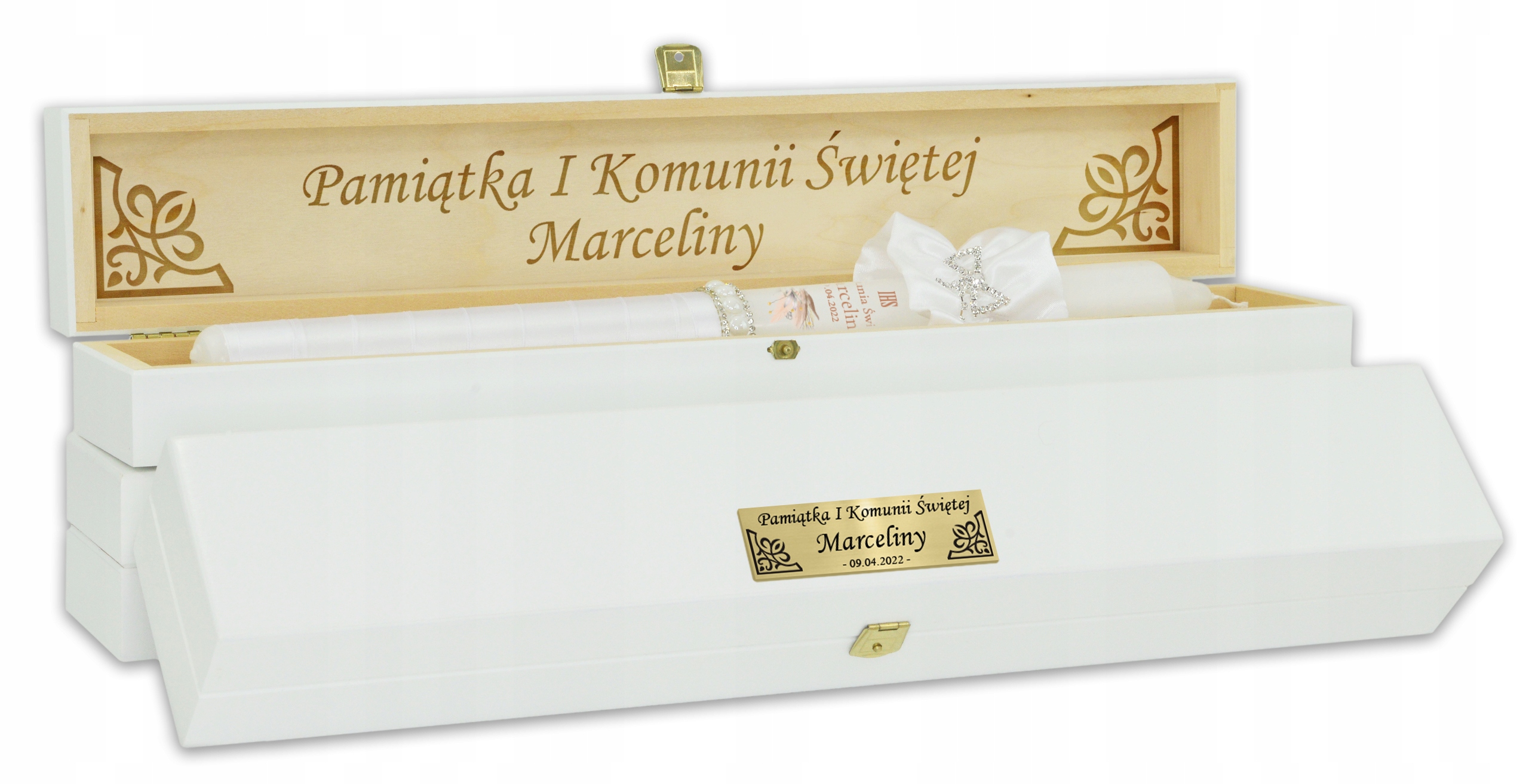 Ящик для свічок, який ми пропонуємо, є справді дерев’яним польським продуктом. Окрім суто практичної функції, це також ідеальний сувенір про Перше Святе Причастя від когось справді особливого.