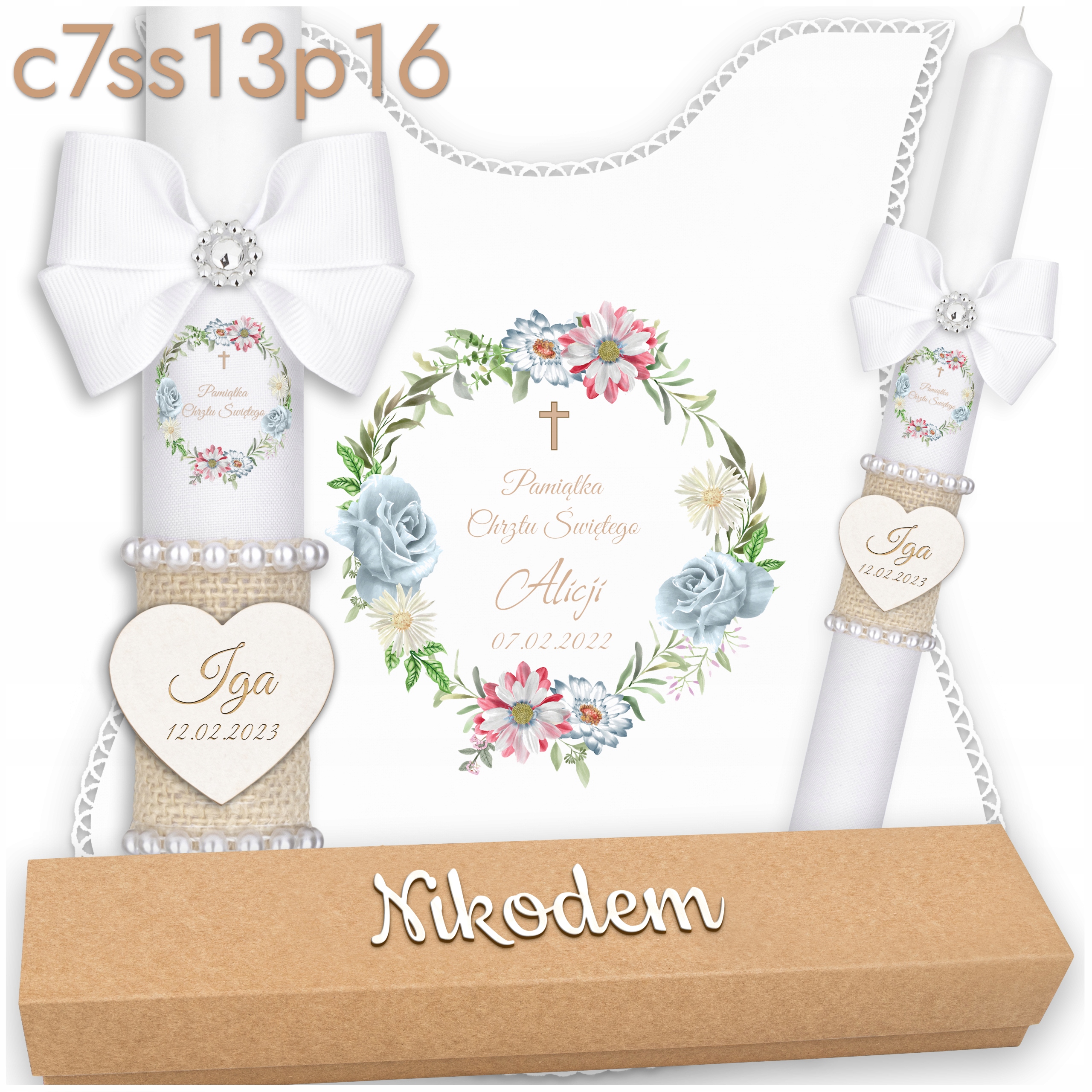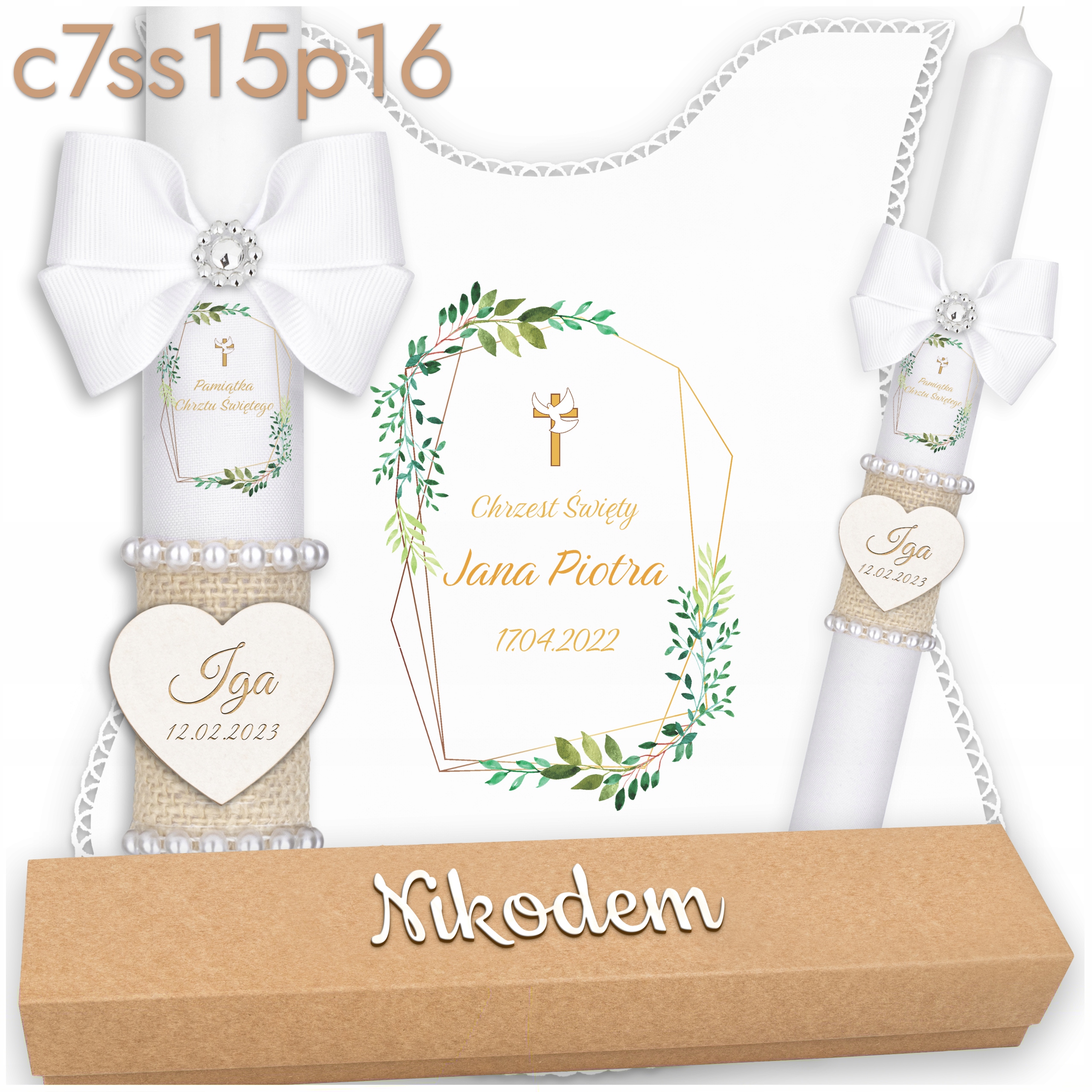 Свічка хрещення + білий халат + поле імен