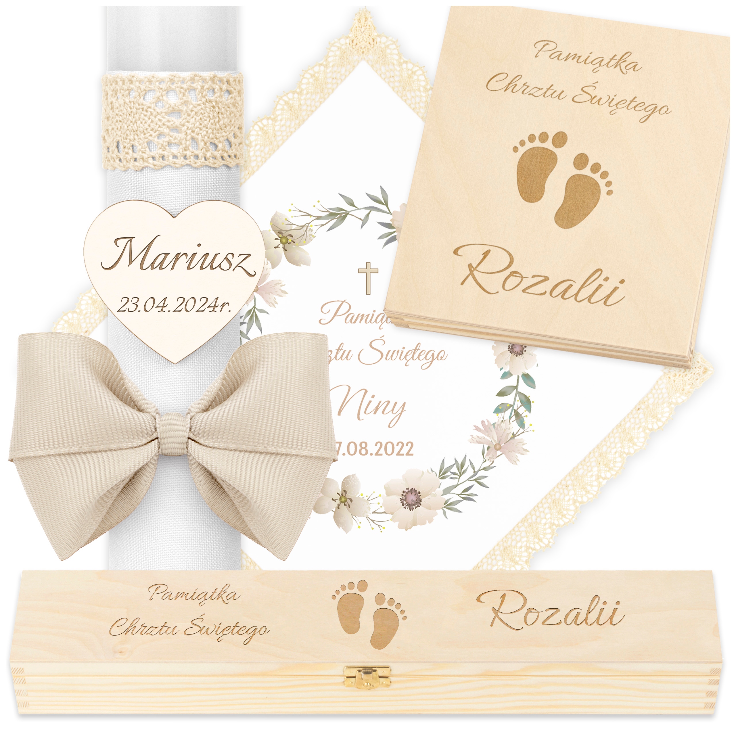 Я запрошую вас відкрити унікальні сувеніри хрещення у вигляді прекрасних свічок ручної роботи, шати та коробки.