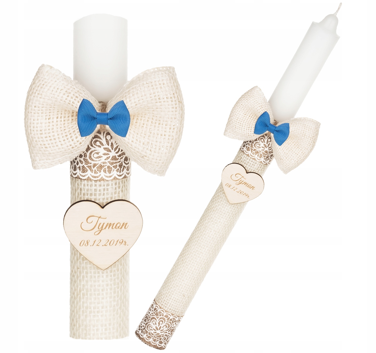Запропонована свічка хрещення - це не лише красива візуальна, але й повна сенсу. Він загорнутий у делікатний джутовий матеріал, який надає йому сільський характер Бохо. Він прикрашений прикрашеними гуртами, які підкреслюють її унікальний стиль. Більше того, чарівний джутовий лук та підвіска, укладеної серцем, прикріплені до свічки, на якій ми залучаємо назву та дату хрещення, щоб зробити цей сувенір ще більш особистим.