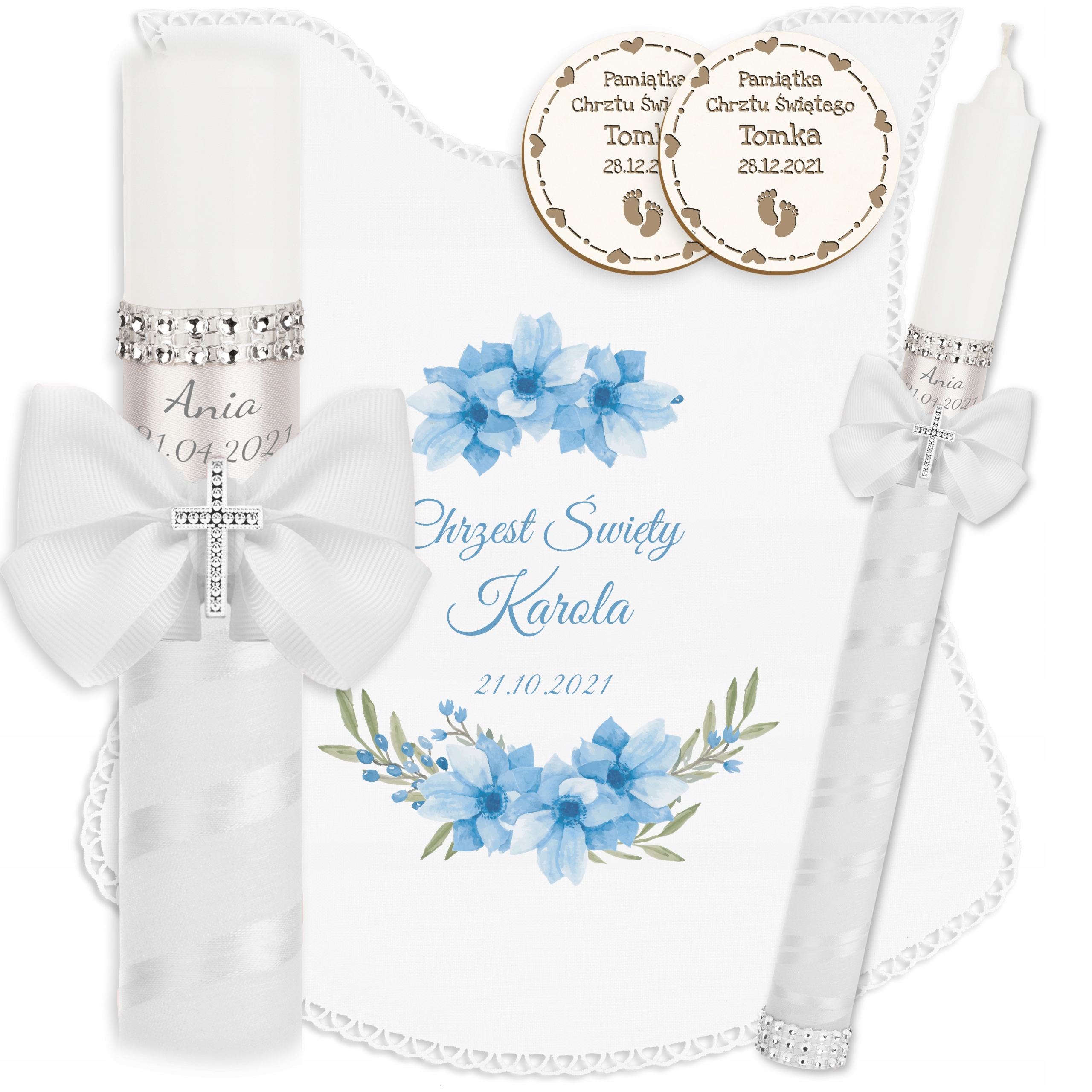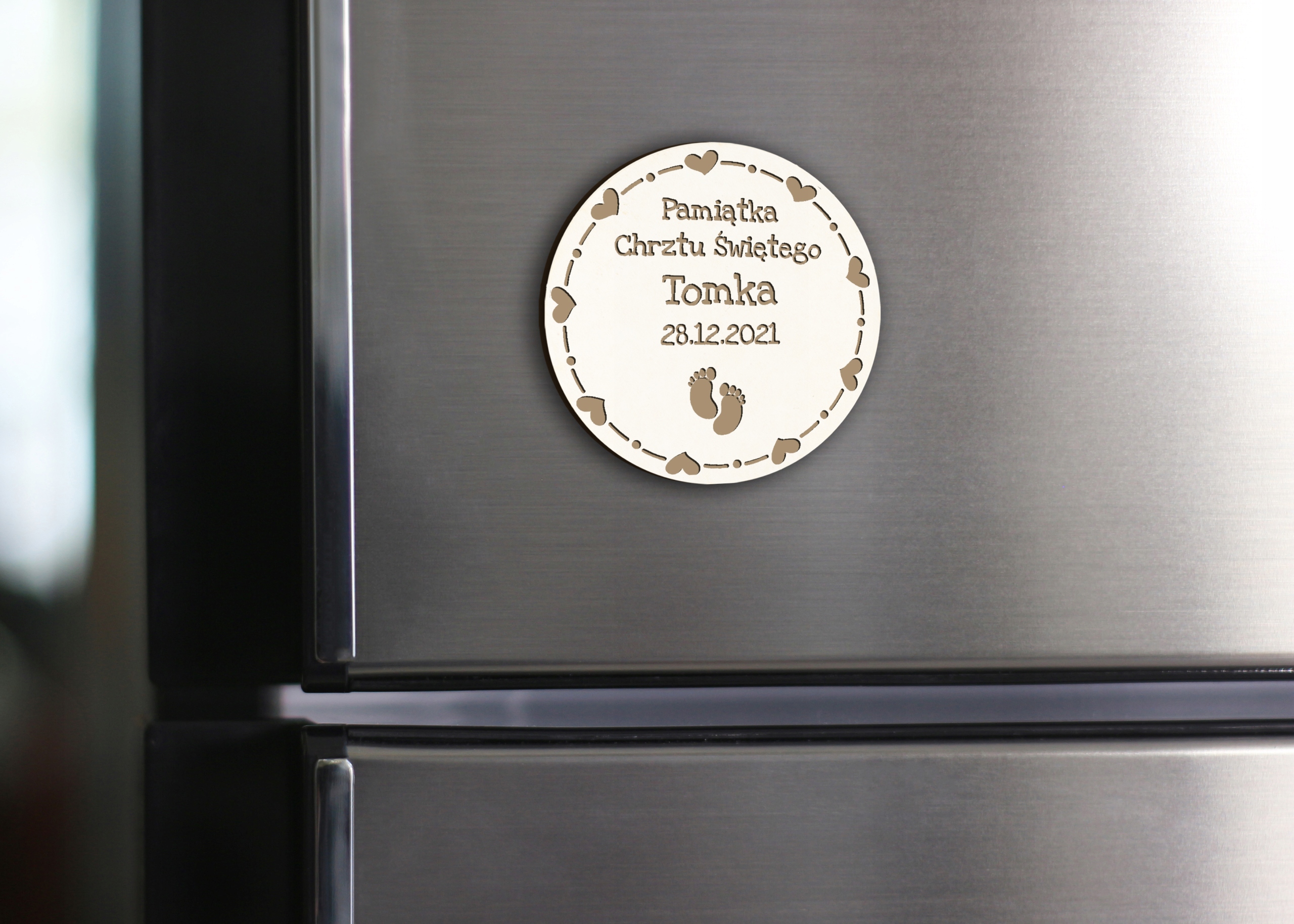 - 2 магнії з написом: "Сувенір браптизму + назви та датування.