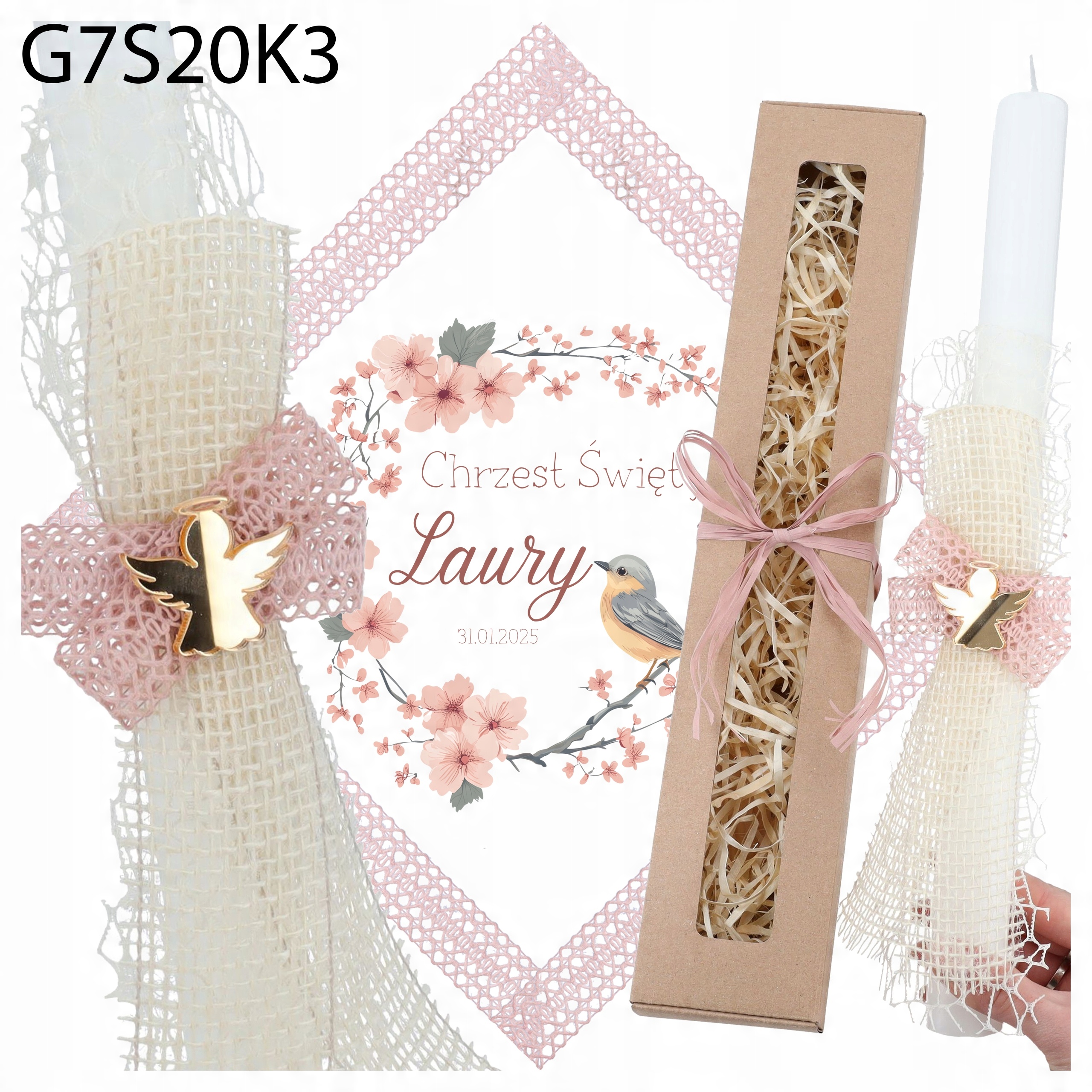 - це унікальний набір, який підкреслює урочистий характер хрещення і стане сувенірами протягом багатьох років. Свічка з тонким мереживом та золотою капустою в поєднанні з персоналізованим халатом робить весь вигляд надзвичайно елегантним і символічно.