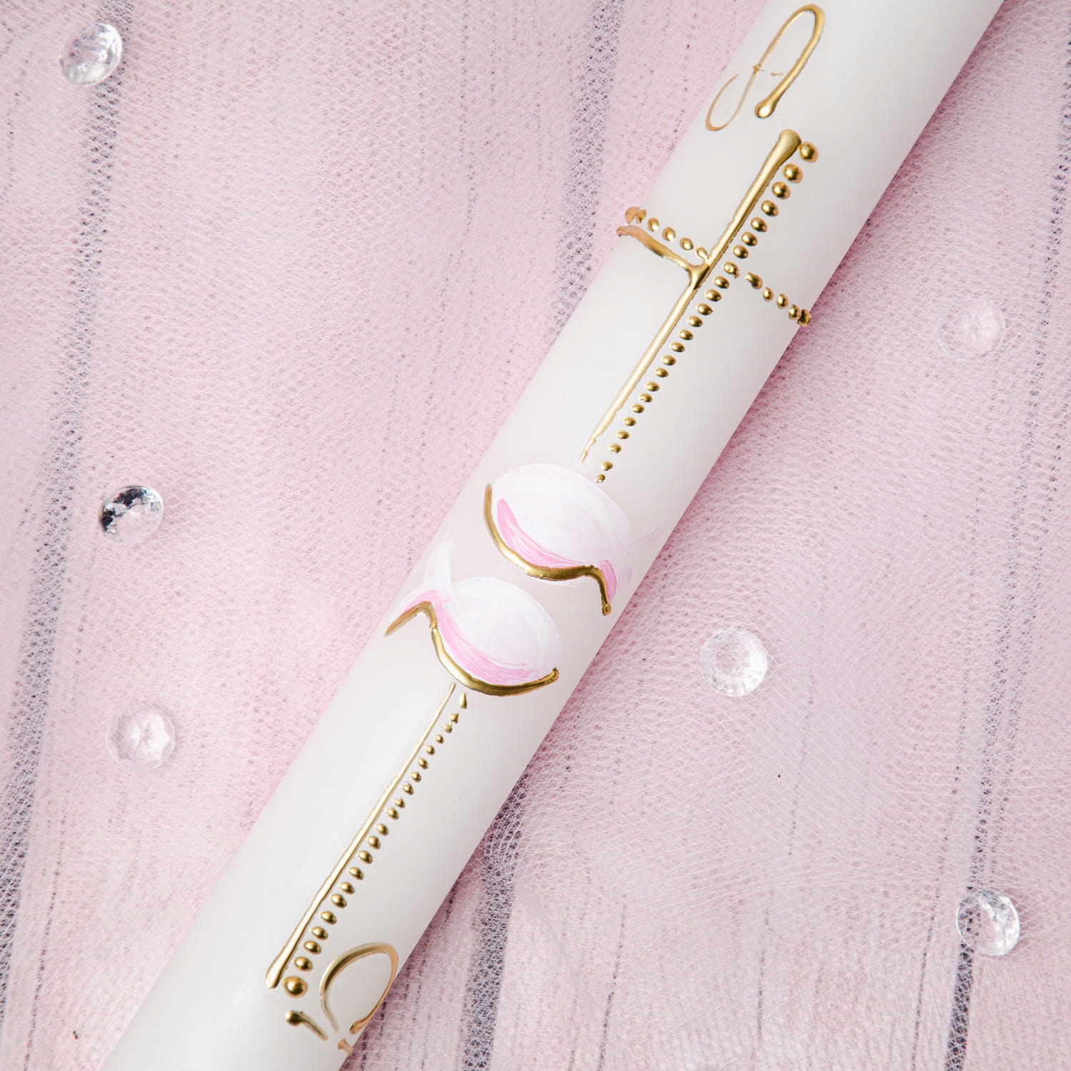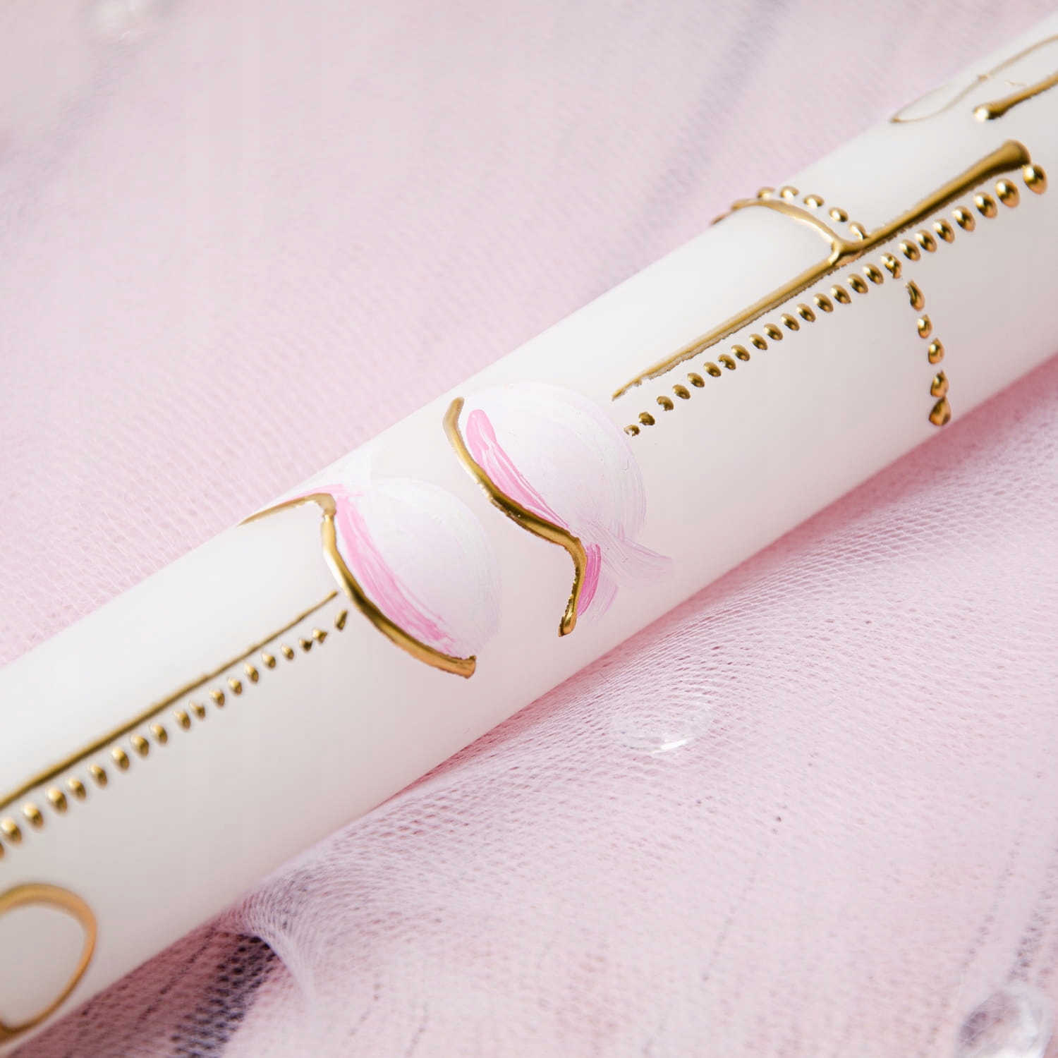СВІЧКА ХРЕСТИННА ручна декорація рожева