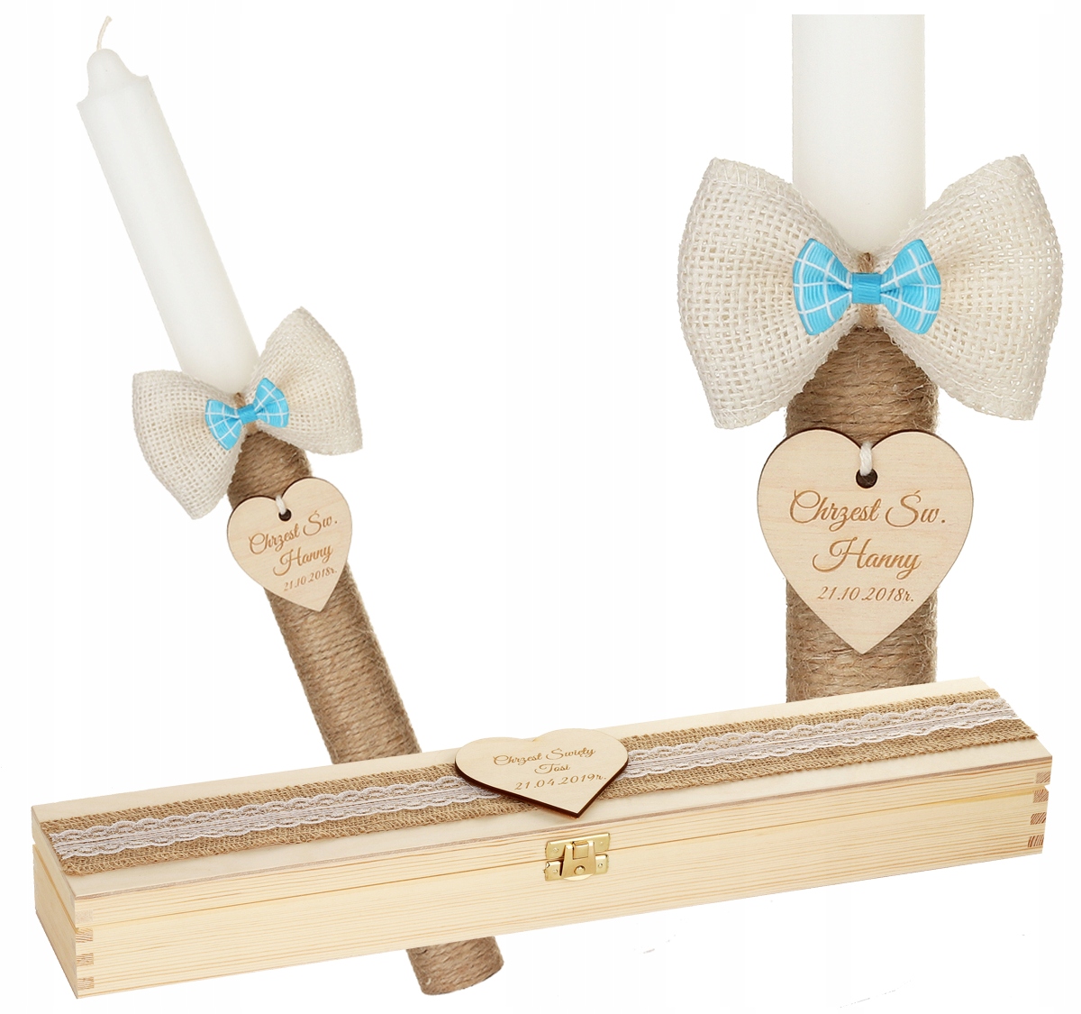 - лазерне гравірування - на свічку кріпиться дерев'яна підвіска (безкоштовно), на якій ми гравіруємо ім'я дитини та дату святкування. Ми також використовуємо лазер для точної обробки країв шматка. Для гравірування ми використовуємо новітнє обладнання від світового лідера.
