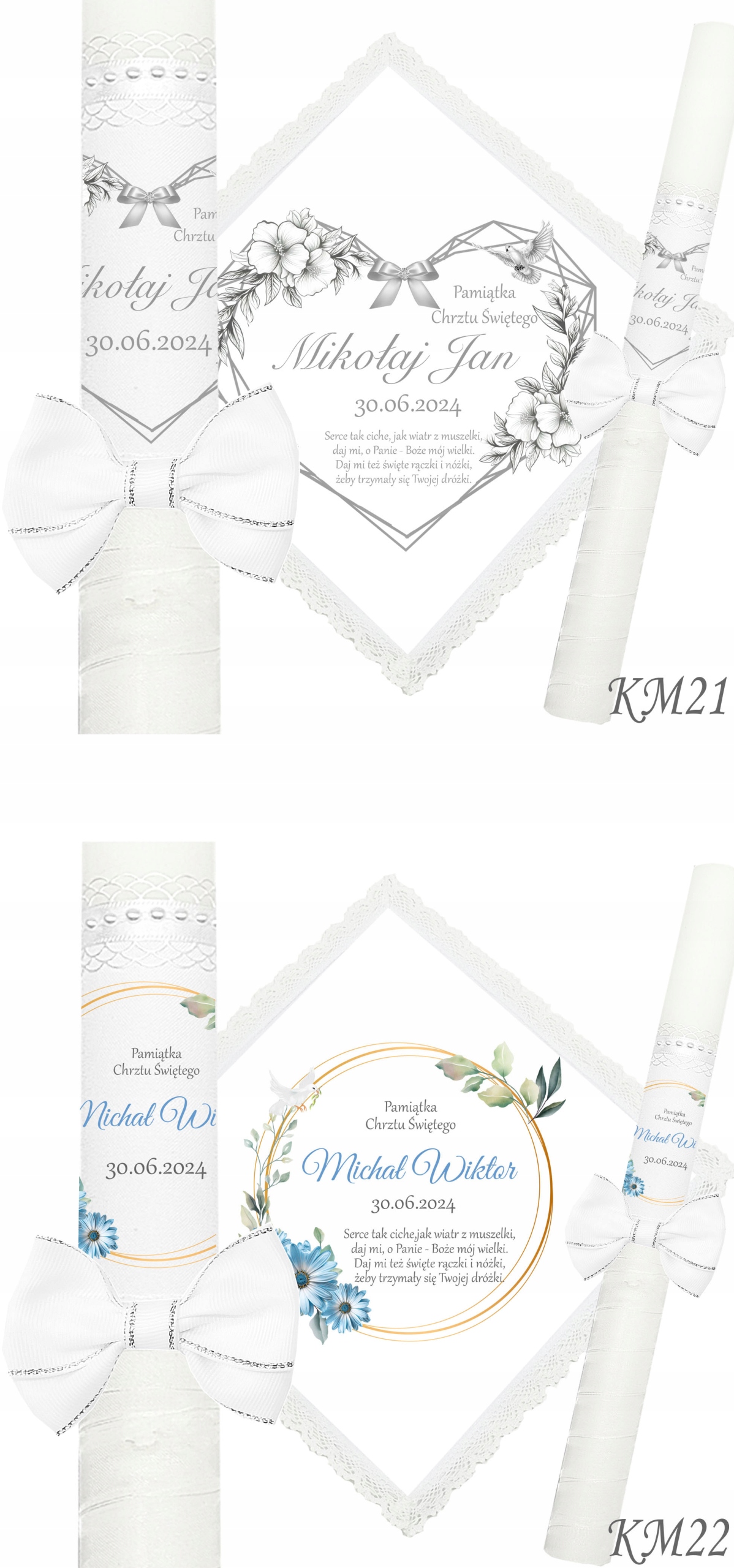Представляємо надзвичайний набір для хрещення, що складається з ризи та свічки, ідеальний вибір для батьків які хочуть відсвяткувати цей особливий день елегантно та незабутньо. Свічка прикрашена білою шифоновою стрічкою, що додає їй неповторний характер і шарм. Верх свічки прикрашений атласним мереживом і білими перлами, що надає їй елегантності та шику. Все було запаковано в декоративну коробку, яка дозволяє зберігати ці незвичайні сувеніри.