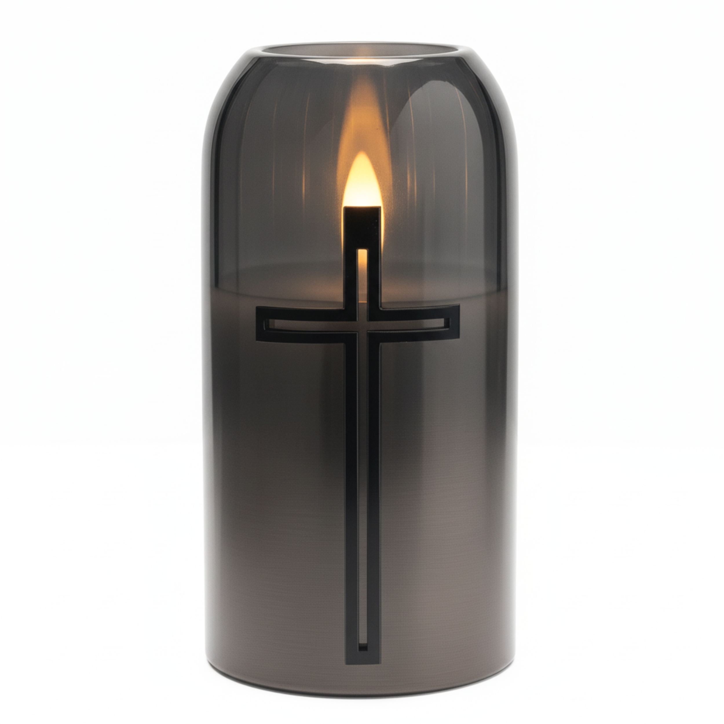 🕯️ Світлодіодна свічка з чорним хрестом - реалістичний ефект полум'я та елегантне сріблясте сяйво 🕯️