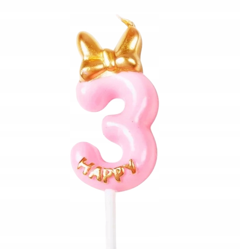 СВІЧКА НА ДЕНЬ НАРОДЖЕННЯ рожева БАНТИКА Щаслива цифра 3