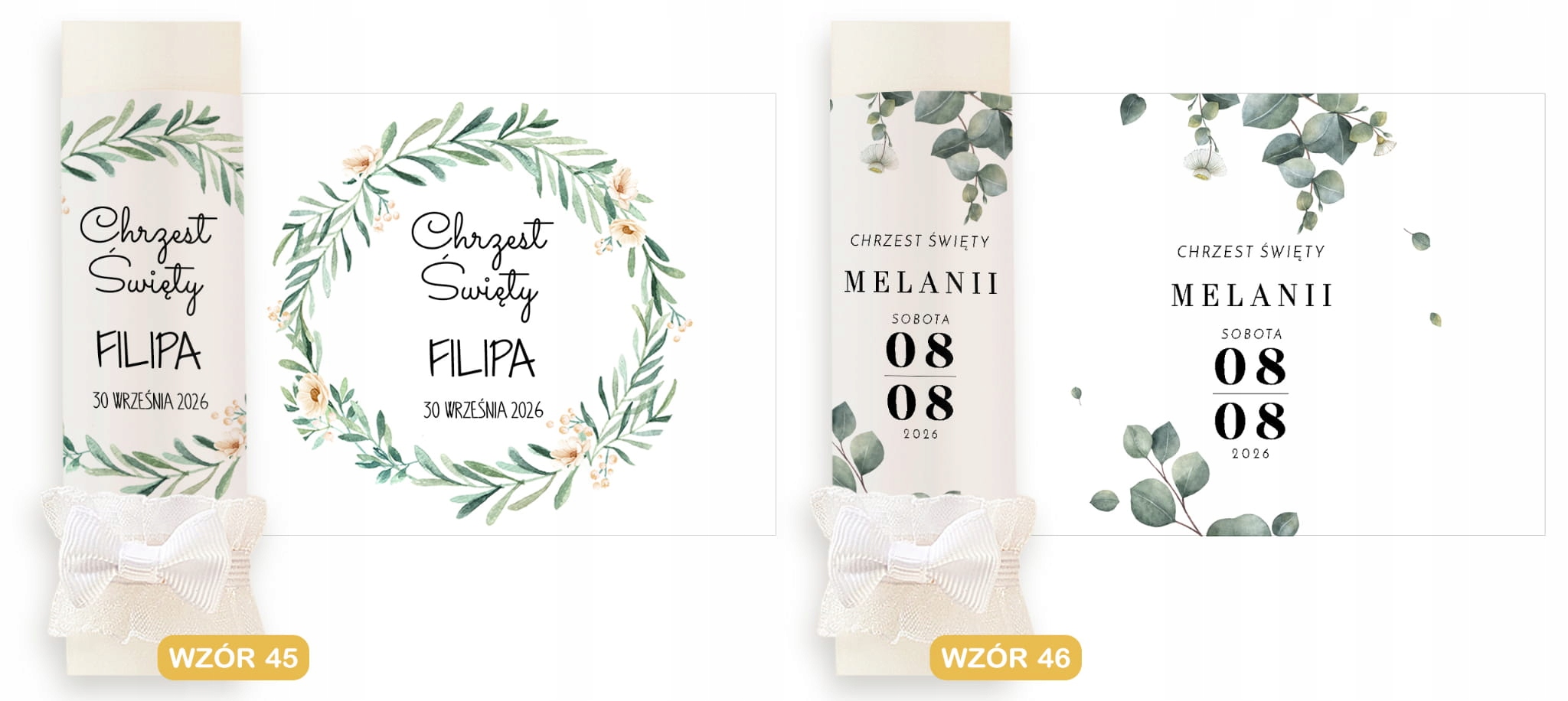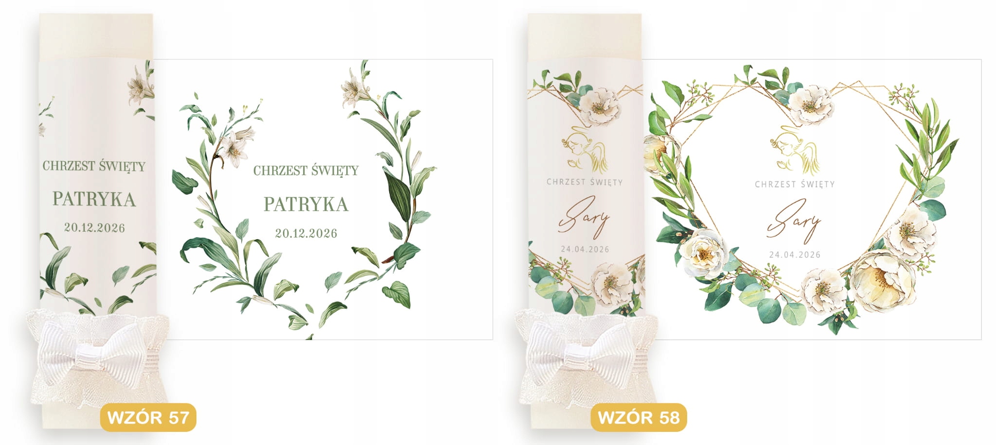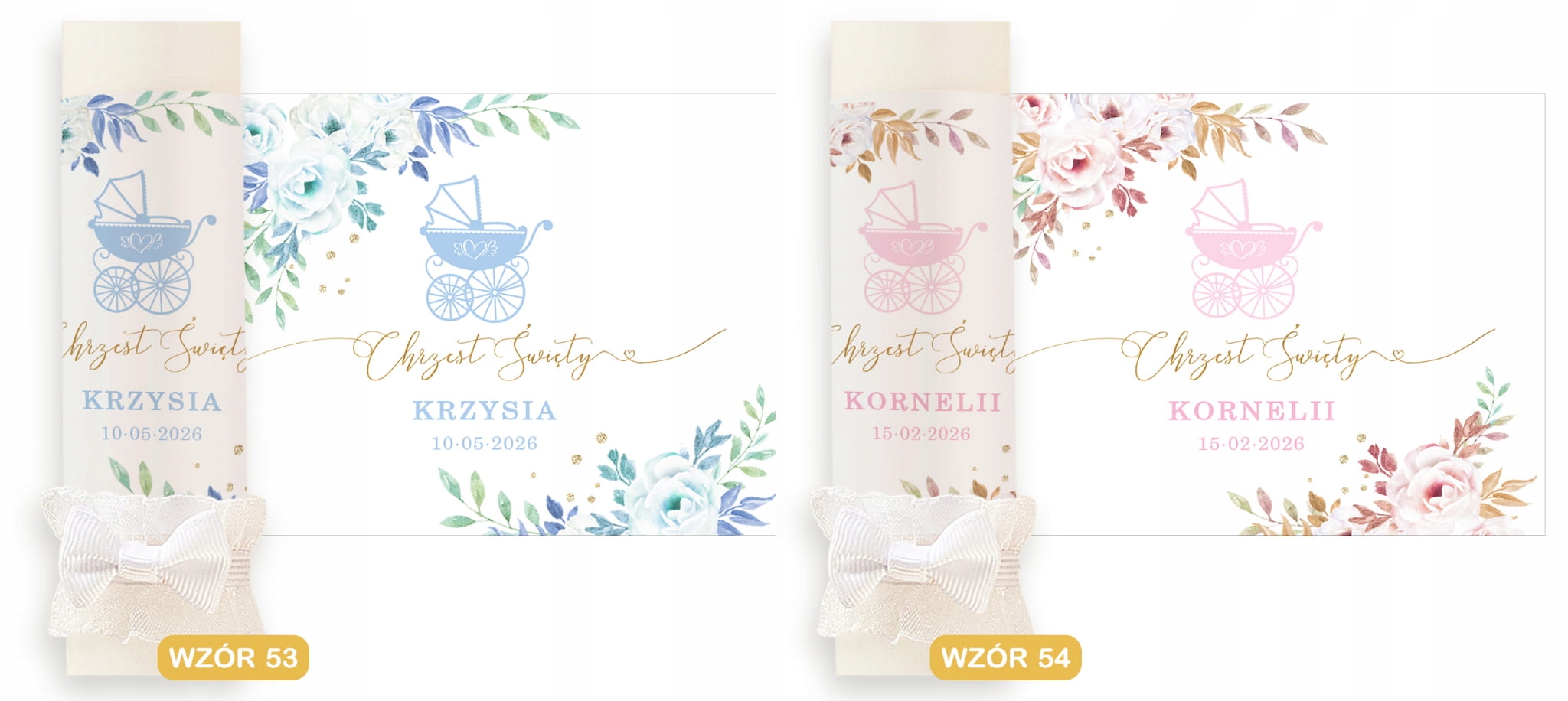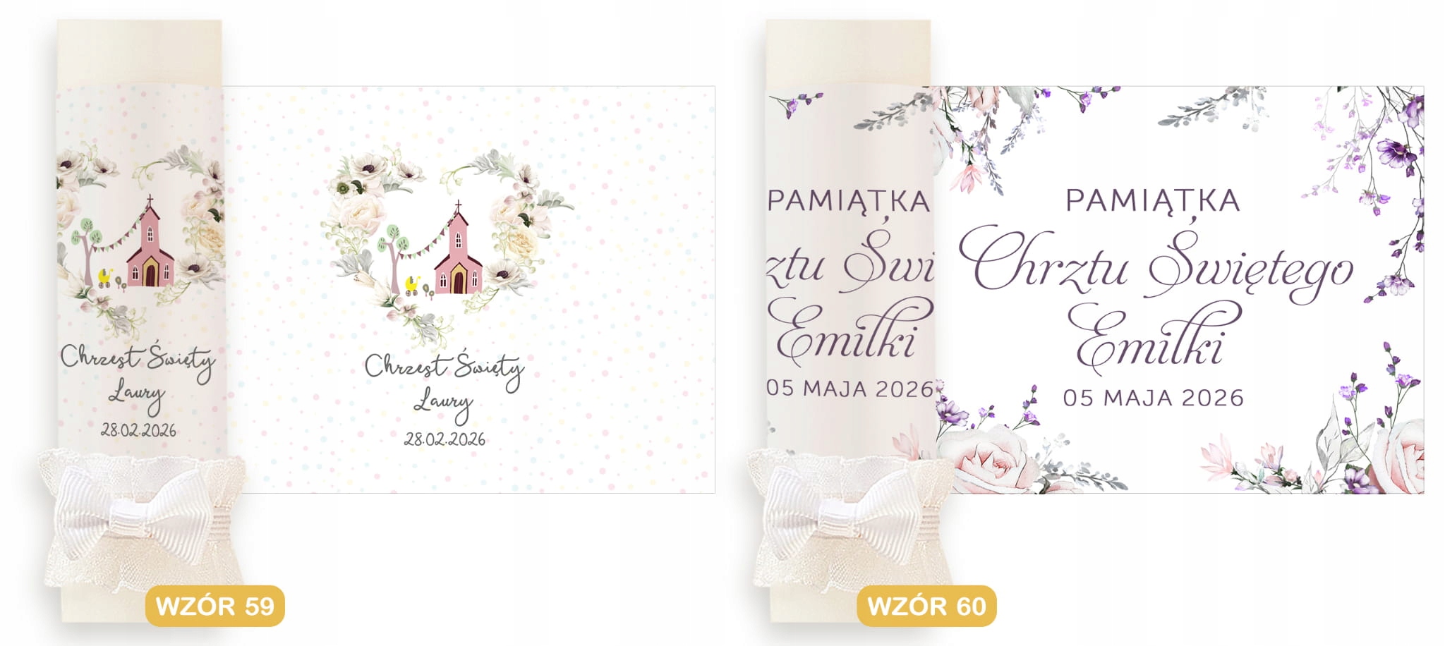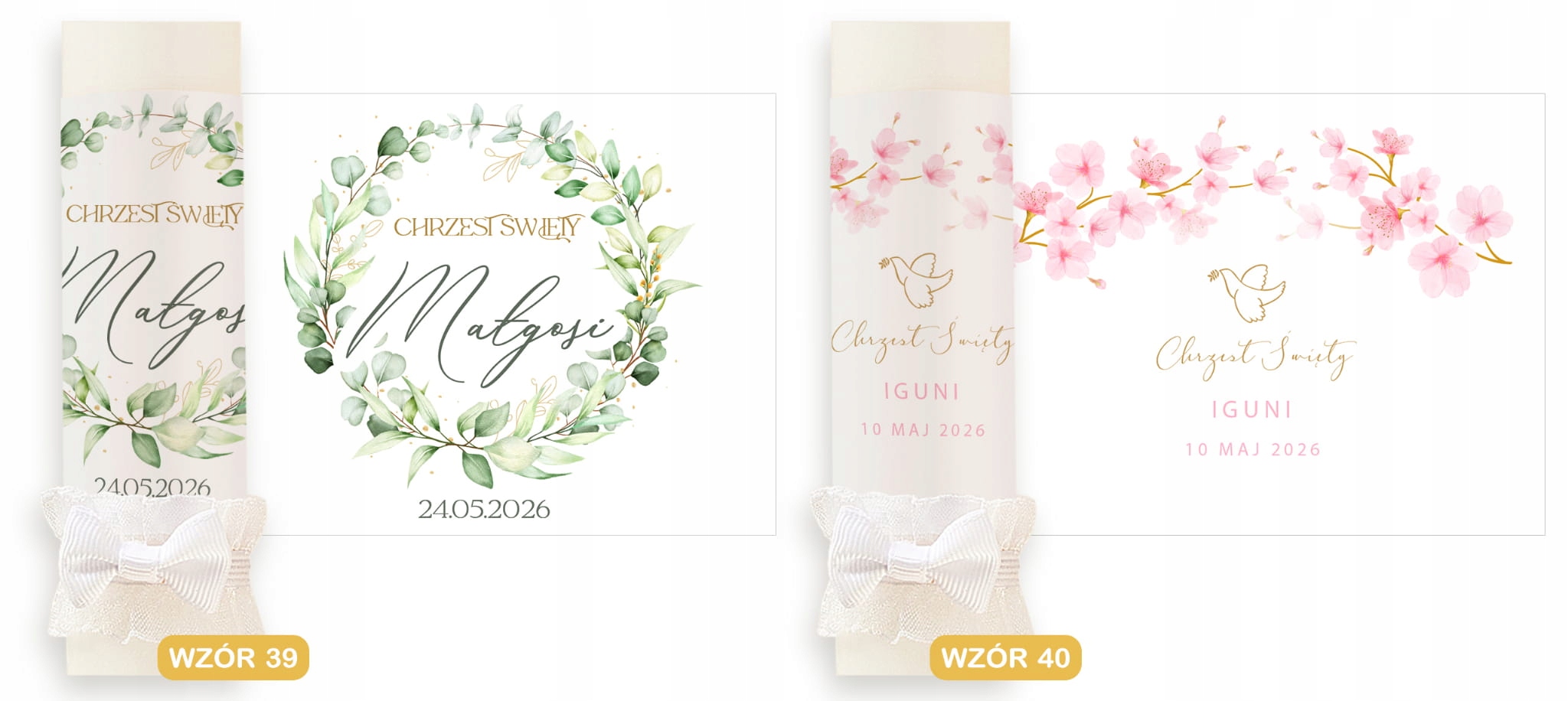 Свічка має етикетку з красивою графікою з нашої багатої колекції візерунків. Мотиви колекції підходять як для хрещення хлопчика, так і для дівчинки.