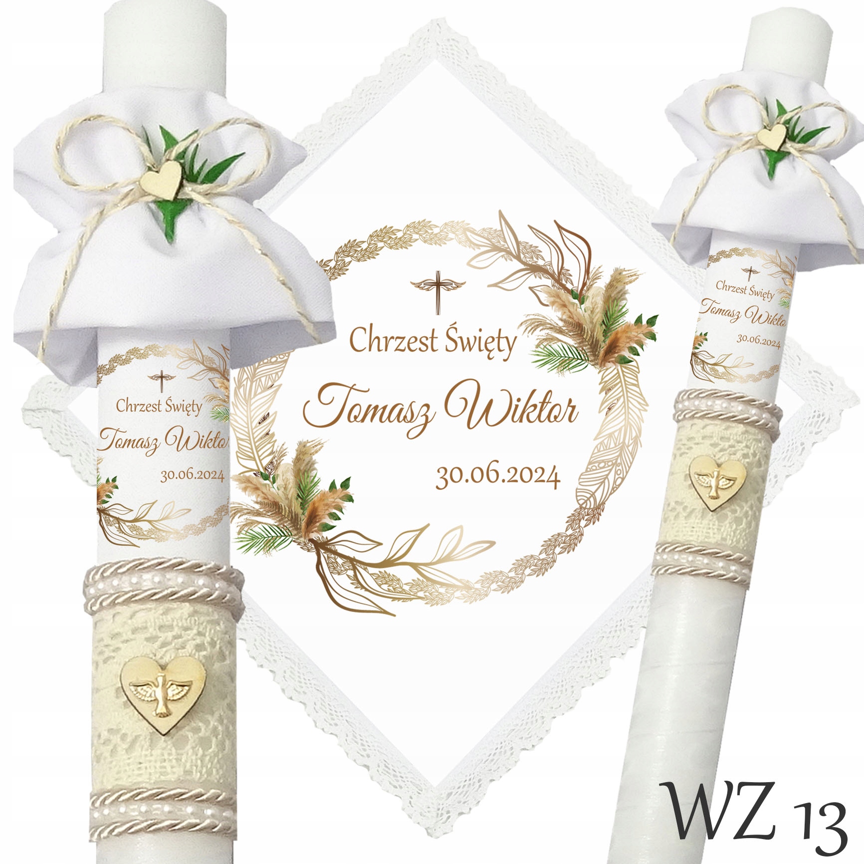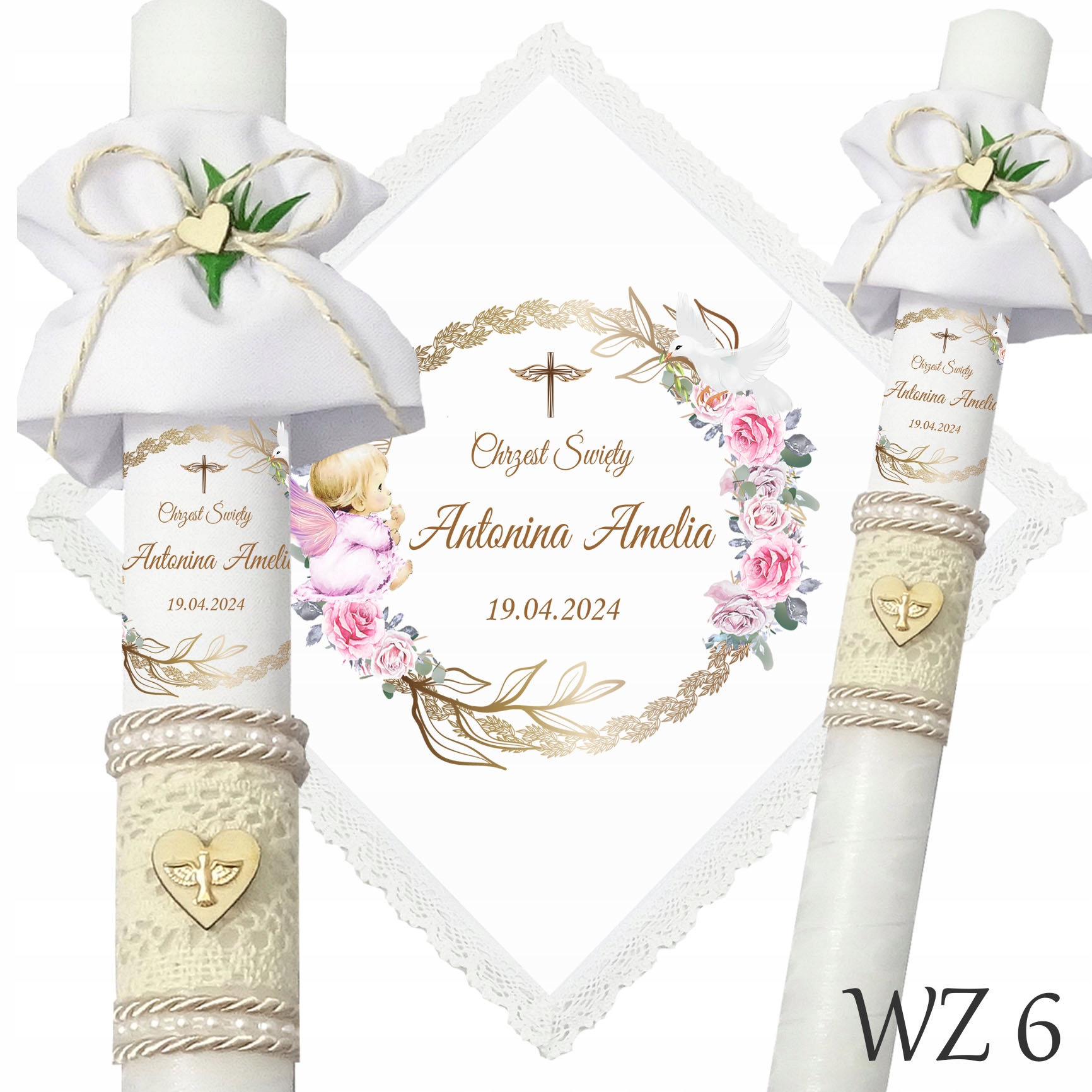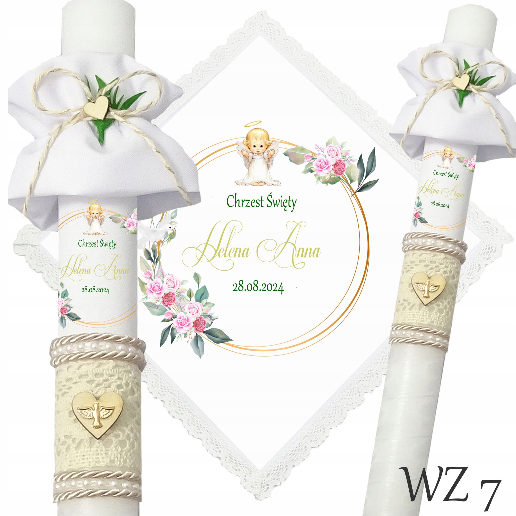 BIAŁA SZATKA I ŚWIECA DO CHRZTU CHRZEST IMIĘ