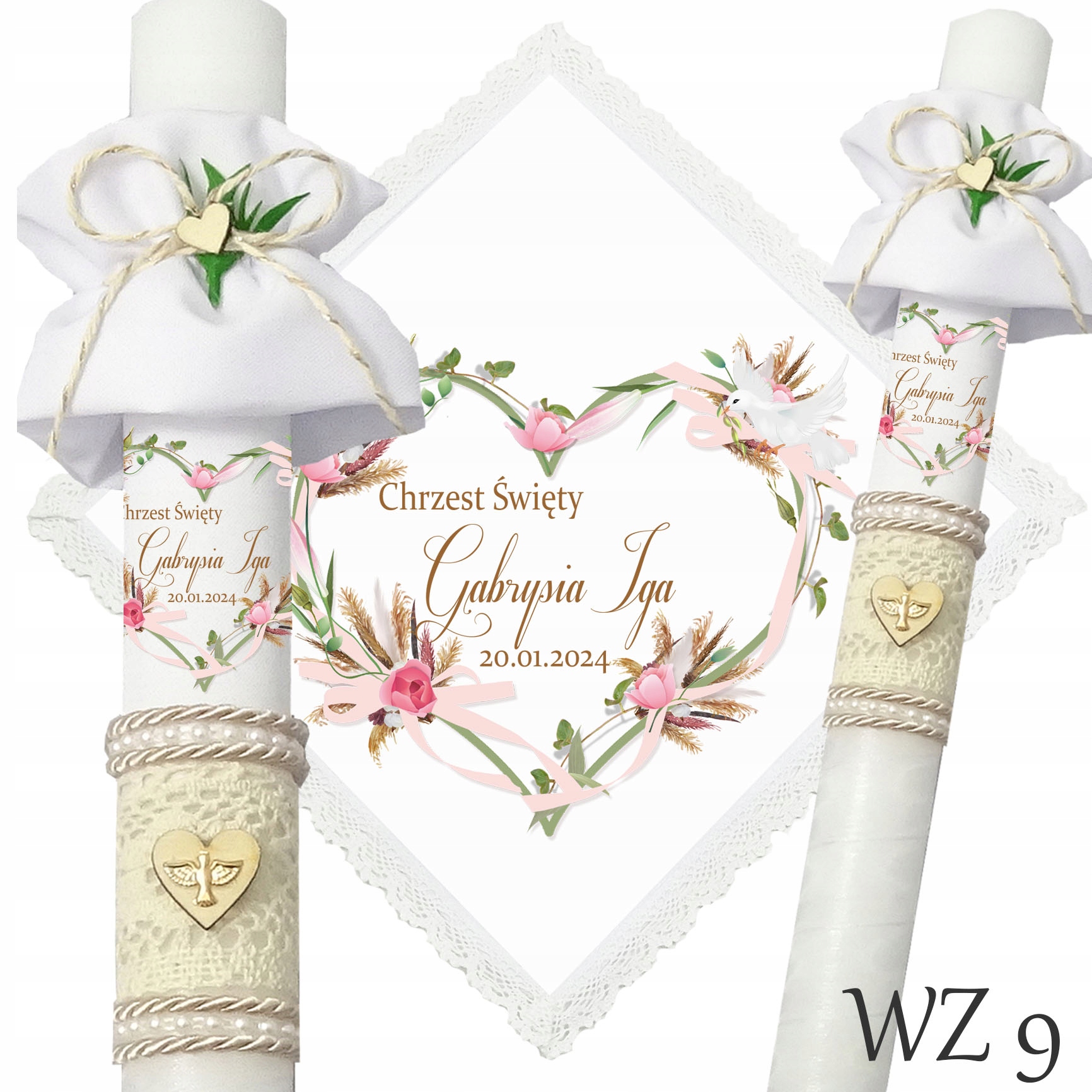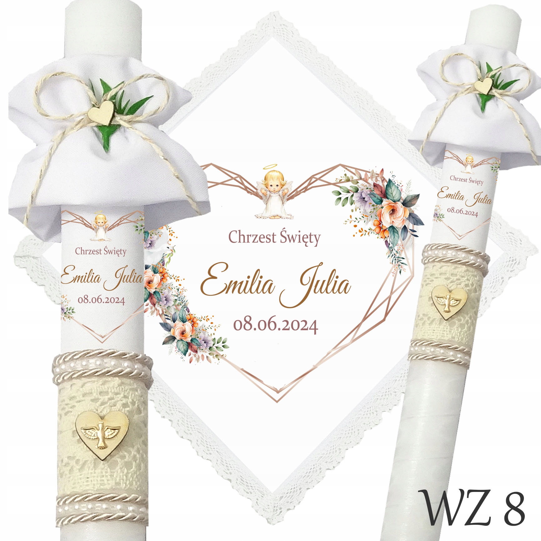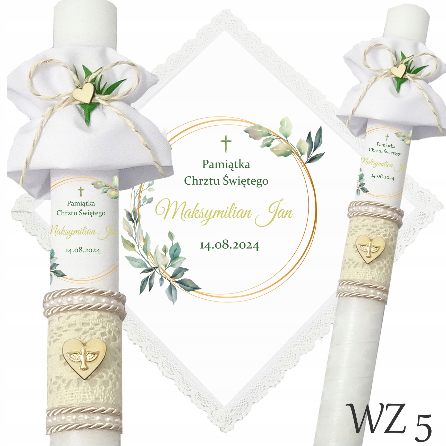 BIAŁA SZATKA I ŚWIECA DO CHRZTU CHRZEST IMIĘ