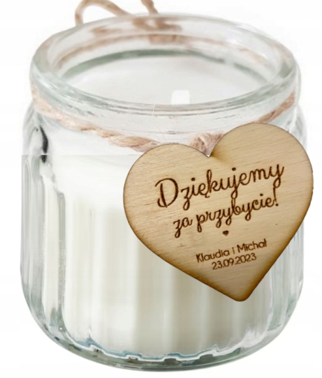 Подяка гостям у вигляді ароматичної свічки - чудовий подарунок, який здивує гостей весілля. Також може бути елементом декору на весільних столах. Свічка ароматична. Після освітлення ми відчуваємо дім зі справжньою атмосферою, навіяною природою та лісами з відтінком цитрусових.