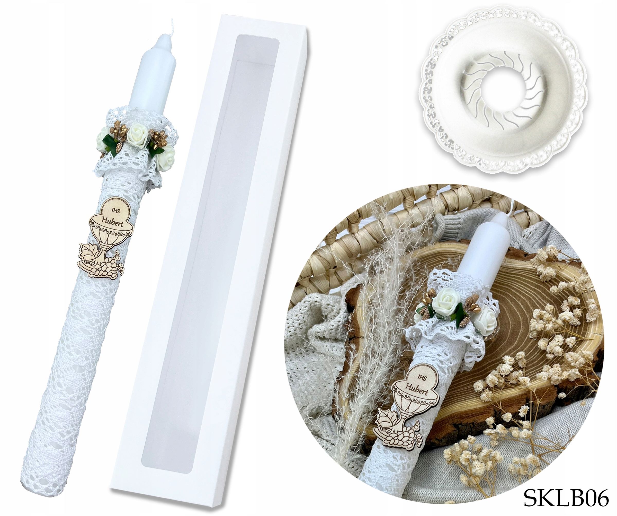 ⭐ Свічка COMMUNION з бавовняним мереживом, ручна робота.