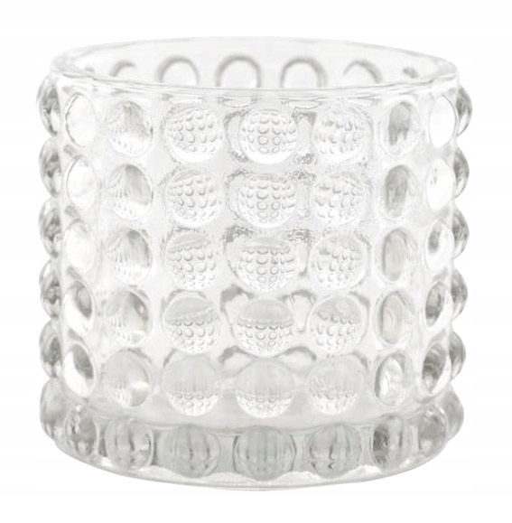 Скляний свічник з прозорого скла з тисненим точковим візерунком на стінках.Оздоблення свічника витончено прикрасить будь-який інтер'єр і освітить кожен куточок будь-якого інтер'єру. Підійде і як елемент декору, і як прикраса літньої тераси. Ідеально підходить для чайних свічок,