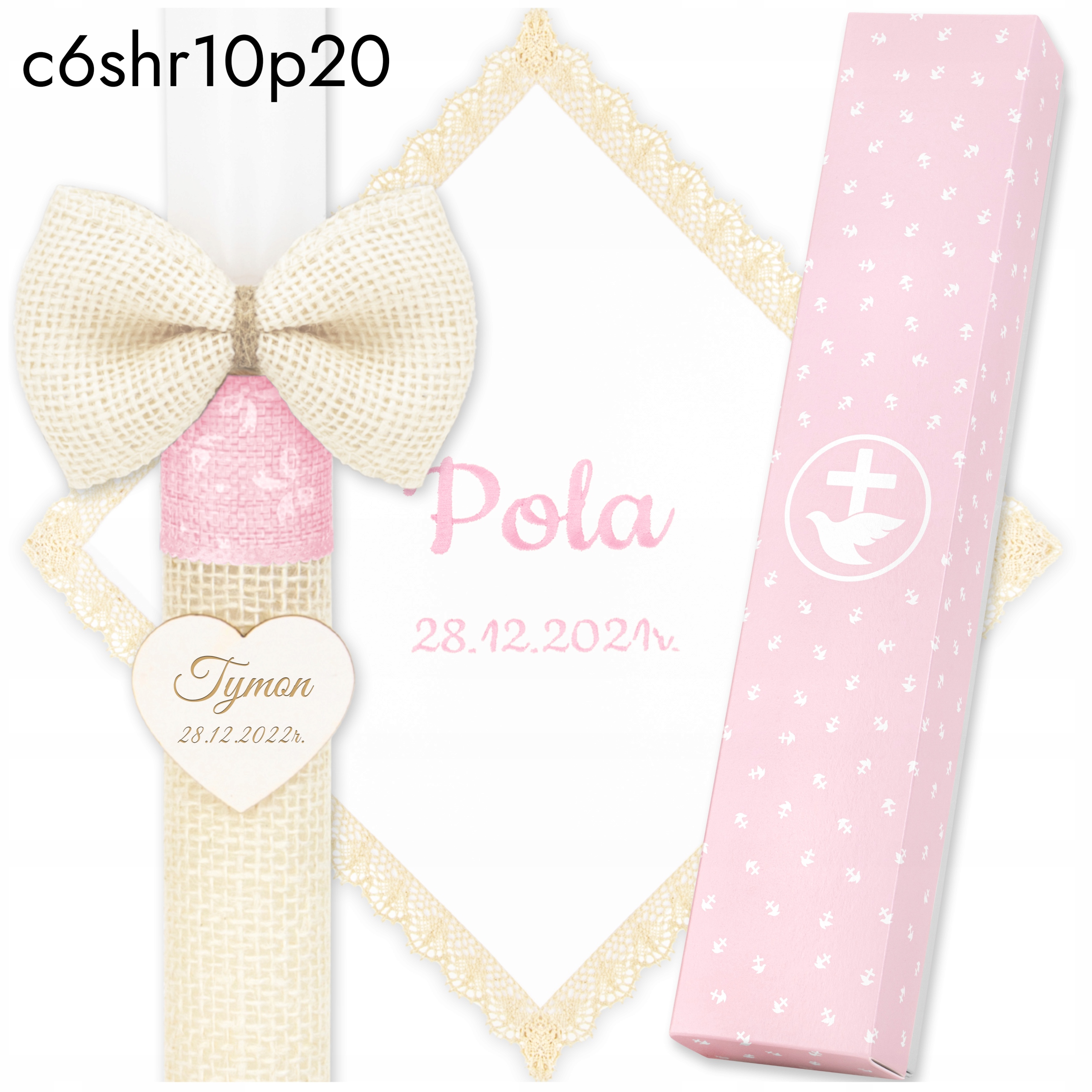 Свічка для хрещення обгорнута ніжним джутовим матеріалом, що надає їй сільського характеру, бохо. . Він прикрашений стрічками, які підкреслюють його неповторний стиль. Більше того, свічка прикріплена до чудового джутового банта та кулона у формі серця, на якому ми можемо вигравірувати ваше ім’я та дату хрещення, щоб зробити цей сувенір ще більш особистим.