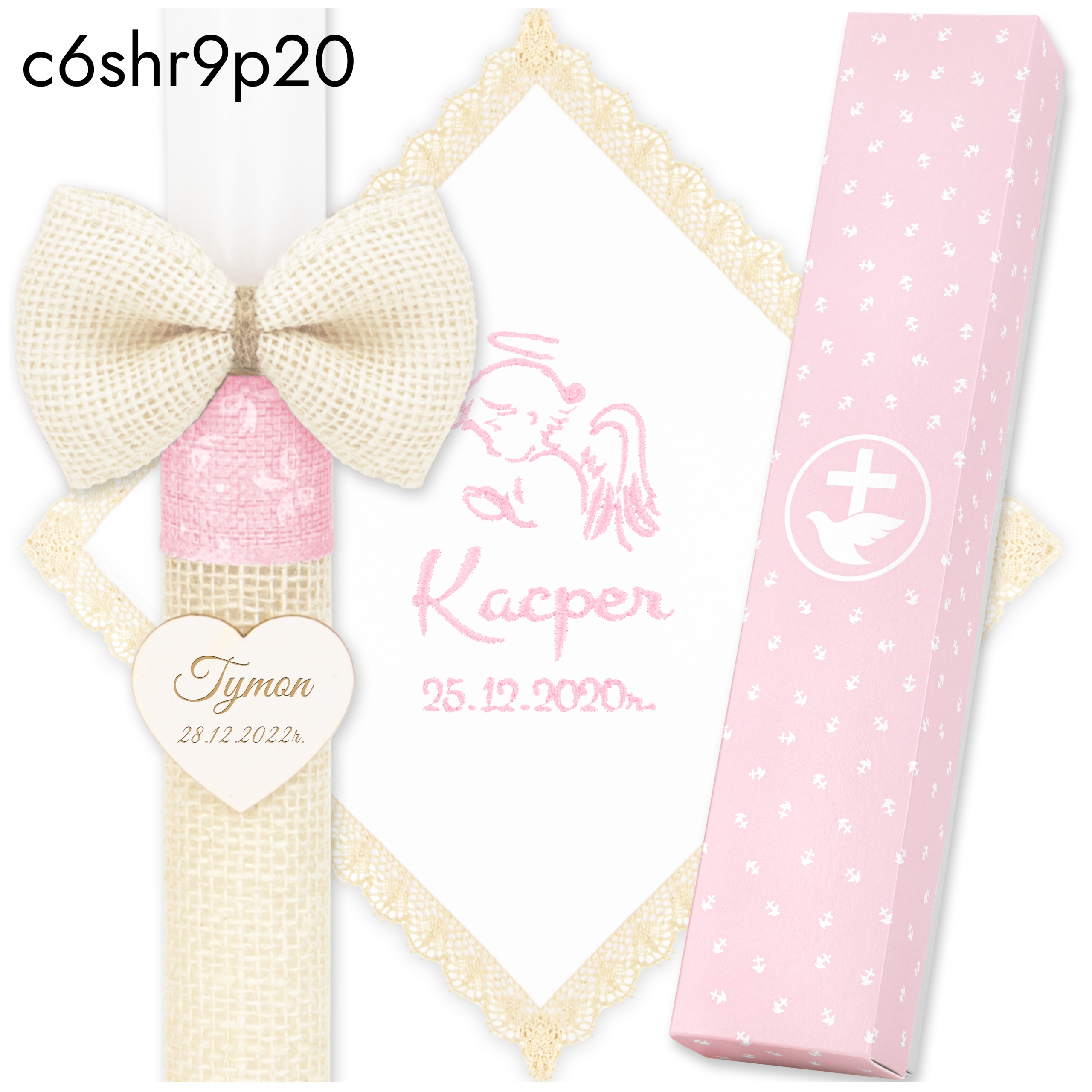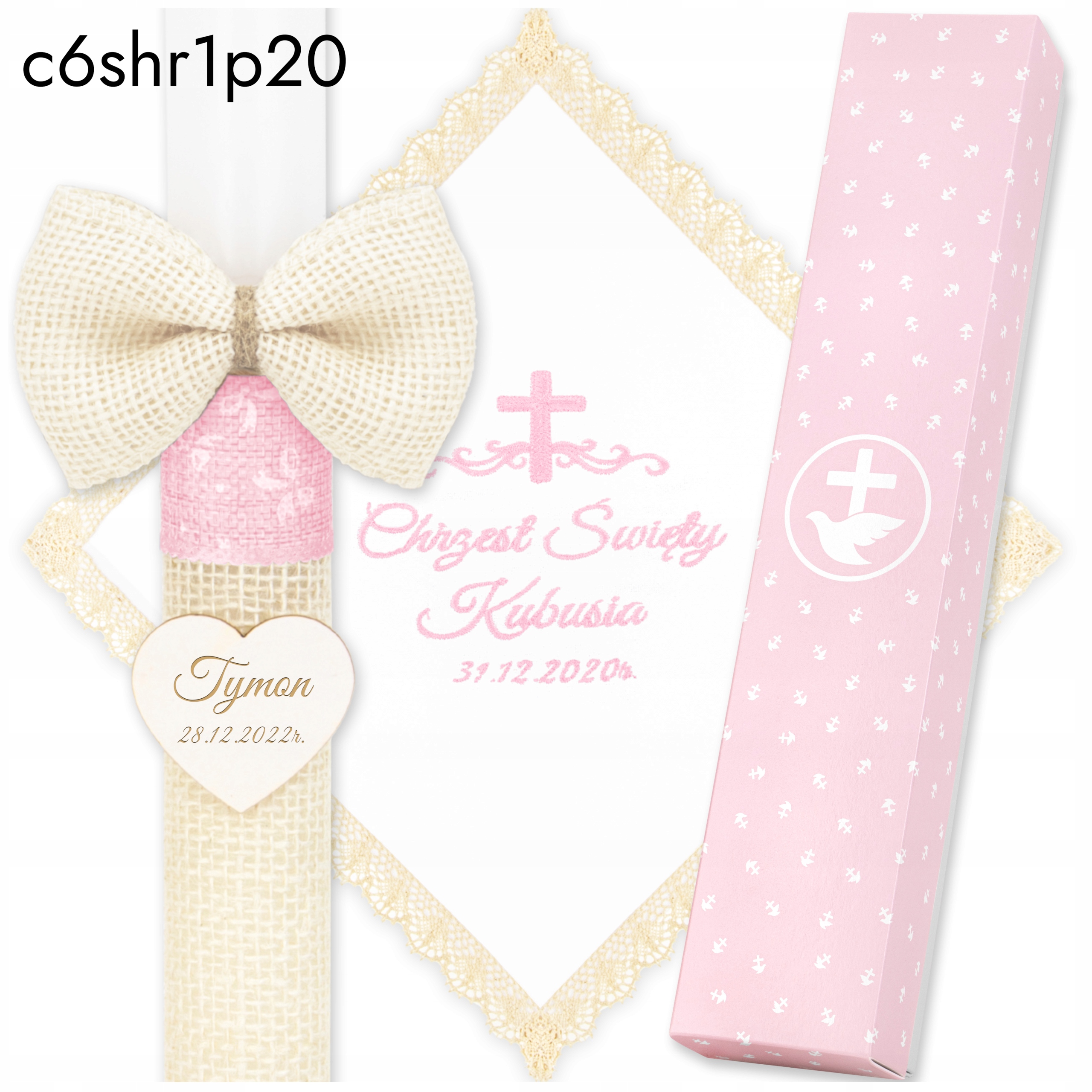 ХРЕСТИННА СВІЧКА, БІЛА ВИШИВАНА ХРЕСТИННА, СКОРОБКА + свічник
