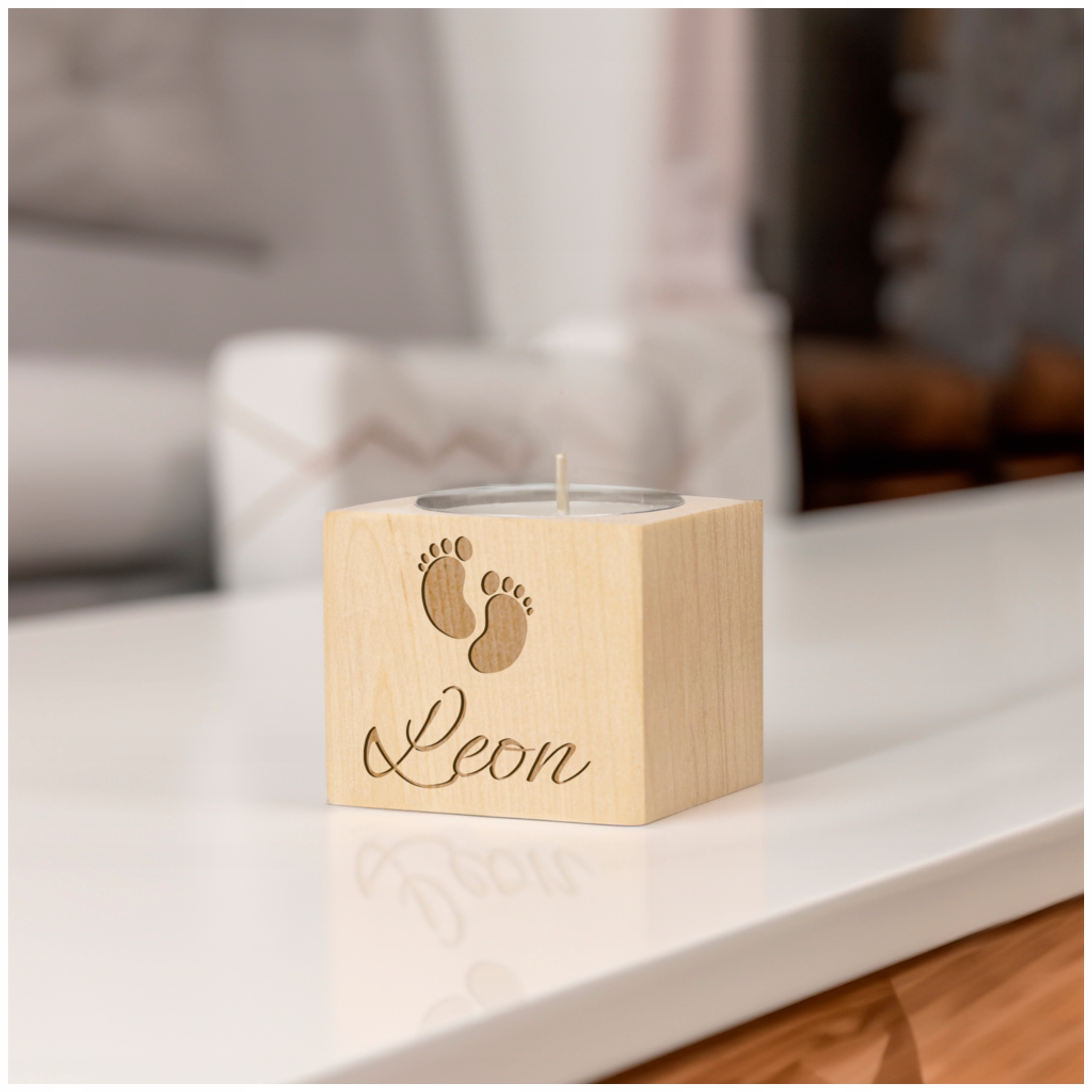 У придбаний набір входить дерев'яна свічка з вигравіруваними ніжками та ім'ям дитини:)