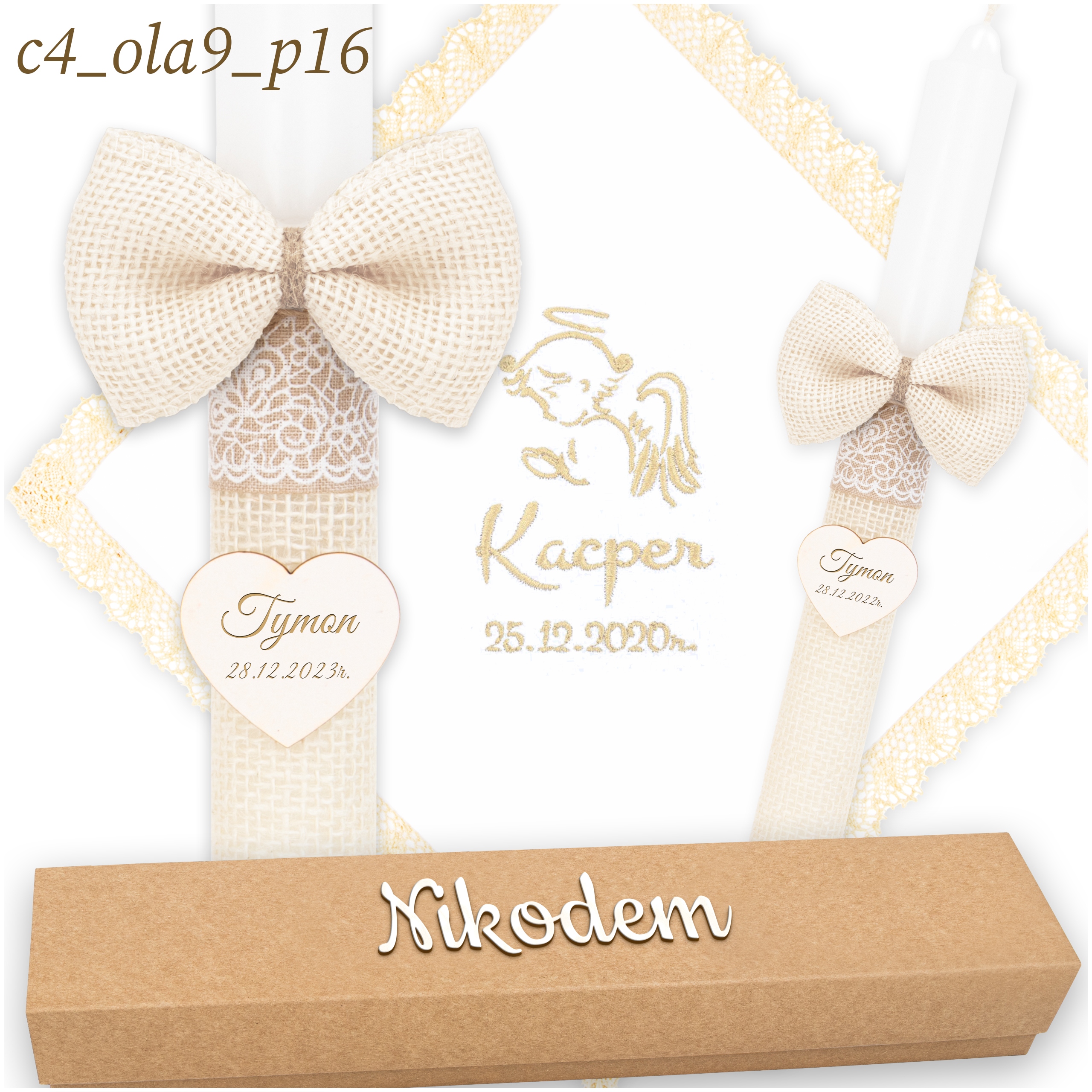 ХРЕСТИННА СВІЧКА, БІЛА ВИШИВАНКА + СКОРОБКА