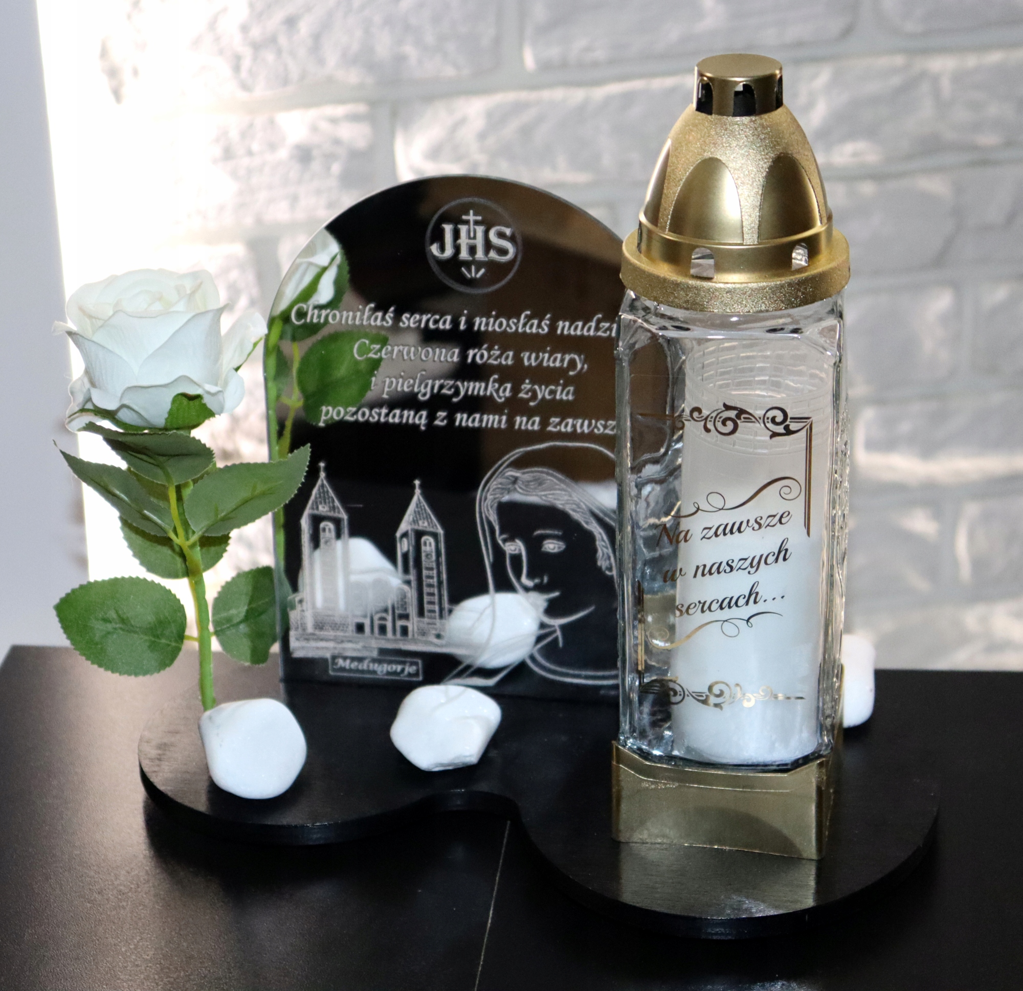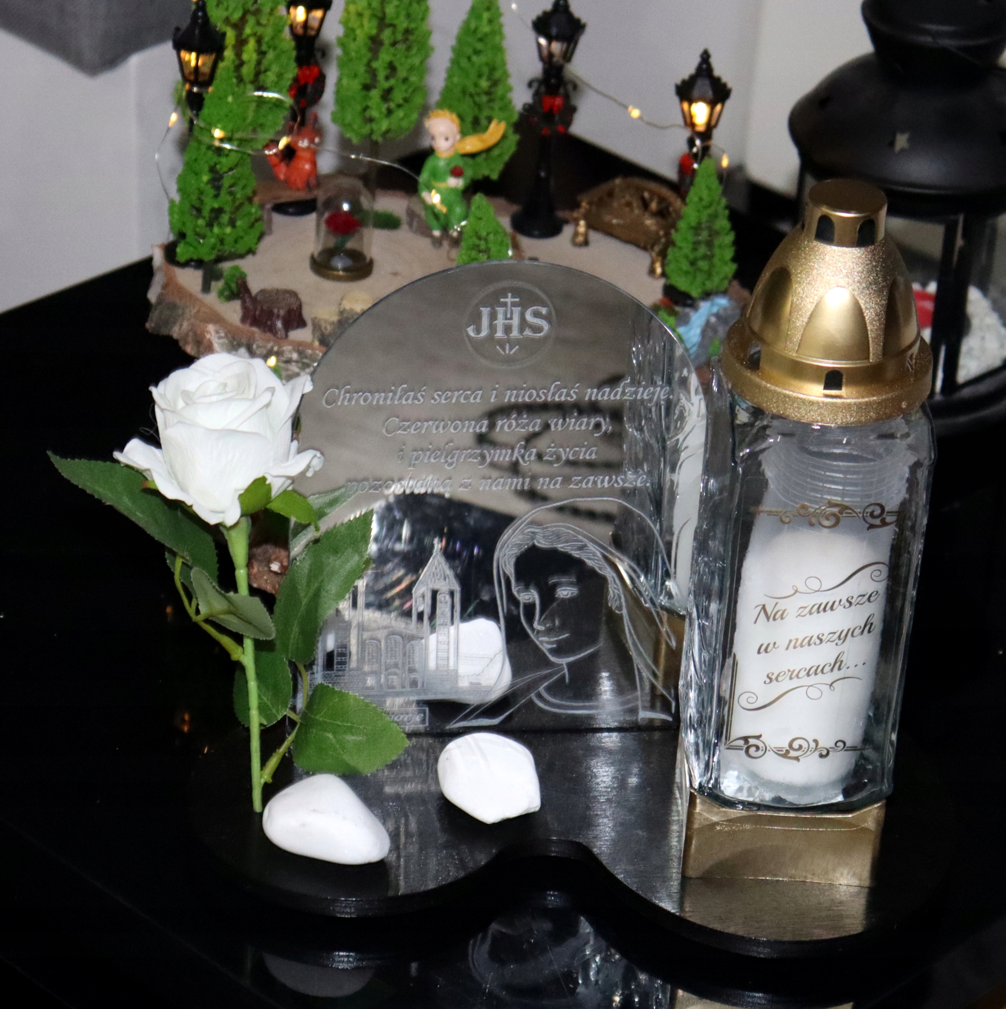 Оздоблення доповнено дзеркальною пластиною з оргскла, на якій ми можемо вигравірувати будь-який вміст, що додає неповторного характеру ціла.