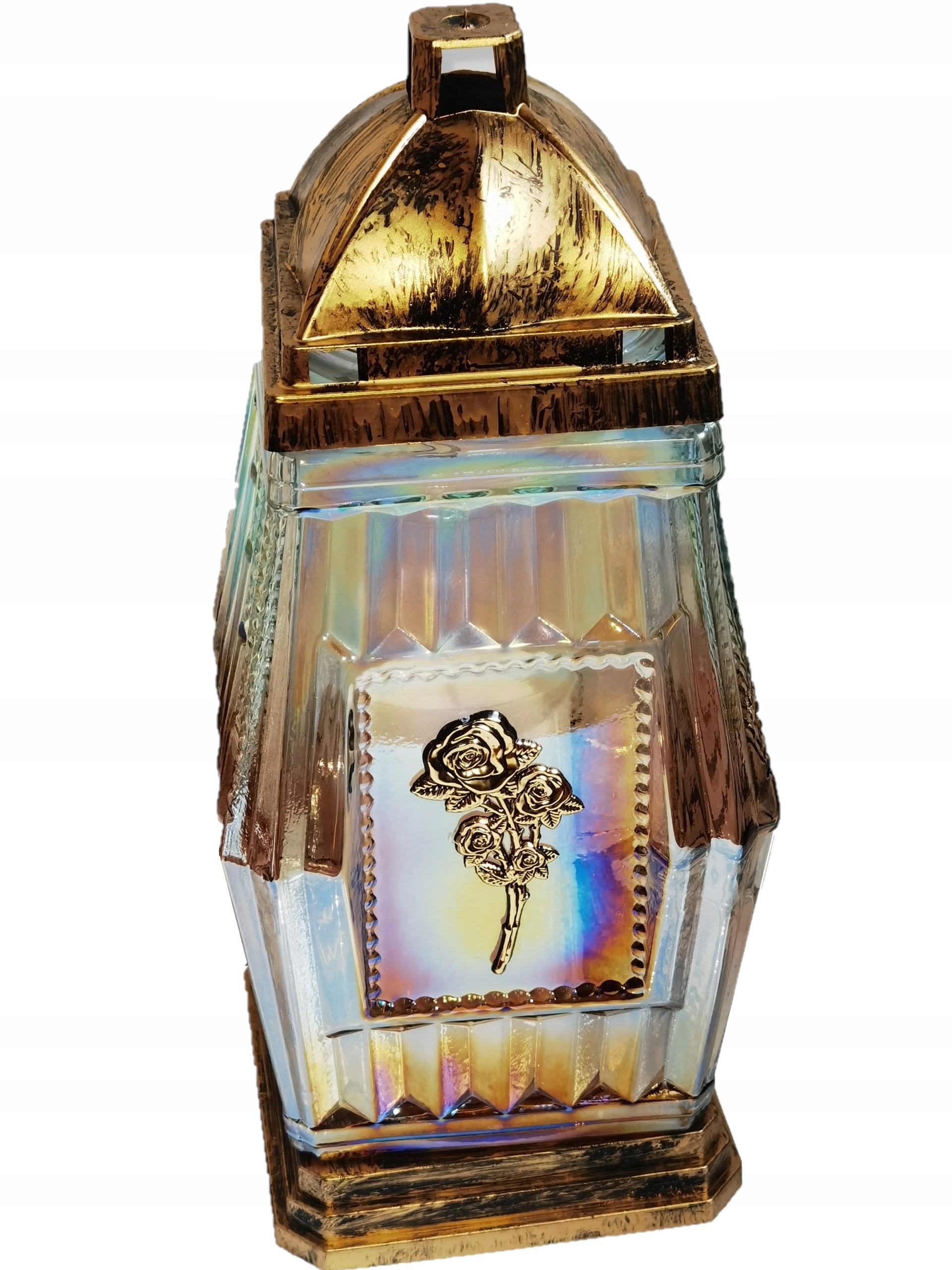 СВІЧКА СКЛЯНА НА МОГИЛУ ВСЕХСВЯТСЬКИЙ ЦВИНАР ВЕЛИКИЙ ЗОЛОТИЙ З ТРОЯНДОЙ