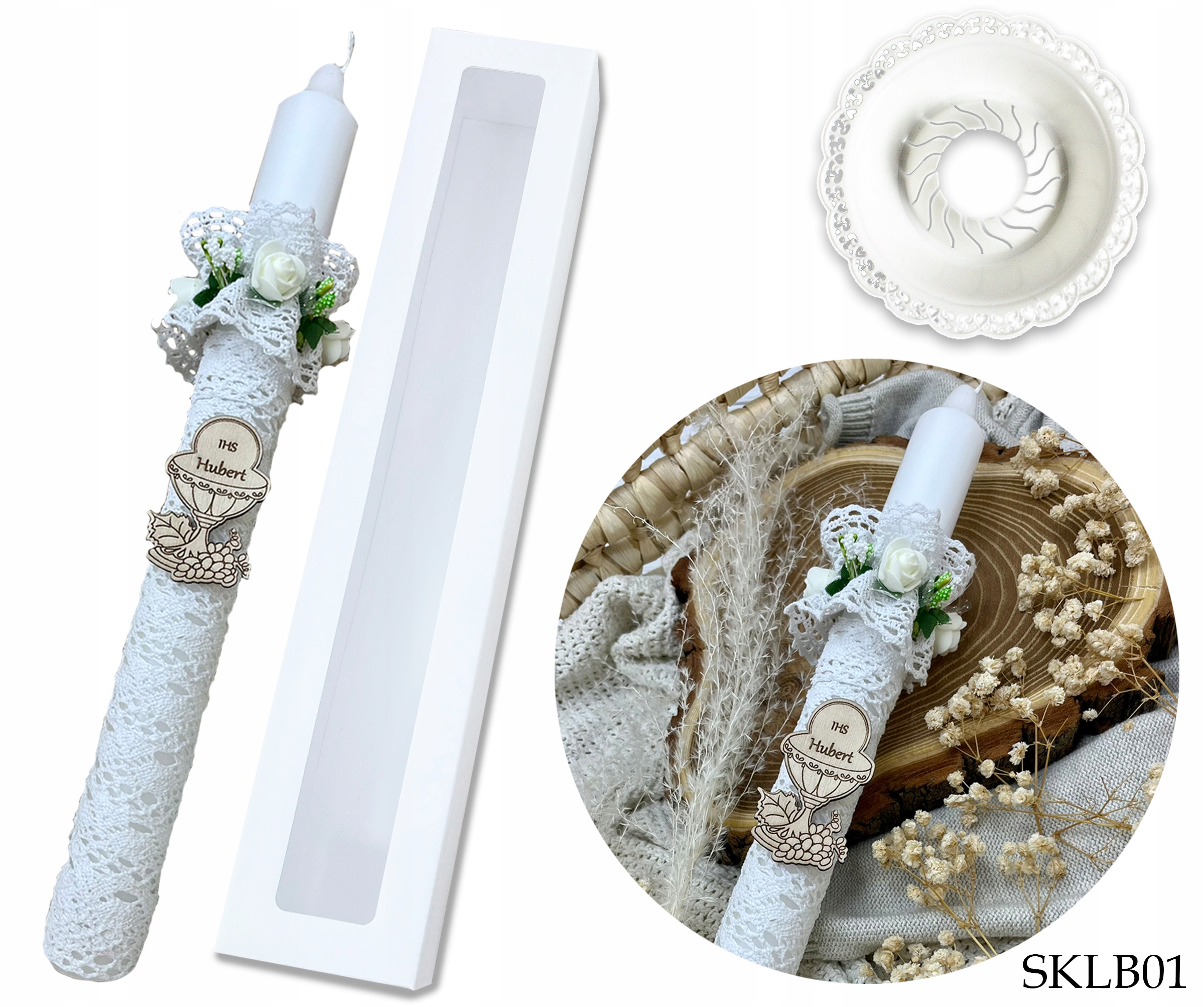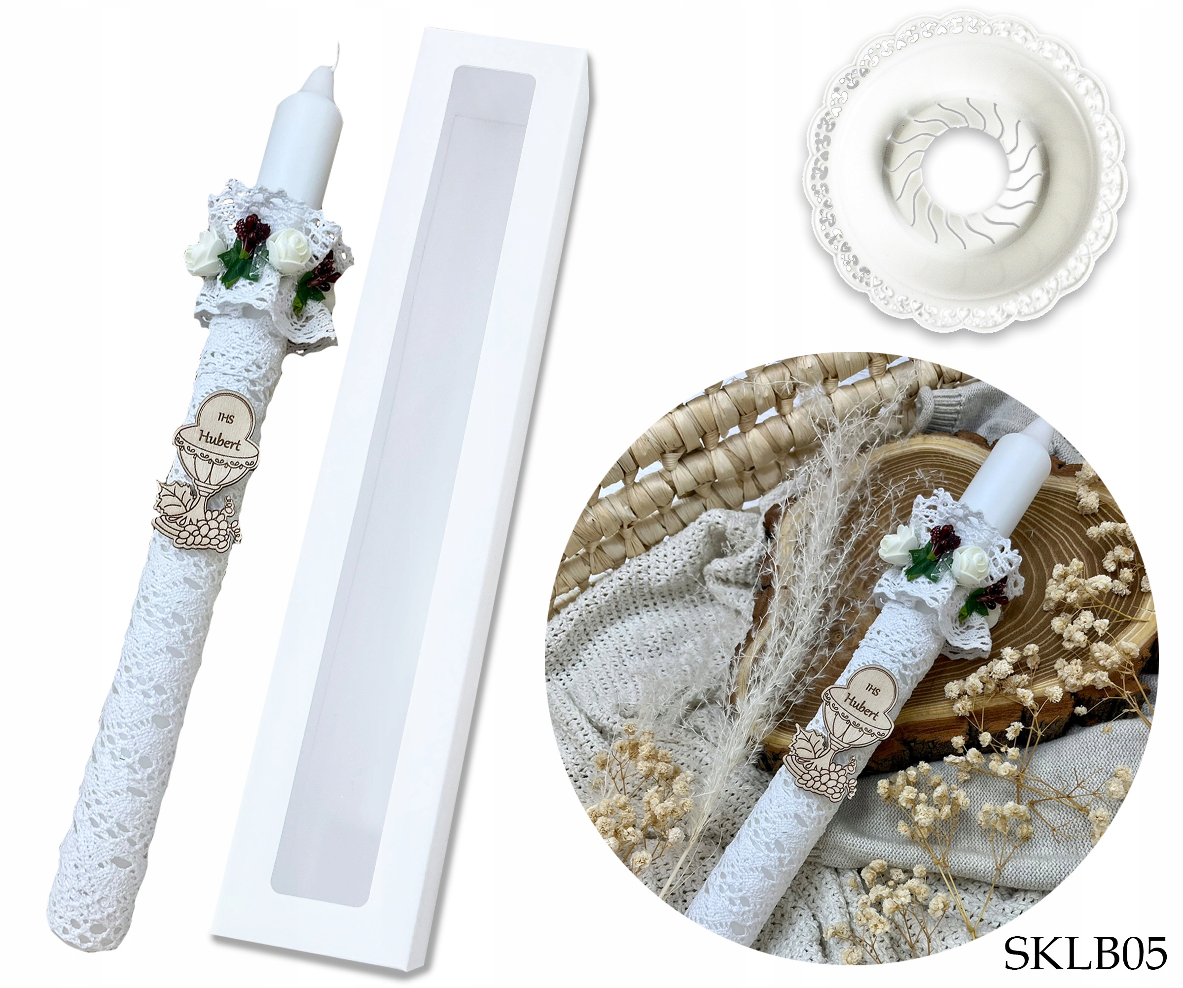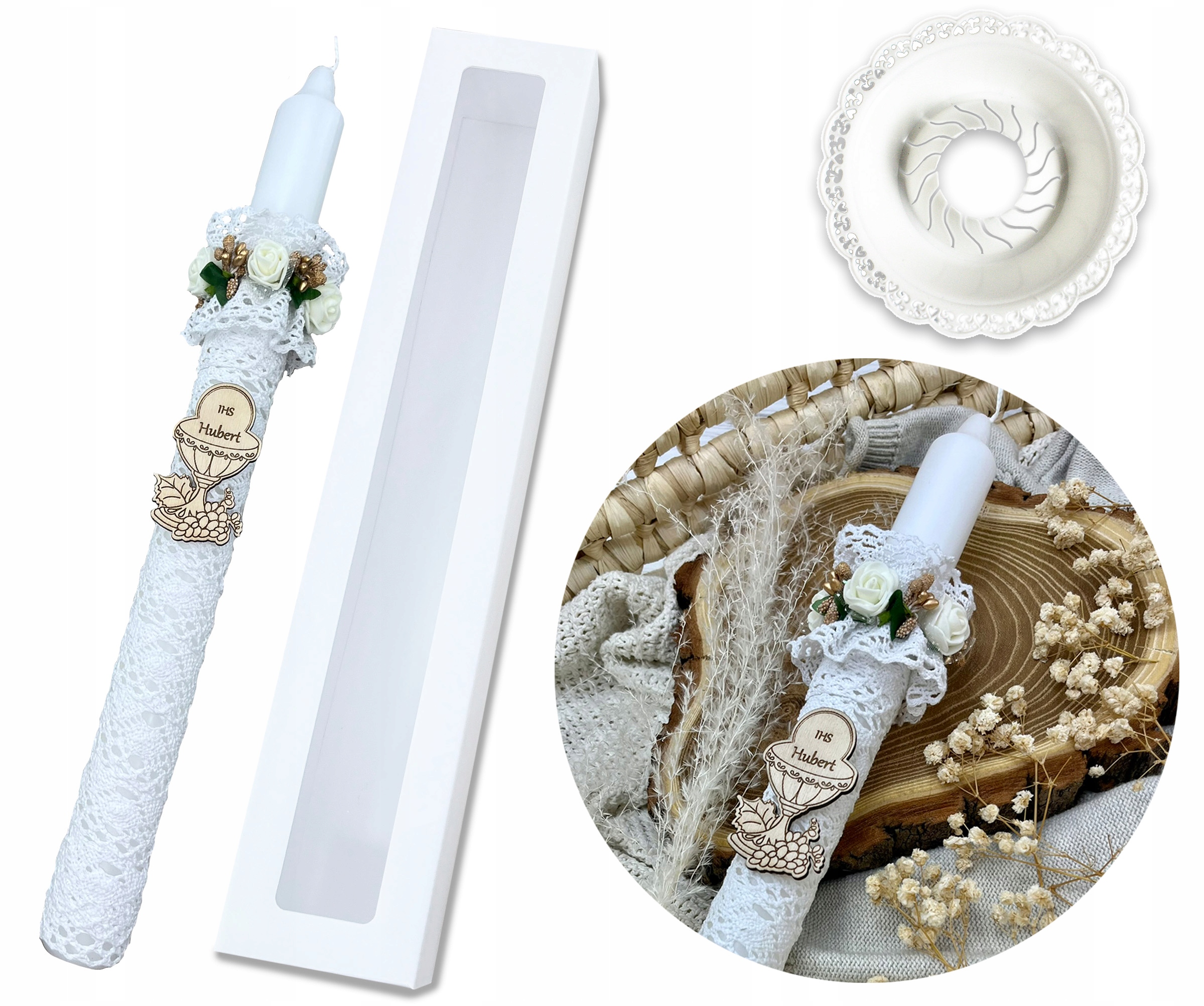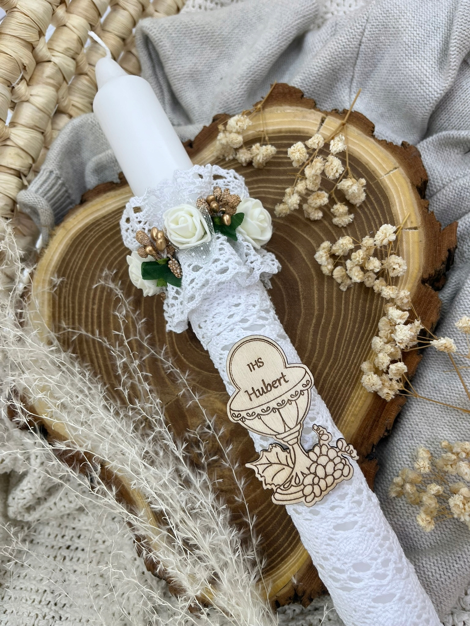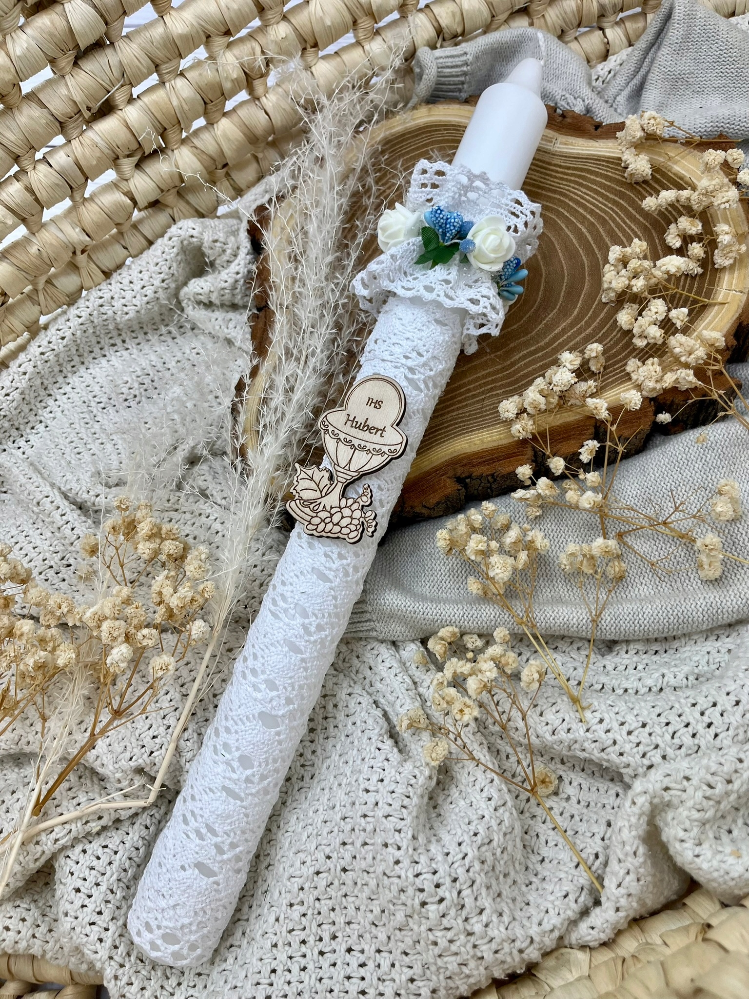 ⭐ Свічка COMMUNION з бавовняним мереживом, ручна робота.