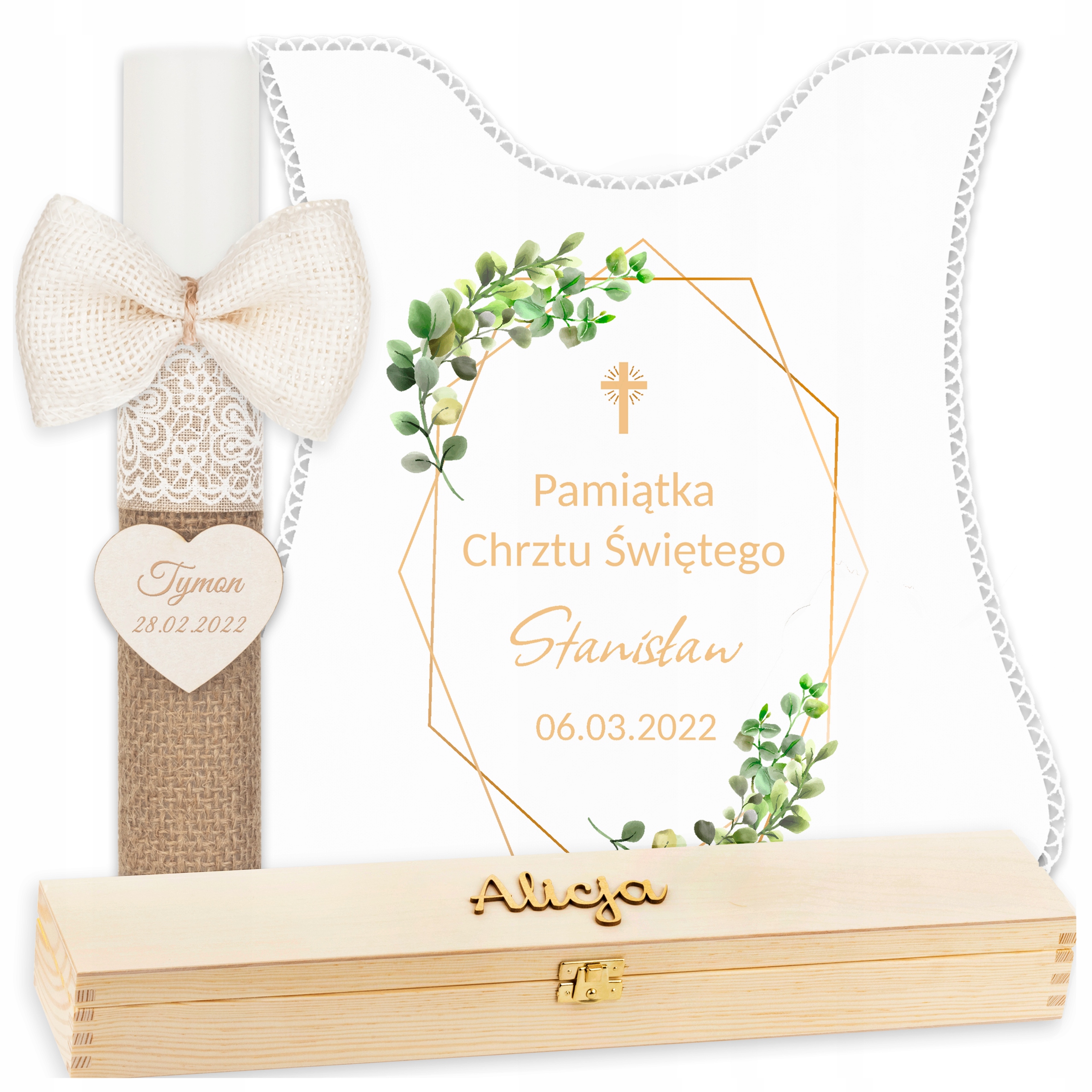 - Гравірування з лазерною технікою - до свічки прикріплений кулон, на якому ми залучаємо ім'я дитини та дату церемонії. Для гравірування ми використовуємо останні пристрої світового лідера. 4 Ця методика гарантує міцність кольору протягом багатьох років.