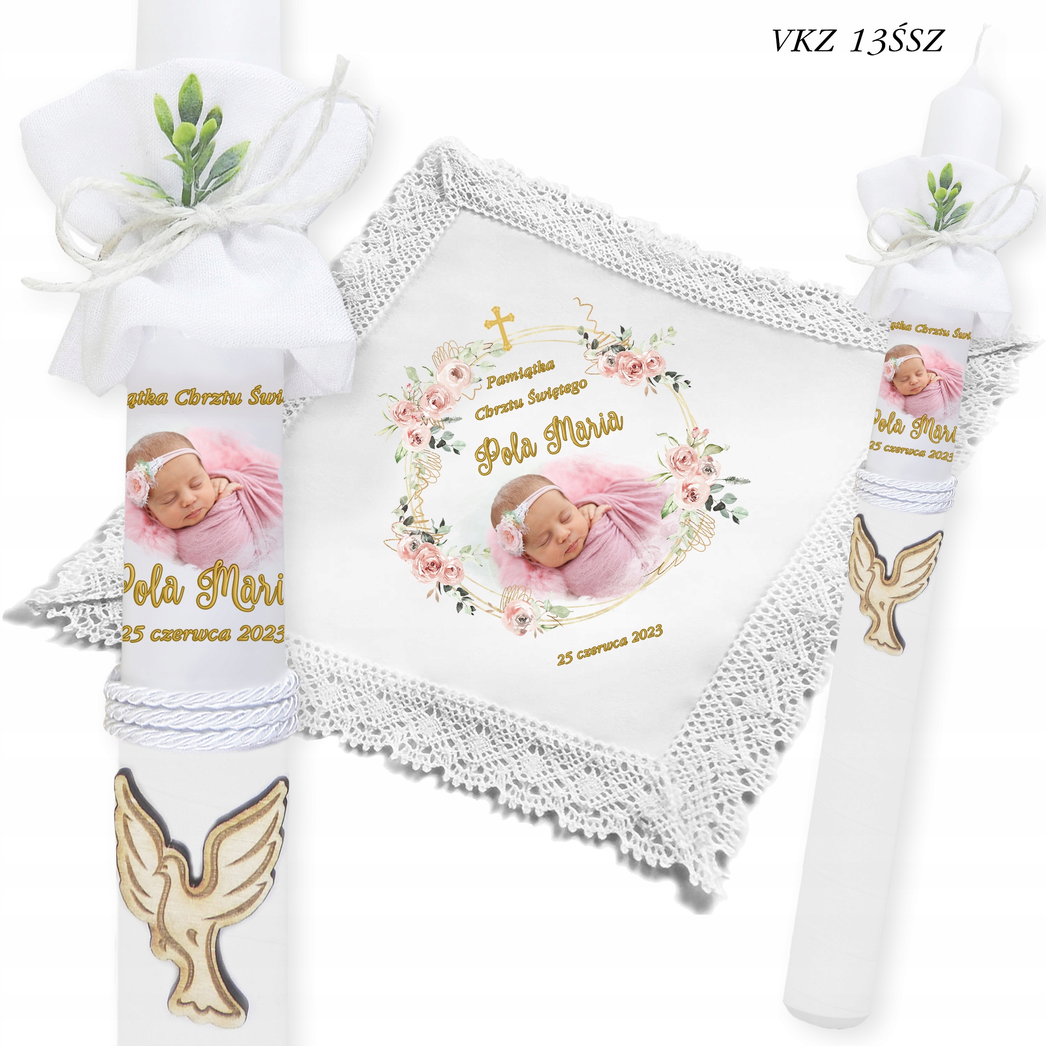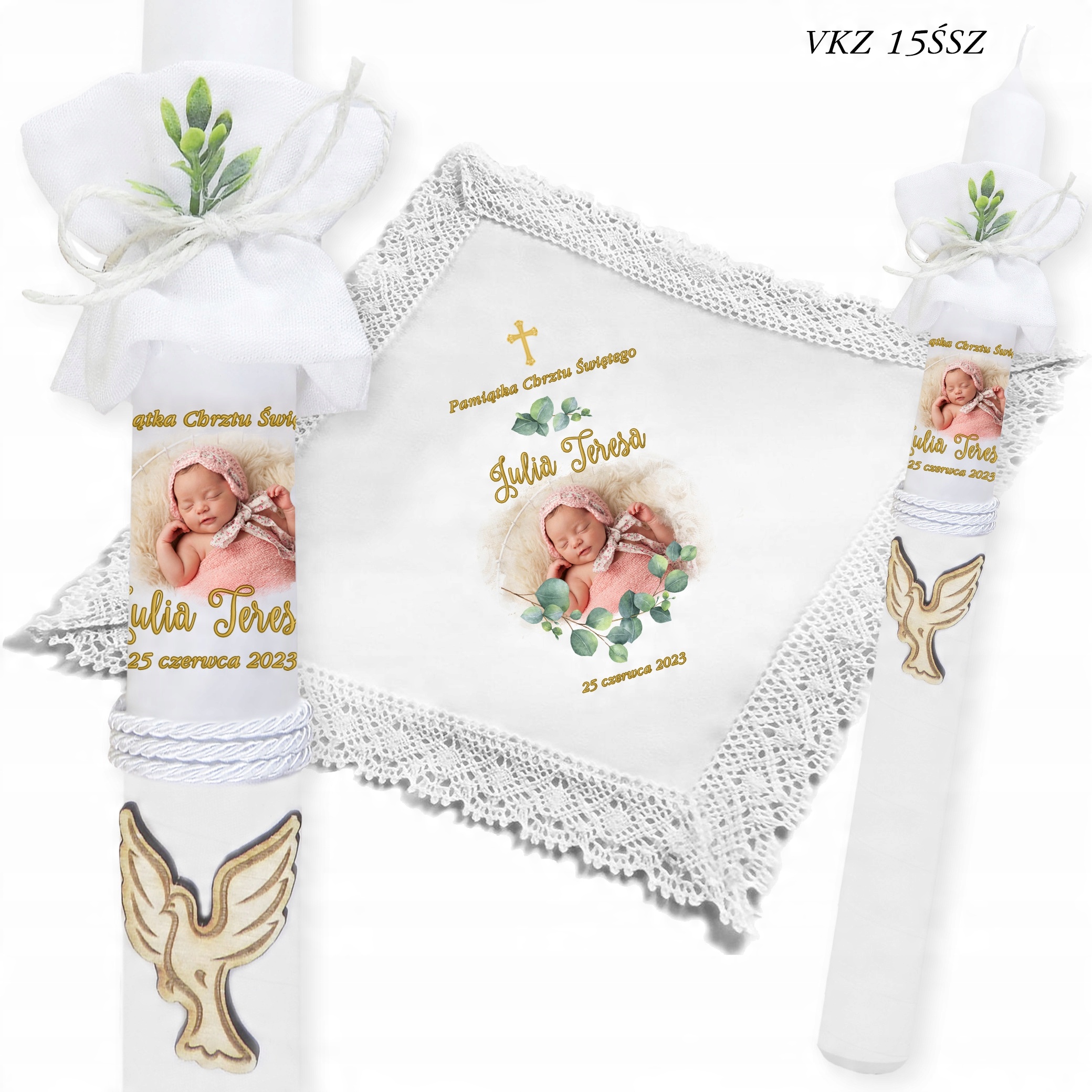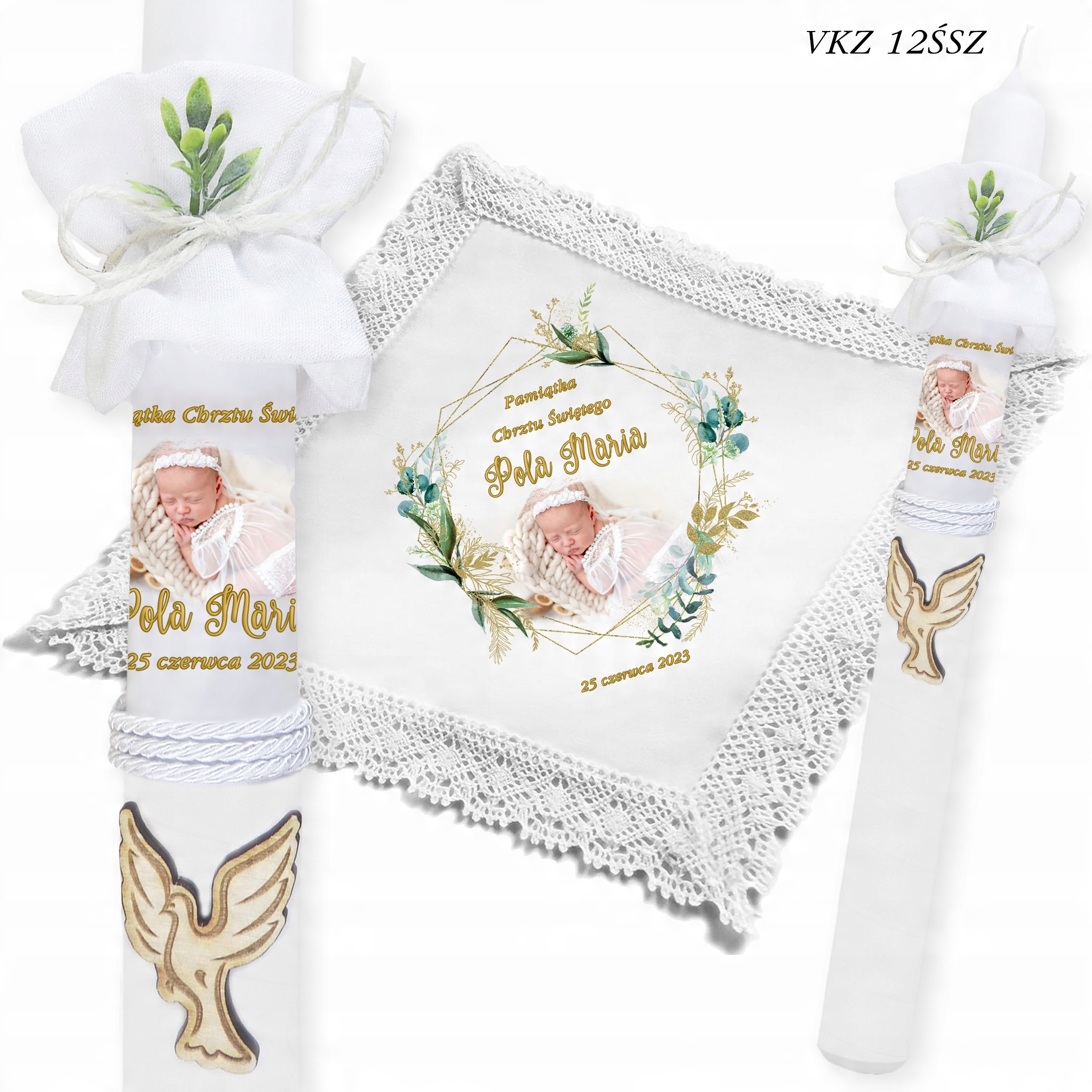 Свічка та хрещення халат + дитяча фотографія + коробка VKZ