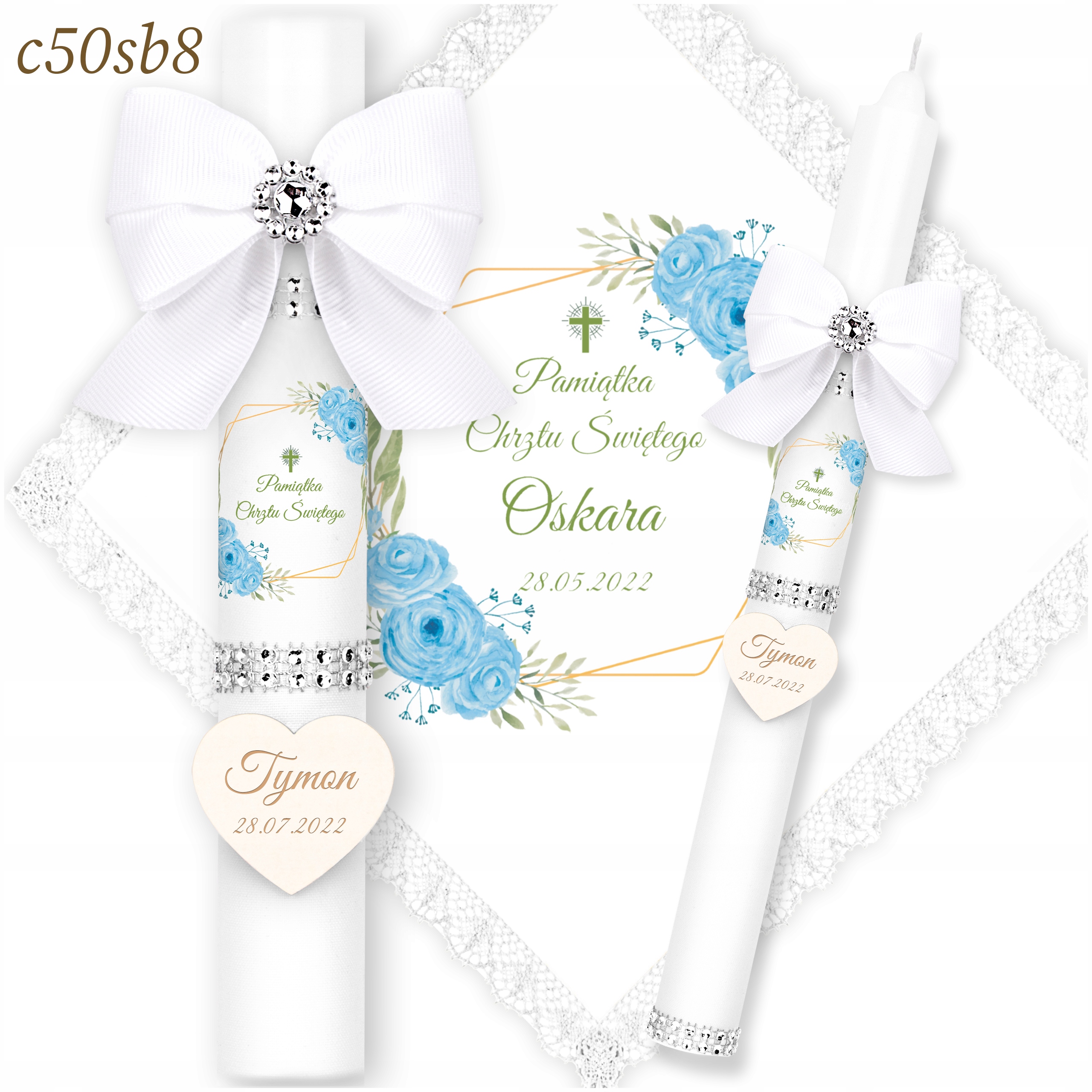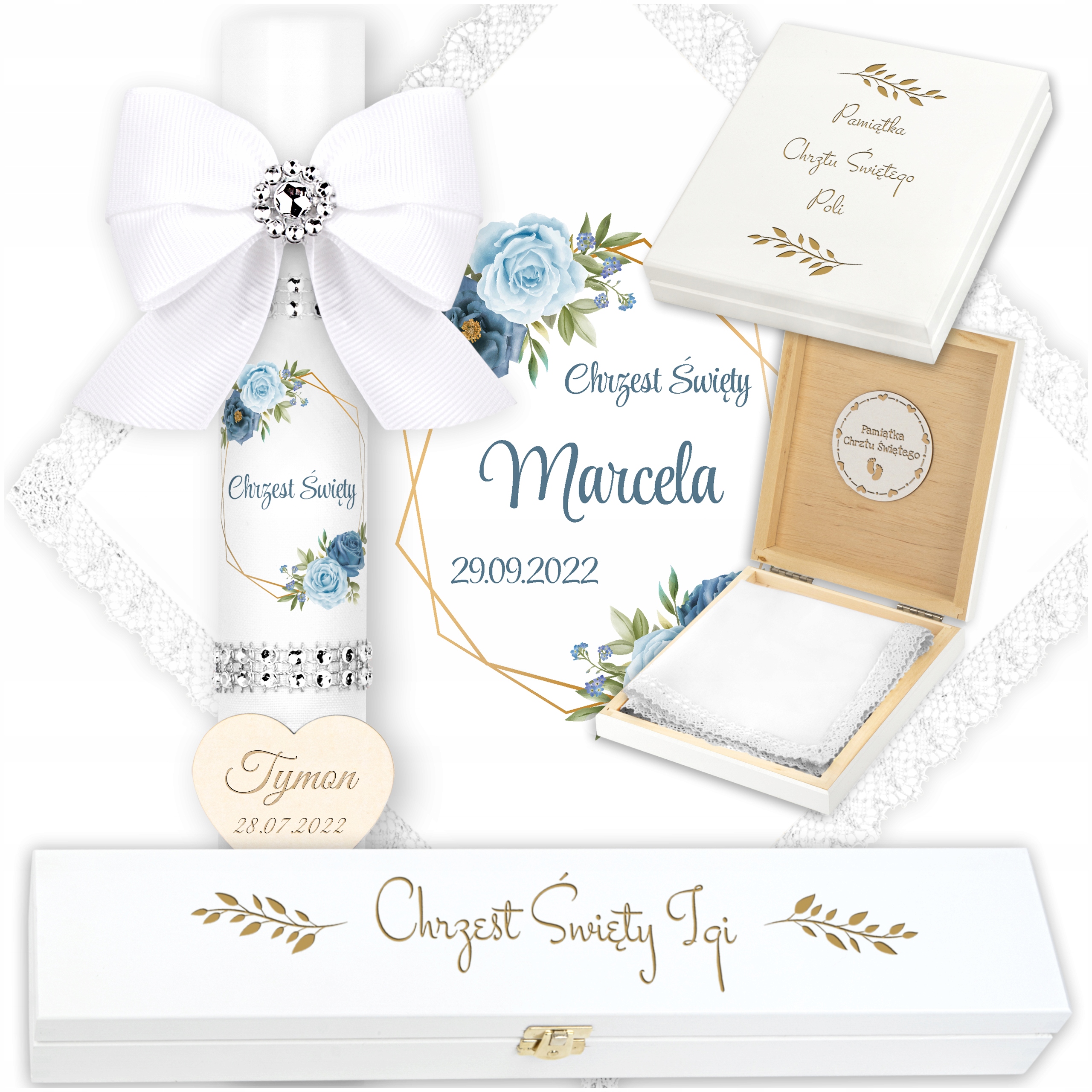СВІЧКА ТА КОВПАК ДЛЯ ХРЕЩЕННЯ + 2 КОРОБКИ ДЛЯ ХРЕЩЕННЯ