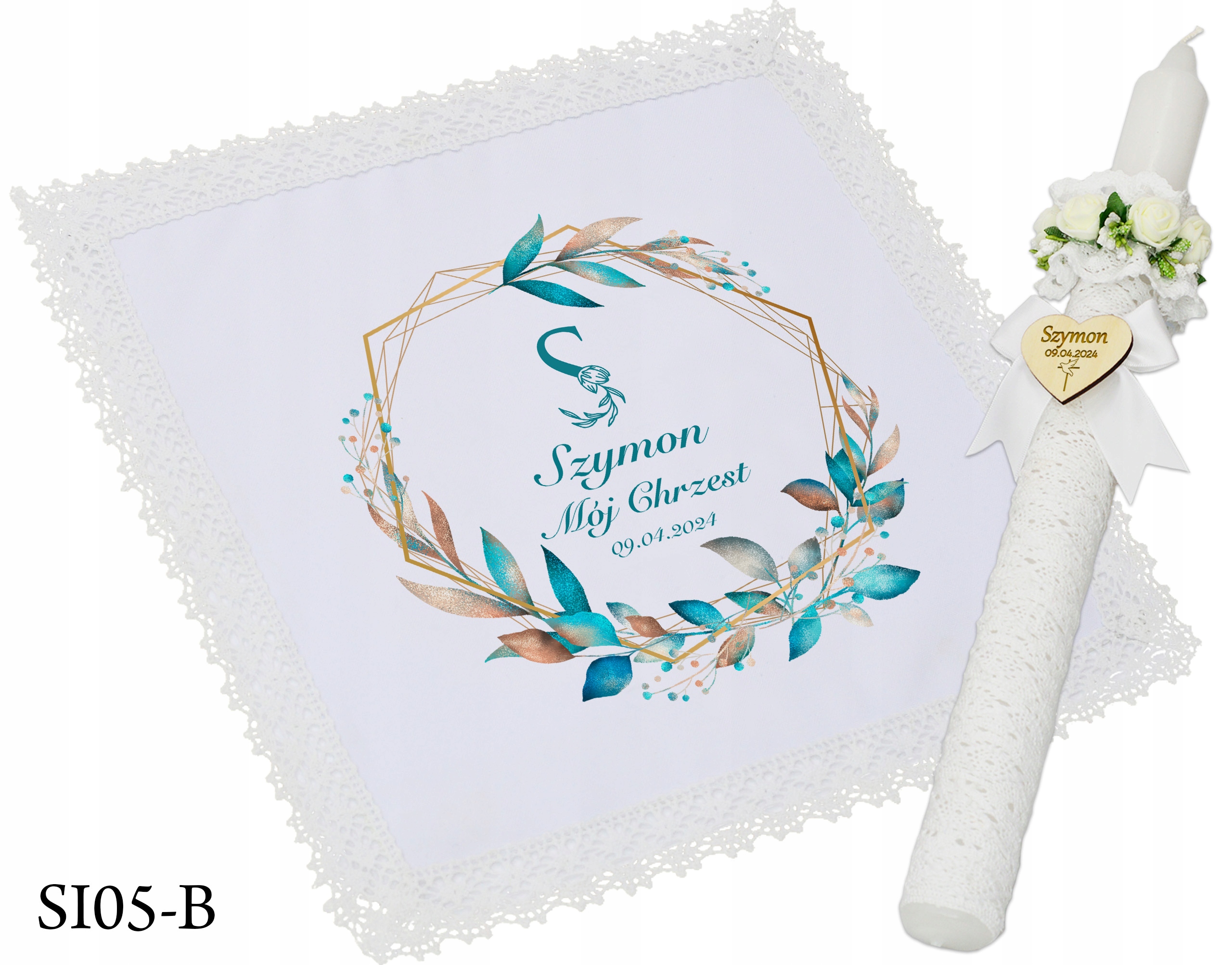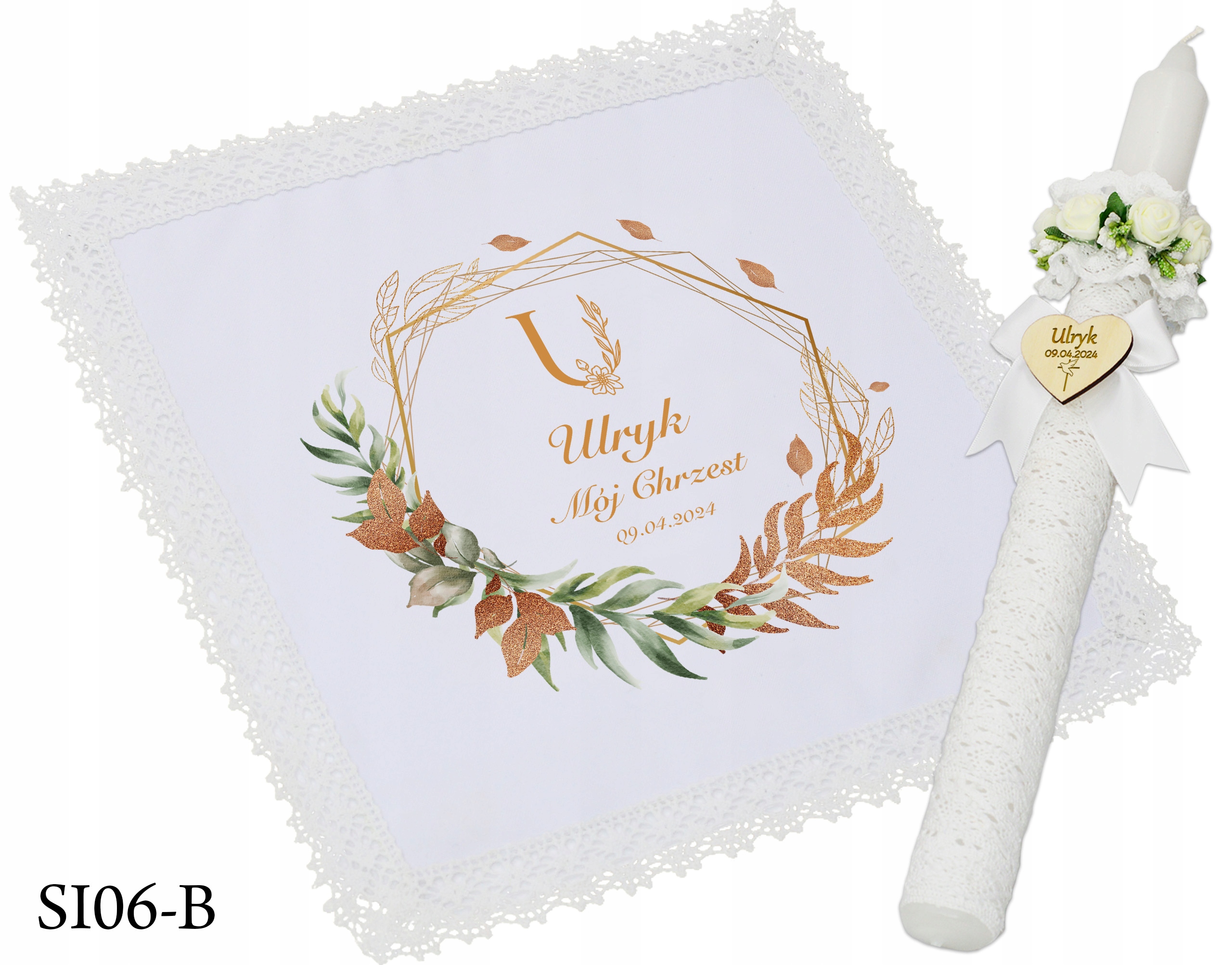 1) шарф і свічка, вкажіть викрійку та ім'я (надаємо першу літеру дитини ім’я, наприклад A Antoś + шаблон SI01-B )