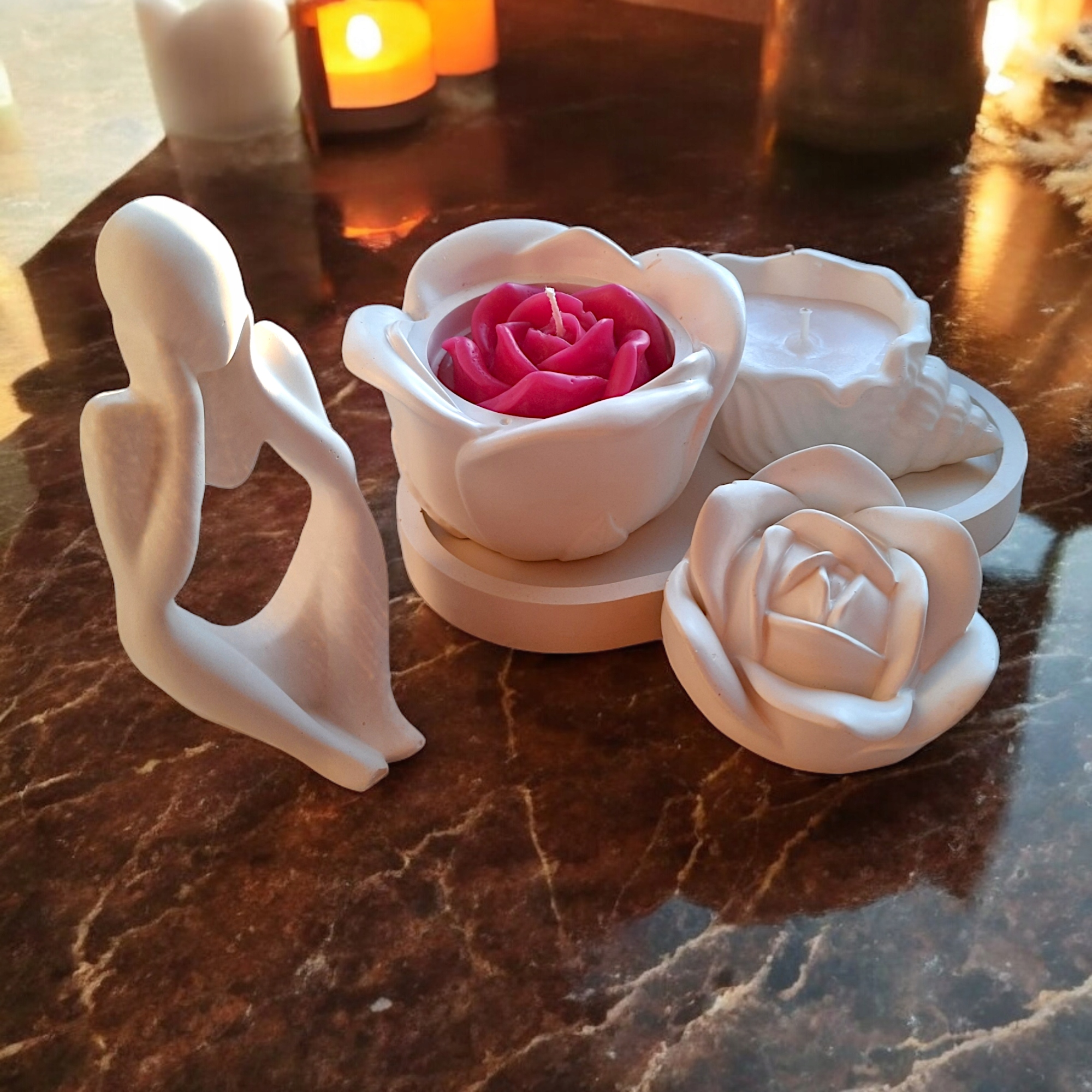 ✅Цей елегантний подарунковий набір — ідеальний спосіб подарувати коханій людині трохи краси та гармонії в повсякденному оточенні. Цей набір, що складається з двох декоративних свічок і унікальної статуетки, привносить в інтер’єр тепло і тонкий шарм.