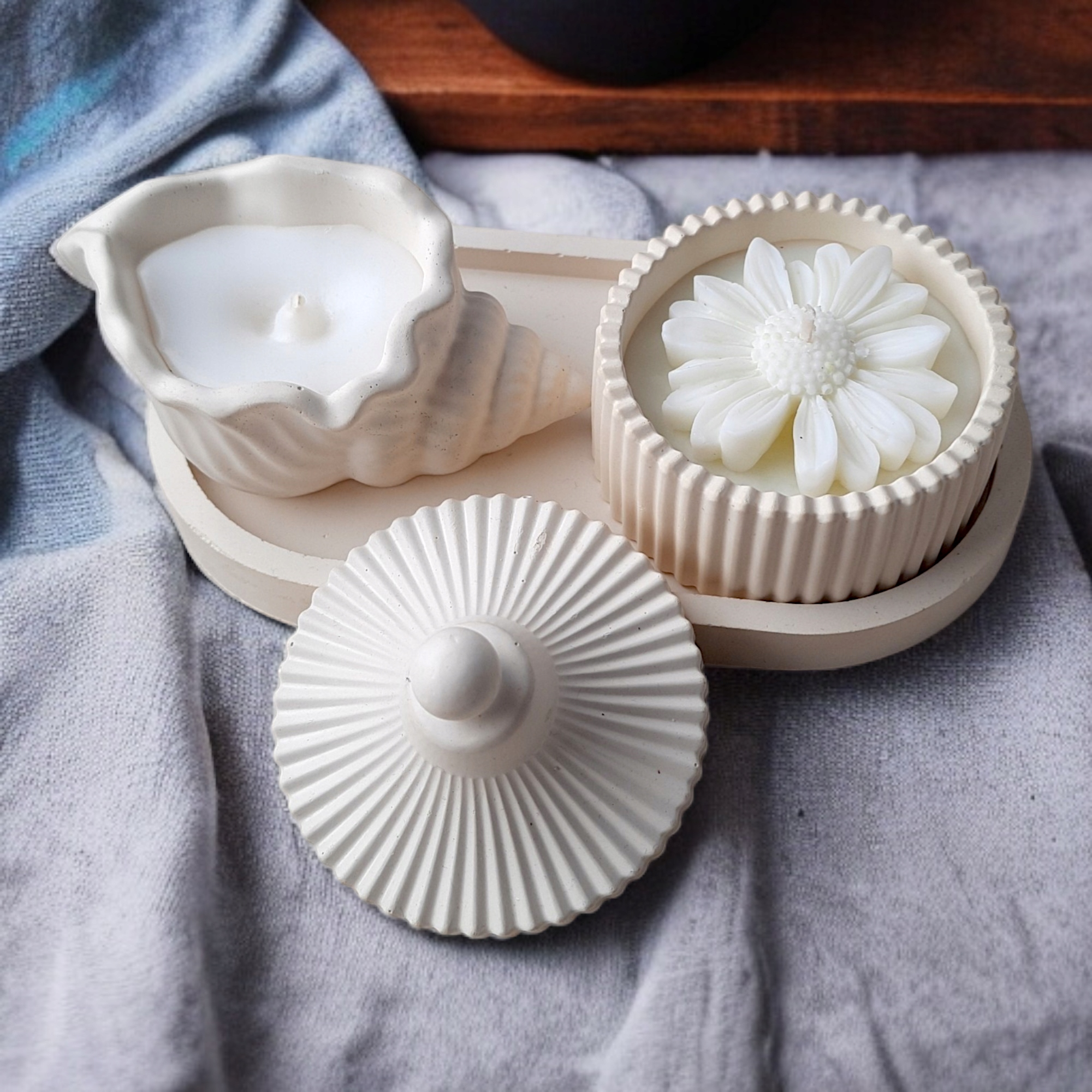 Ще один елемент набору — свічка у формі морської мушлі. Його оригінальний дизайн і точне виконання роблять його не тільки красивим декоративним елементом, але й унікальним акцентом, який привертає погляд і додає інтер'єру оригінальності.