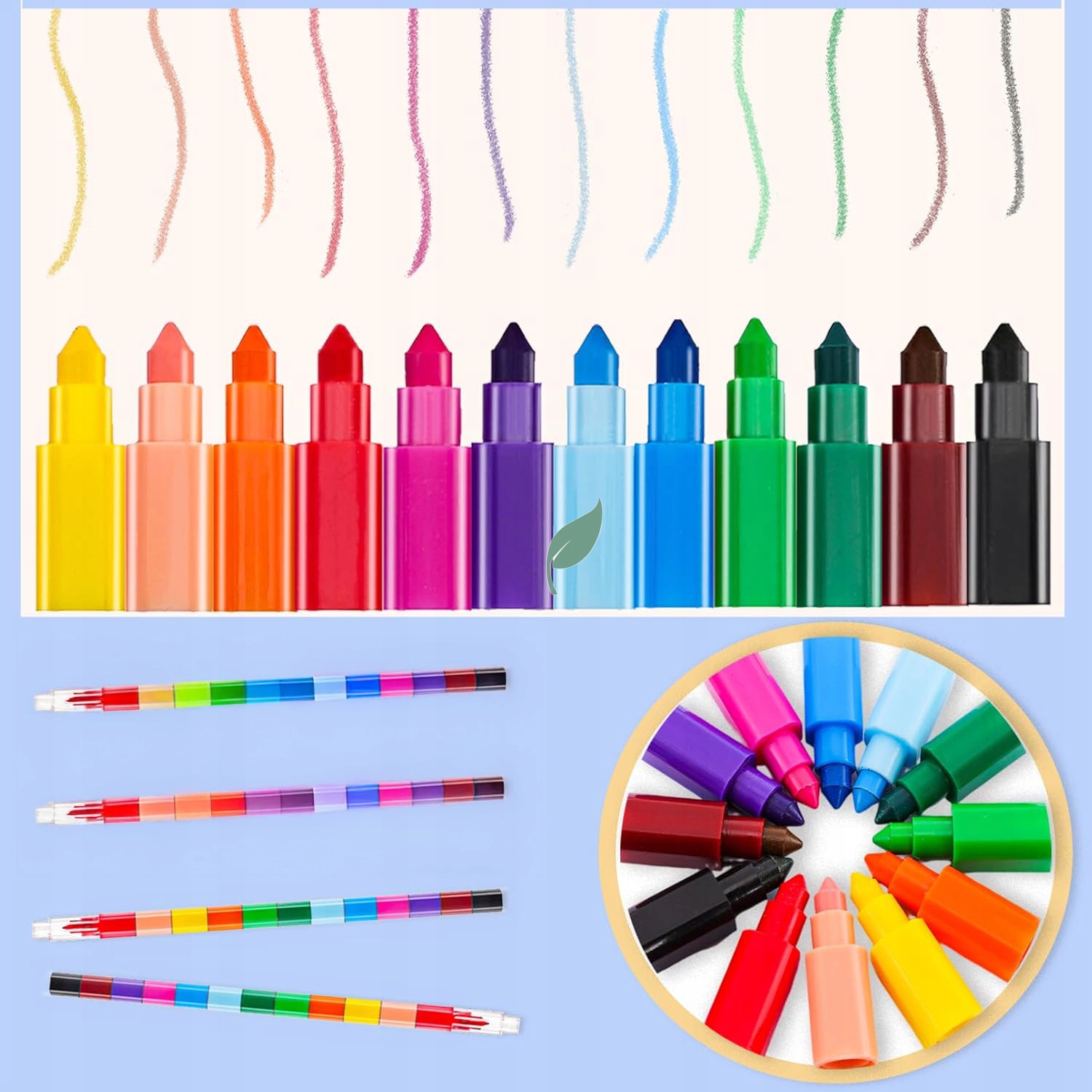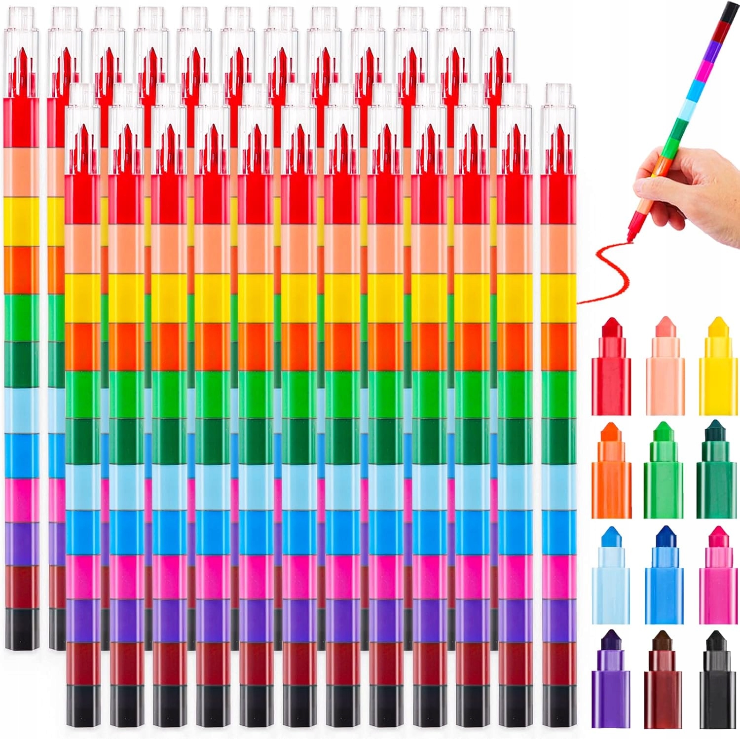 Кожна кольорова кольорова олівця складається з 12 різнокольорових сегментів, які можна вільно комбінувати та замінювати, як блоки!