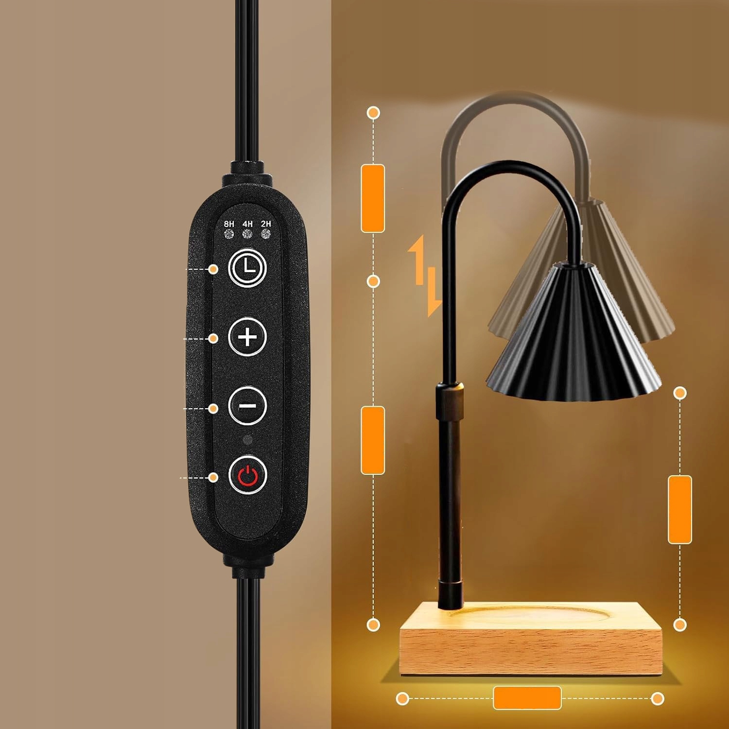 Нагрівач для свічок, електрична лампа для підігріву свічок, з таймером 2H/4H/8H, регулюванням яскравості, регулюванням висоти, безпечна нічна лампа - чорна