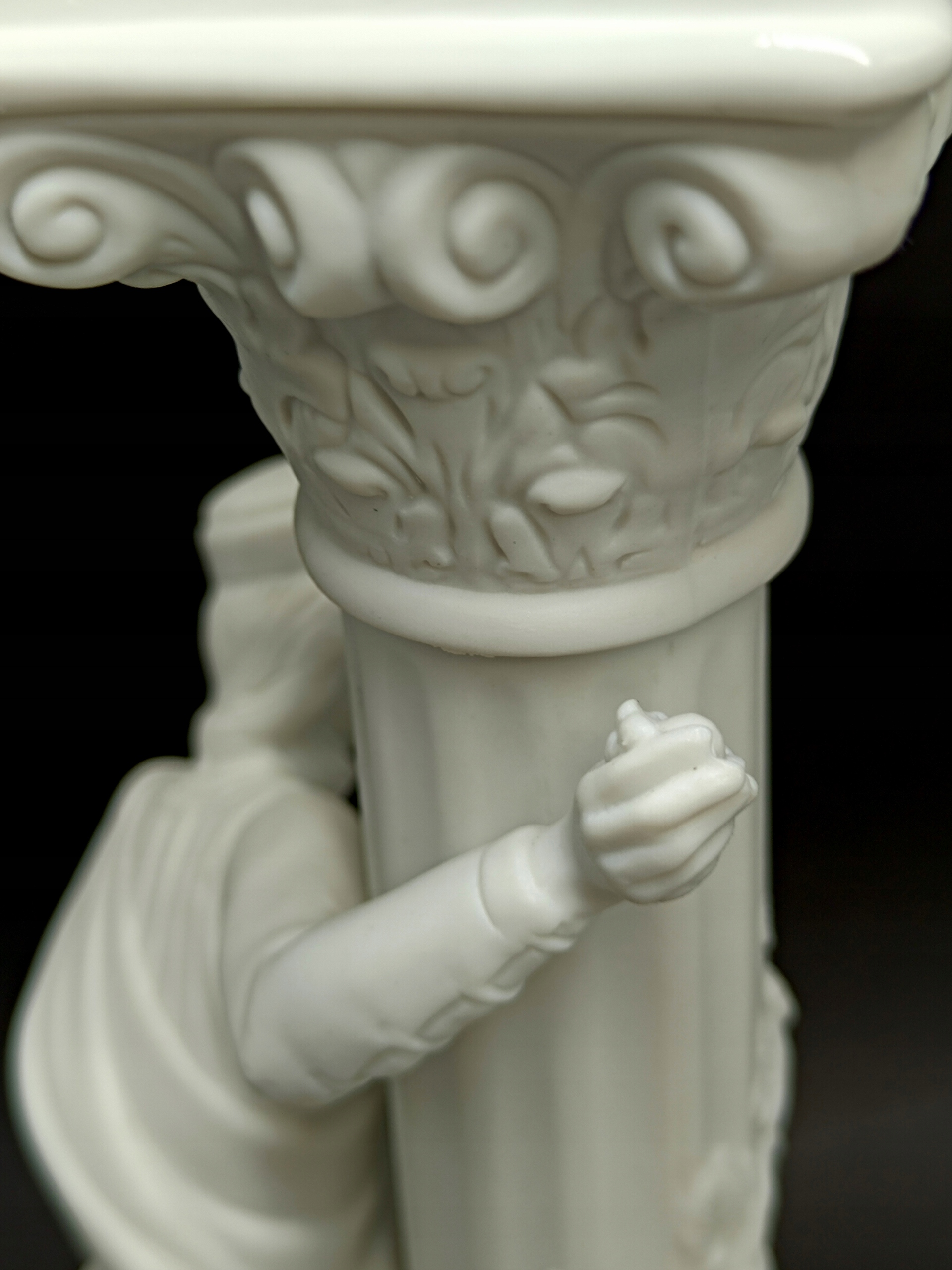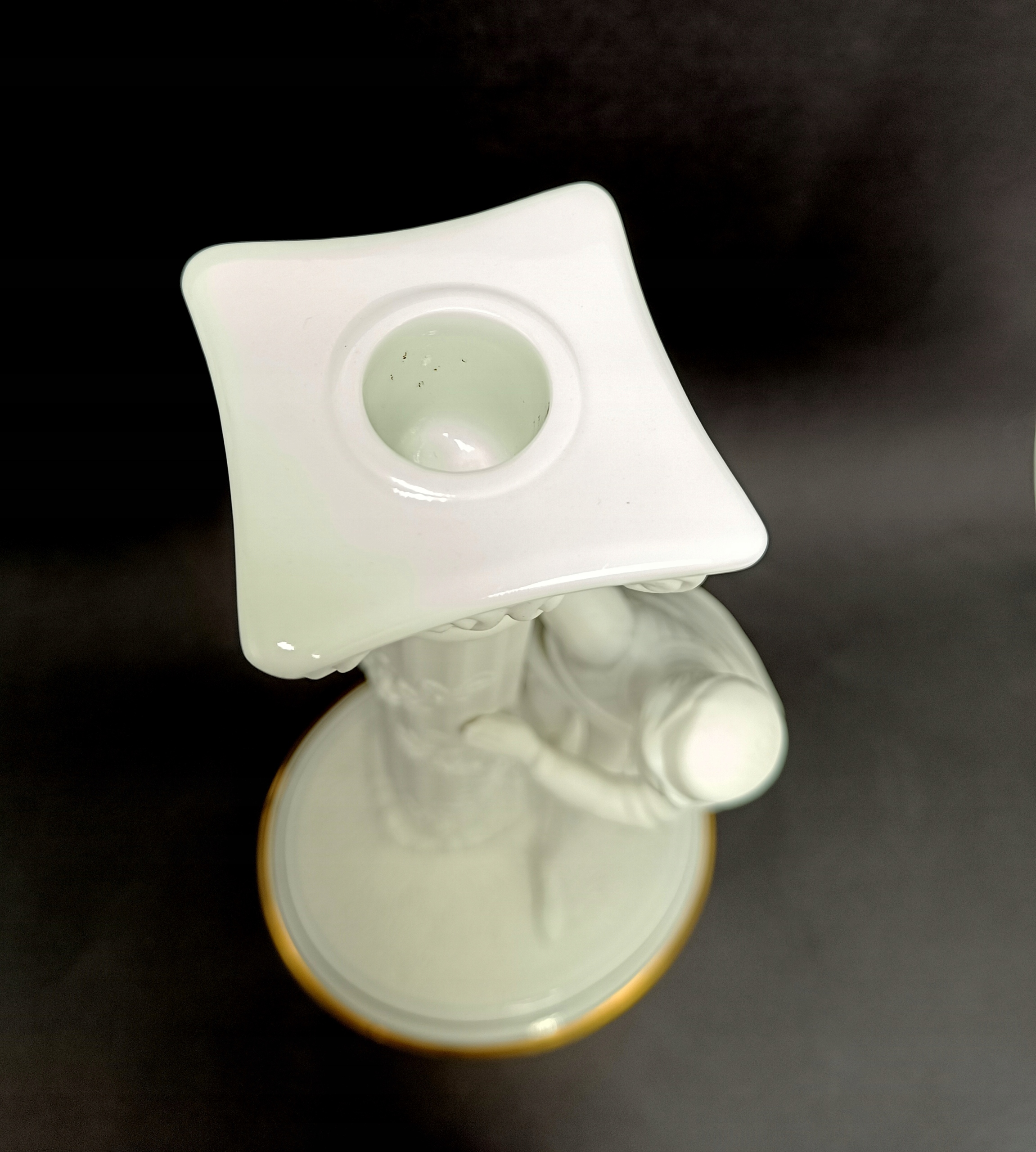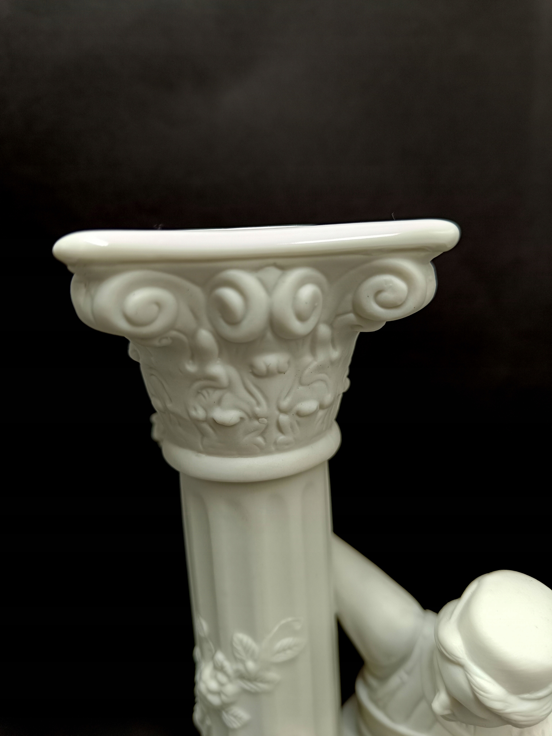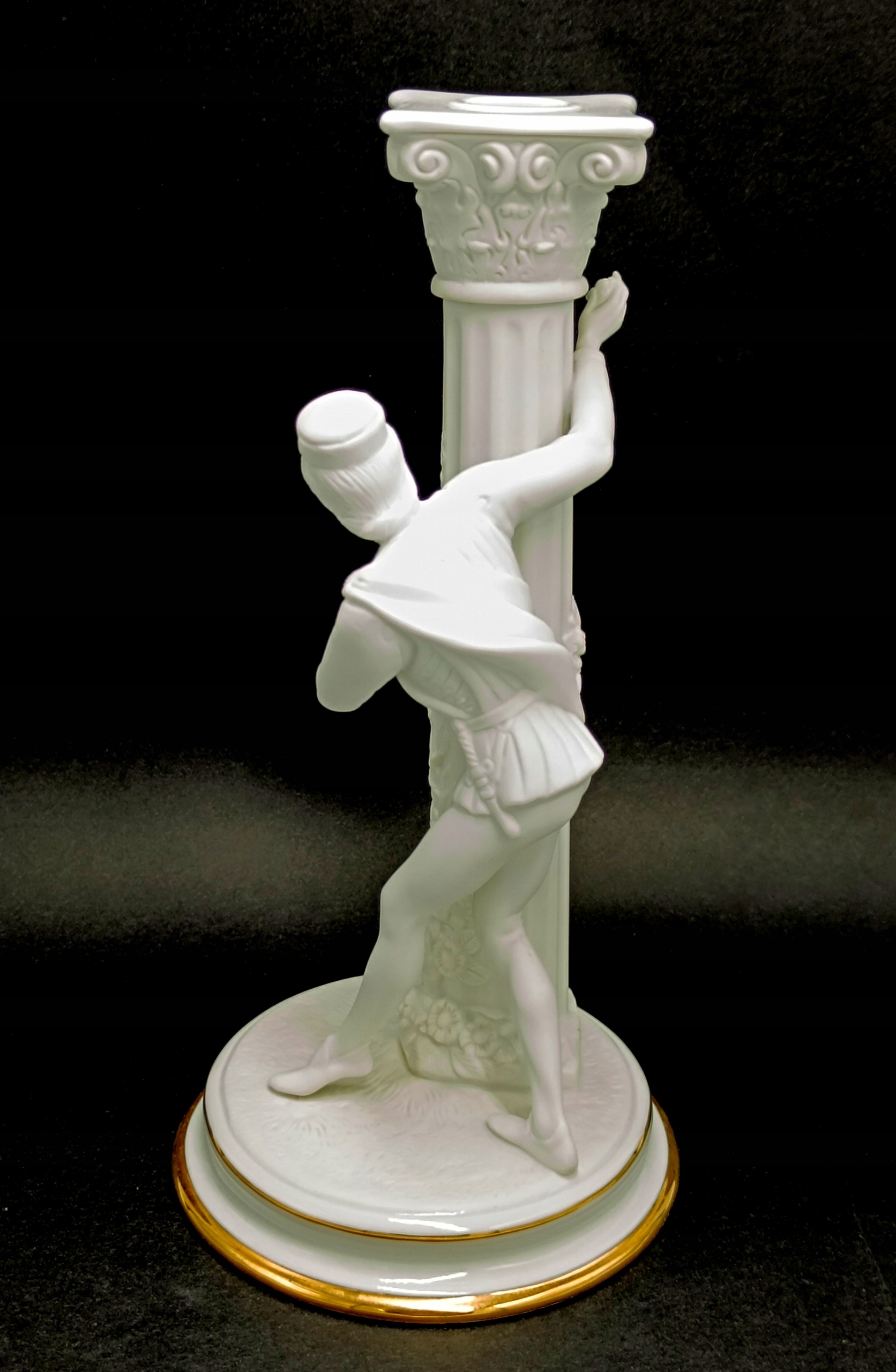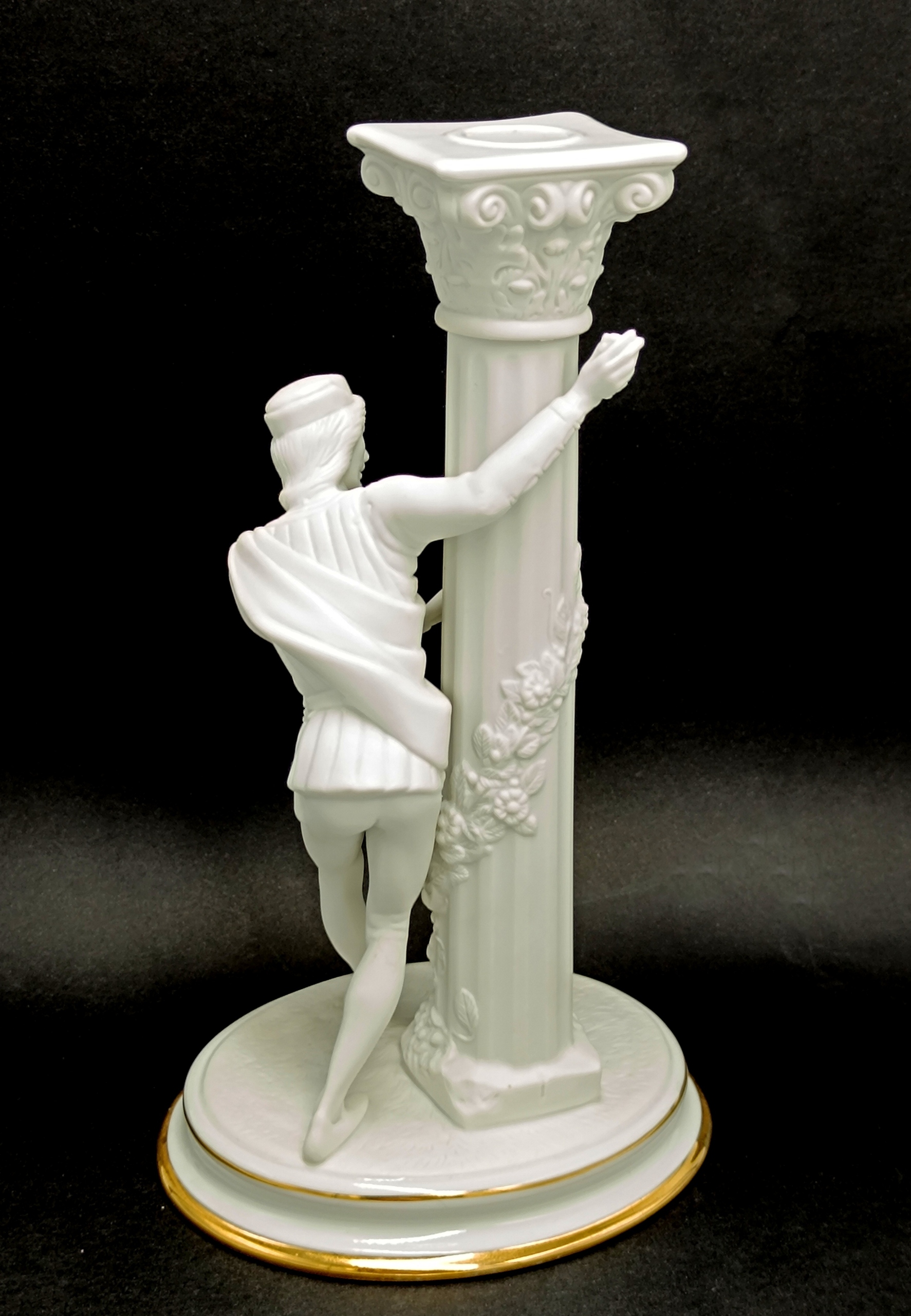 Свічник виготовлений з дуже ніжної порцеляни і зображує фігуру Ромео. Це досконалість у кожній деталі. Усі деталі відтворено тут. Красива колона, оповита виноградною лозою, встановлена на позолоченій основі, і Ромео виглядає так, ніби він визирає з-за колони, імовірно, на Джульєтту. Майбутній власник цього фантастичного продукту, який є героєм найкрасивішої історії кохання у світі, зможе насолоджуватися ним вдома. Також було б чудово знайти його другу половинку Джулі і поєднати їх разом - нехай це кохання триває вічно. Підсвічник підписується знизу.