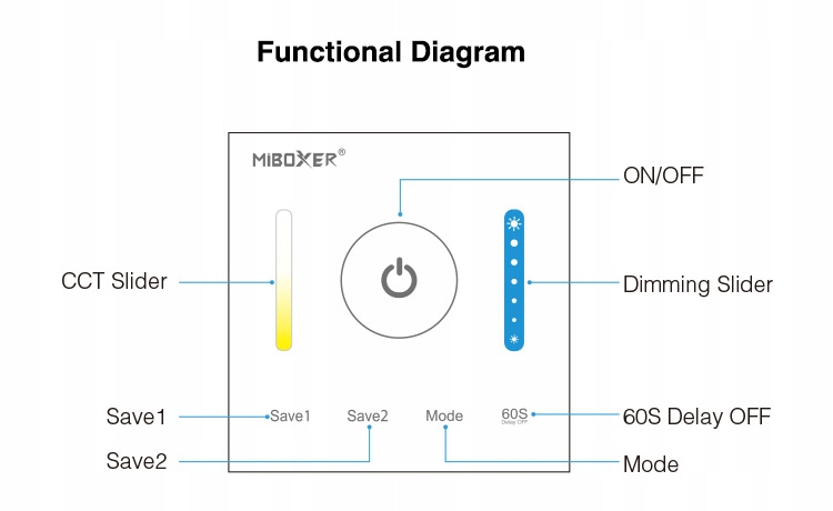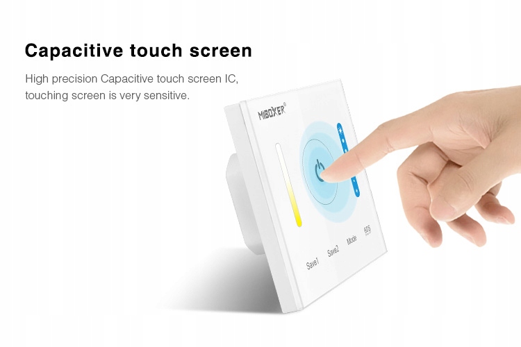 Настінний контролер P2 Mi-Light — це пристрій, призначений для роботи з білими світлодіодними стрічками CCT з регульованою колірною температурою. b> Світлодіодний контролер CCT дозволяє плавно регулювати яскравість білого світла та його температуру.