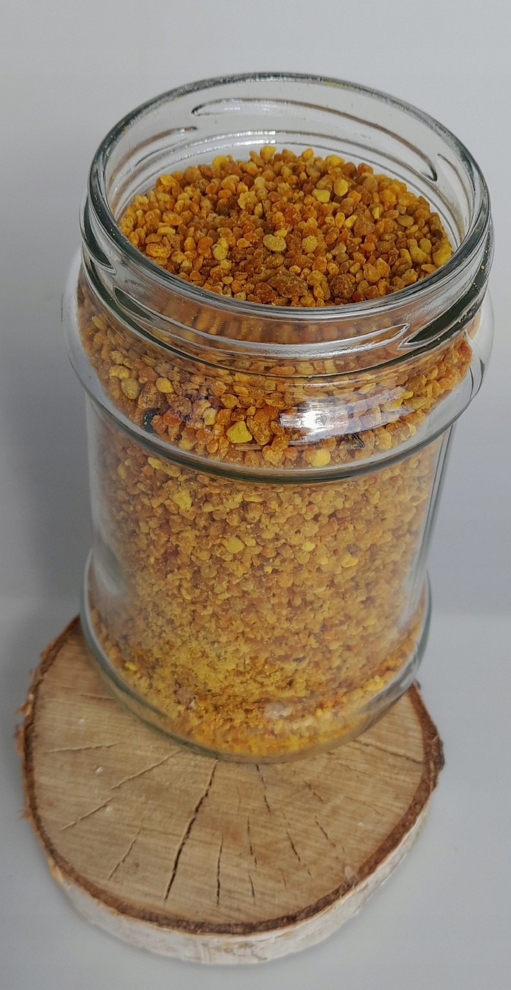 Всі наші продукти упаковані в упаковку скла, що забезпечує найбезпечніші умови зберігання для нашого здоров’я. Пилок збирається бджолами з різних рослин, він добре висушений. Пилок, зібраний наприкінці літа, менш барвистий пилок, зібраний найчастіше з трав, бур’янів та квітів, що цвітуть влітку. Пилок, зібрана бджолами навесні, більш барвисті збираються найчастіше з фруктових дерев та ранніх квітів. У період з вересня по травень ми змішуємо ці пилок у 50% осені та 50% весни, щоб забезпечити оптимальний пилок. Ми продаємо пилок лише у нашого пасіка в невеликих кількостях, і тому він свіжий. 50% зібраного пилку залишається з нашою бджолами і додайте їх до тіста для зимування.