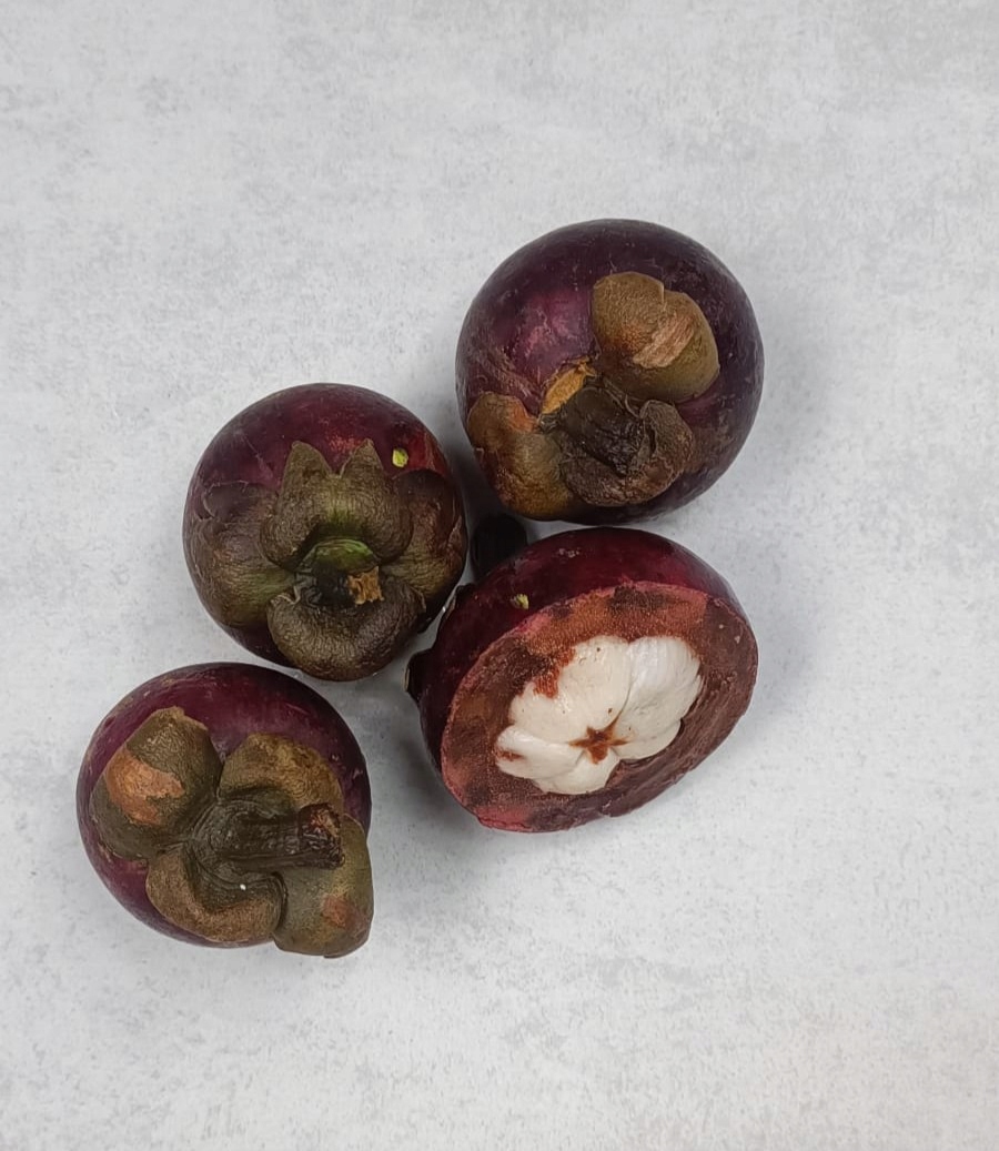 - Мангостан: називається "королевою фруктів" через її унікальний смак - солодкий, трохи кислий, з натяком на цитрусові. Делікатна плоть тане в роті. У коробці 4 штуки