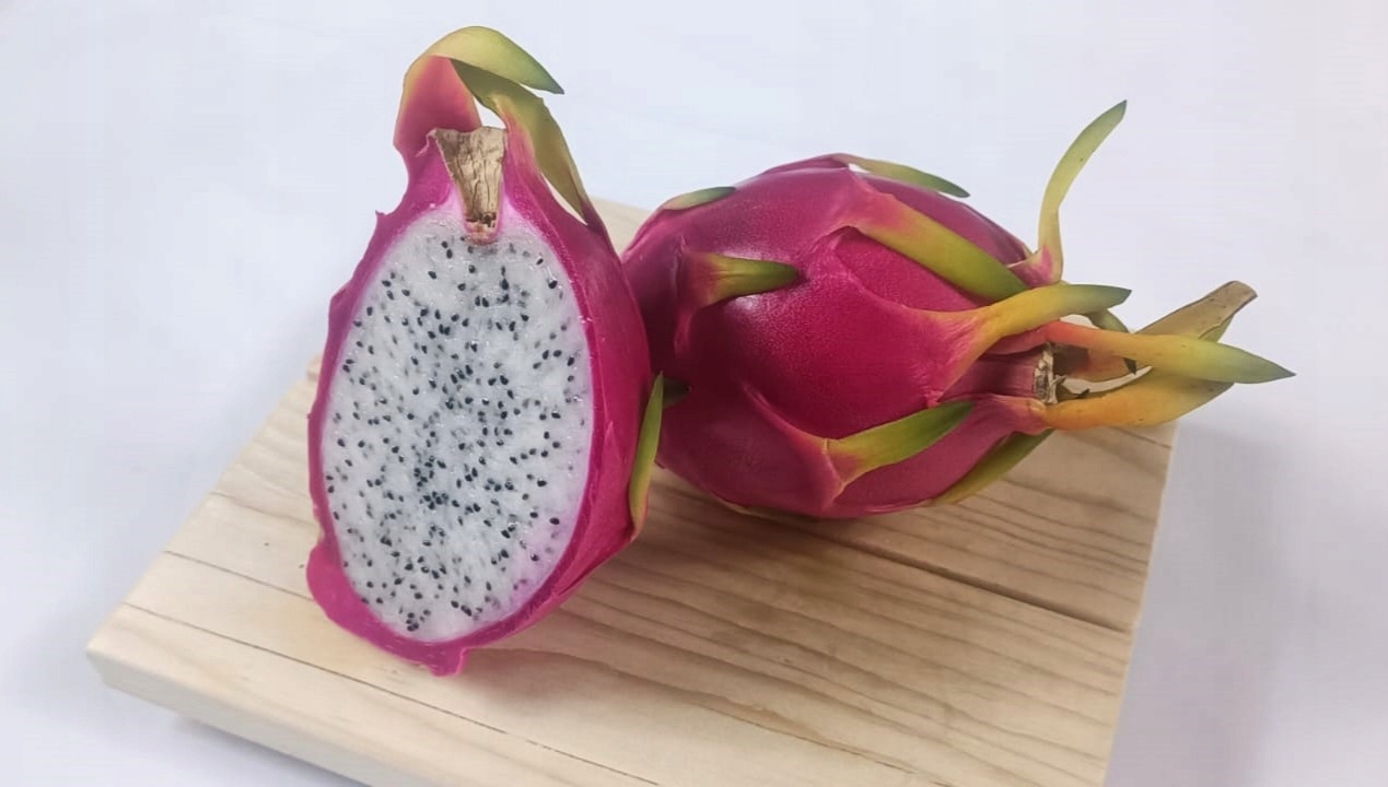 - рожева пітаджа (фрукти драконів): соковита м’якоть з ніжним, солодким і кучерявим смаком і освіжаючим ароматом. Багатий вітамінами та антиоксидантами. У коробці є один шматок