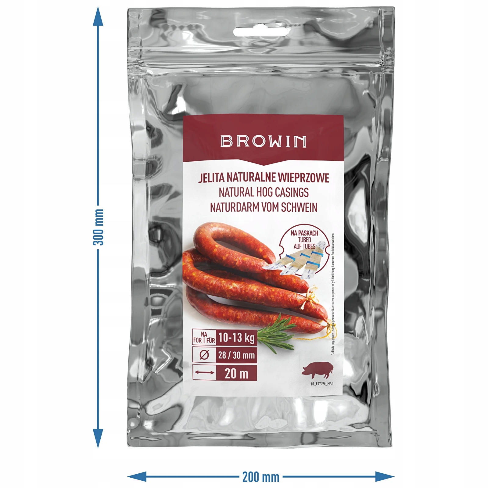 на смужках - кишечник наноситься на спеціальні ремінці, які полегшують тягнути воронку та усунути їх під час зберігання. Стрілки на смугах говорять про напрямок застосування до воронки. В кінці ремінця є отвір, який дозволяє легко відсунути його з воронки. Ідеально підходить для домашніх продуктів - завдяки винятковій якості продукції ви підготуєте власні здорові сирі, дозрівання, заварювані, запечені, копчені або на грилі ковбаси набагато швидше та ефективніше. Безпечний у використанні - кишечник стійкий до пошкоджень та тріщин, завдяки якому робота з ними надзвичайно комфортна та стрес -без стресу. Для тих, хто піклується про міцне здоров’я - природні кишечника свинини дозволяють незалежному виробництву ковбас без нездорових добавок та консервантів. Простий у використанні - перед тим, як почати працювати з кишечнику, замочіть їх приблизно 3 години у воді до 30 ° С, а потім промийте їх центр теплою водою. Після цього лікування продукт підходить для набивання набивання. Зручна упаковка - упаковка, оснащена спеціальною струною, полегшуючи багаторазове закриття та відкриття.