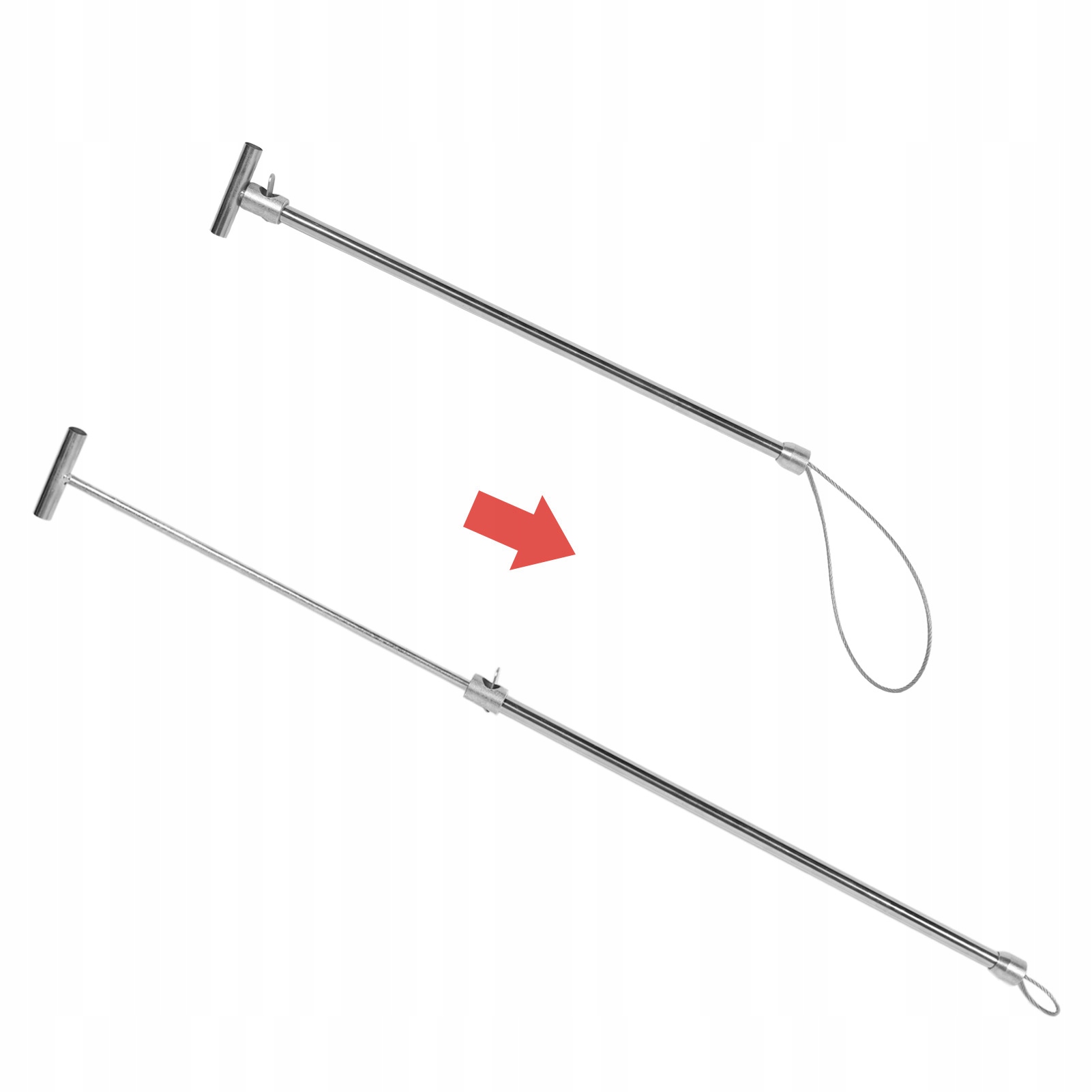 1. Міцний: жердина для лову свиней виготовлена з міцної нержавіючої сталі, міцна та довговічна, проста у використанні. Товстий сталевий трос, закріплений подвійним гвинтом, діаметр до 4 мм, регульована довжина, його нелегко зламати.