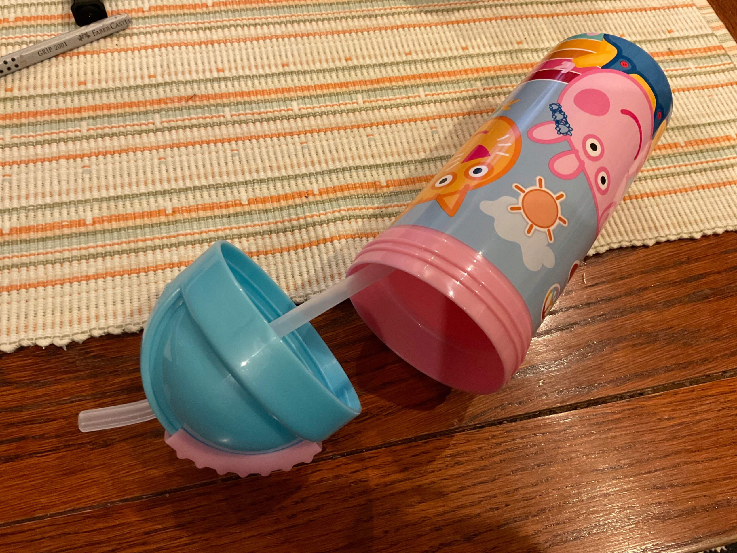 ПЛАШКА СВИНЯ ПЕПА З ТРУБЧИКОЮ І СОЛОМОМКОЮ ДИТЯЧА КУХКА 350 мл