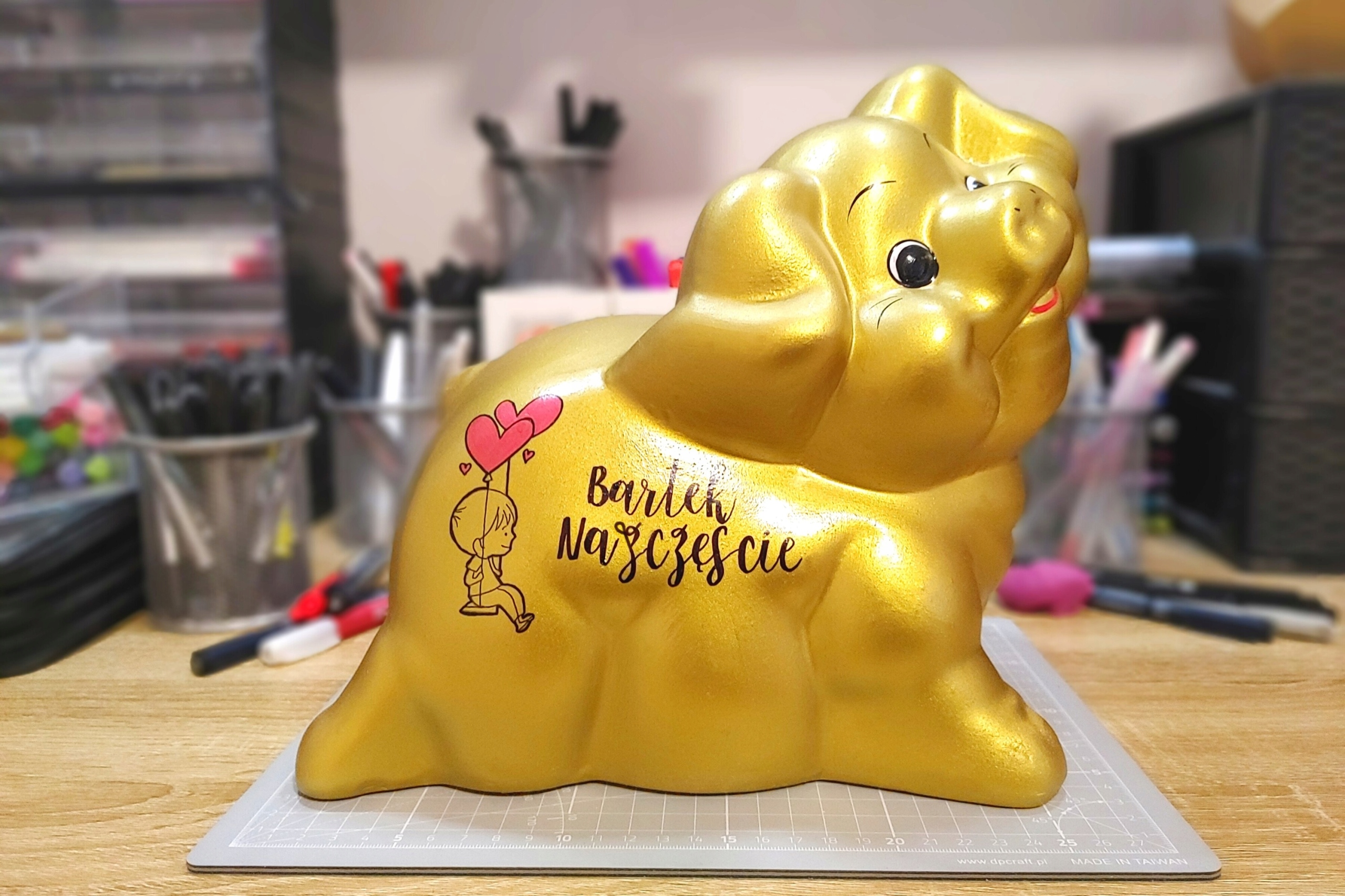 Тексти та просту графіку ми розміщуємо на скарбничках вручну, керамічними маркерами або переносимо на скарбничку за допомогою термотрансферу.
