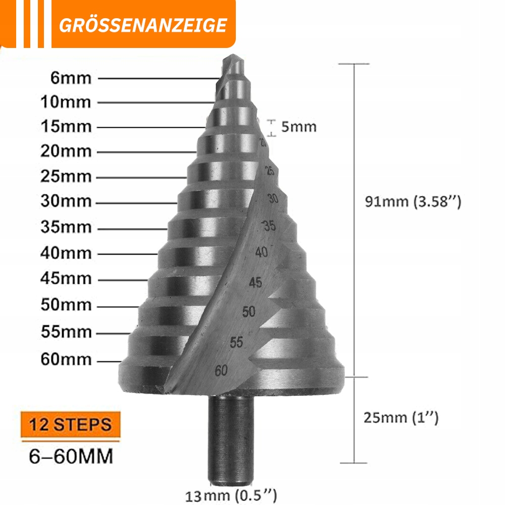 СВЕРДЛО СТУПІНЧАСТЕ СПІРАЛЬНЕ ПО МЕТАЛУ 6-60 мм МІЦНЕ RICHMANN